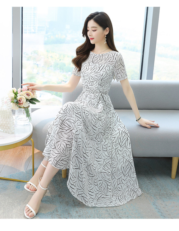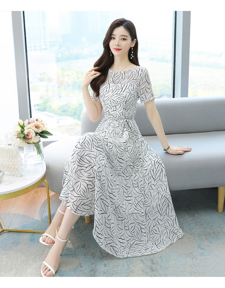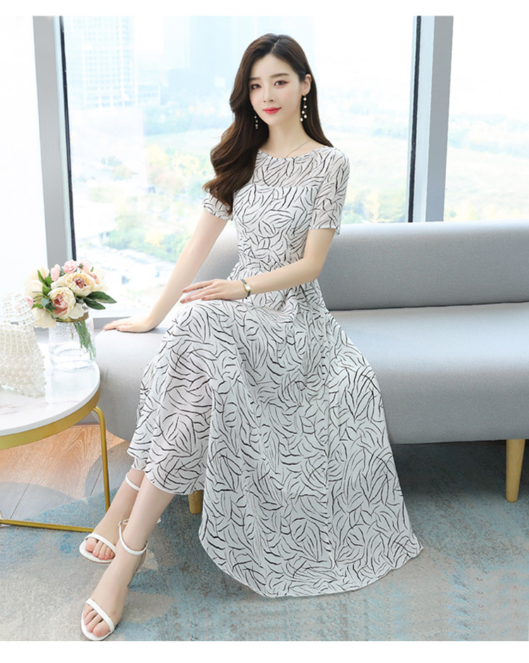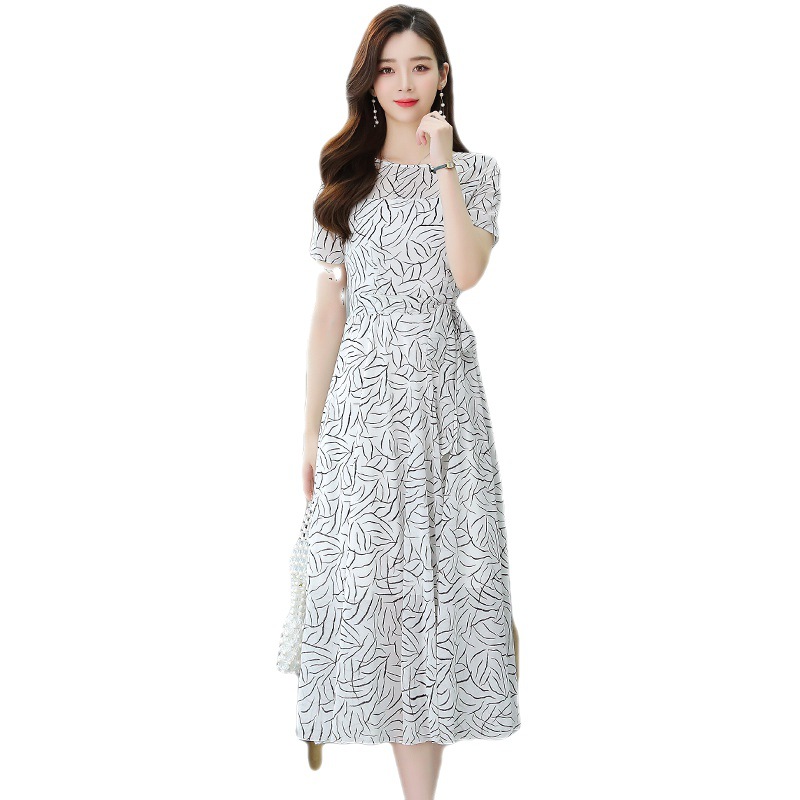 实拍流行裙子名媛轻熟风气质长裙女夏显瘦白色碎花连衣裙长款及踝