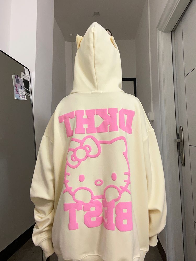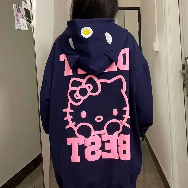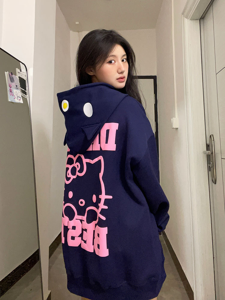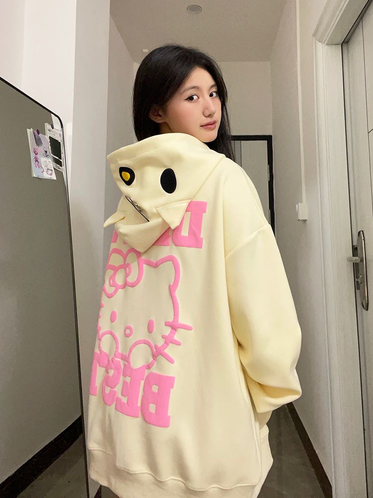 HelloKittyHello開衫連帽運動衫女秋季新款寬鬆設計感小眾薄款外套