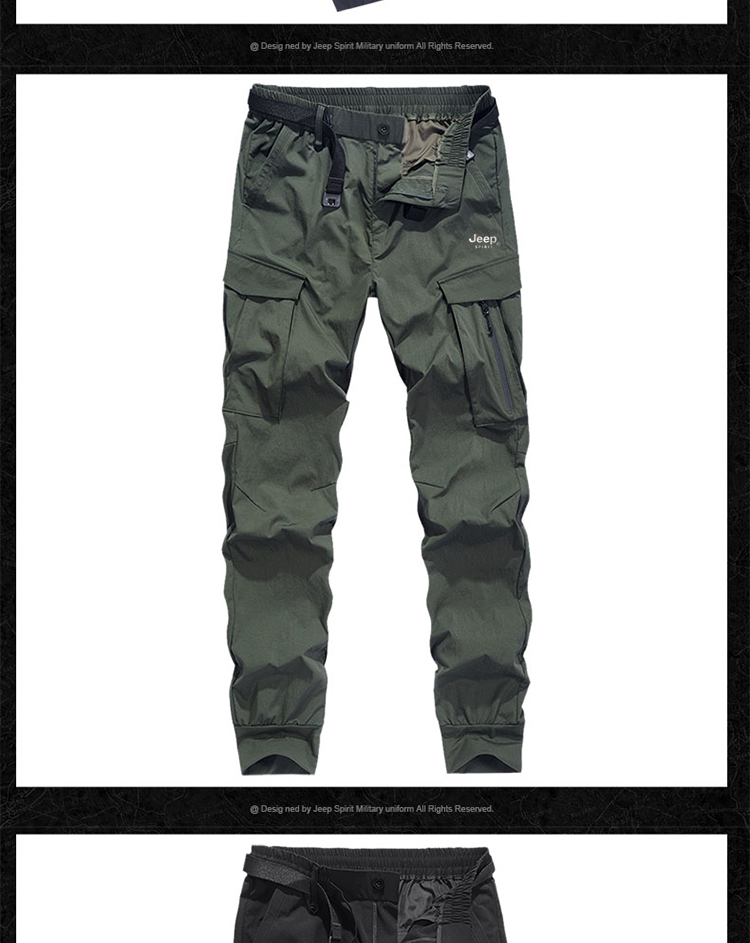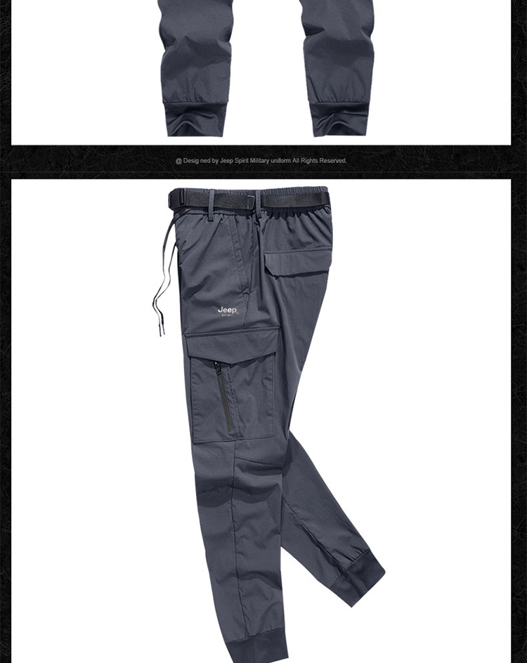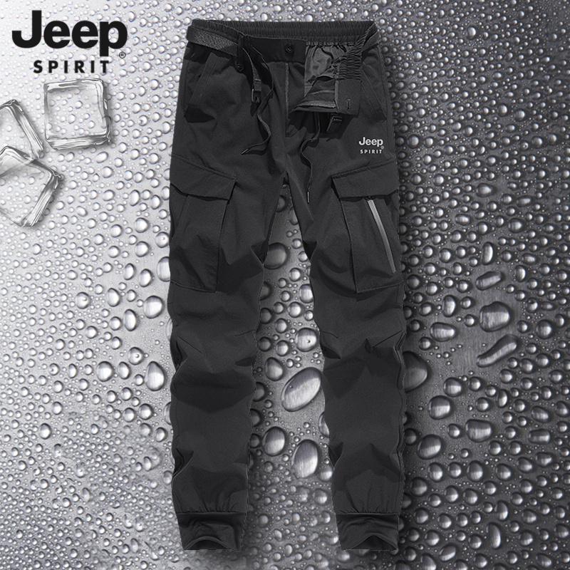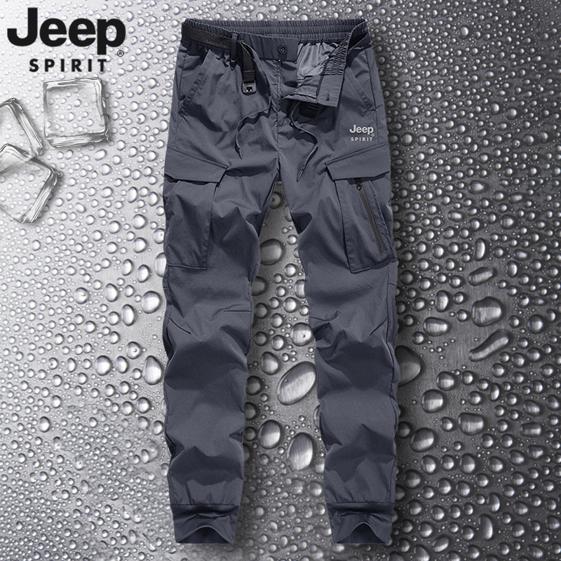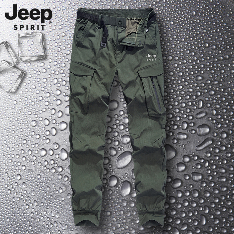 jeep吉普冰絲速乾工裝褲男九分男褲夏季薄款束腳戶外寬鬆休閒褲子