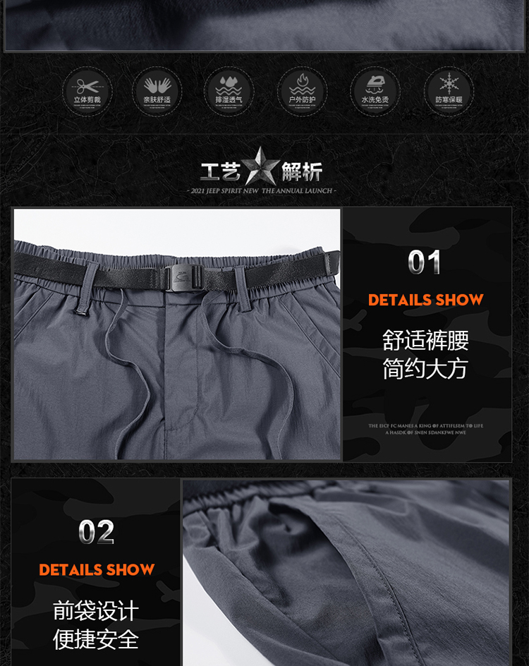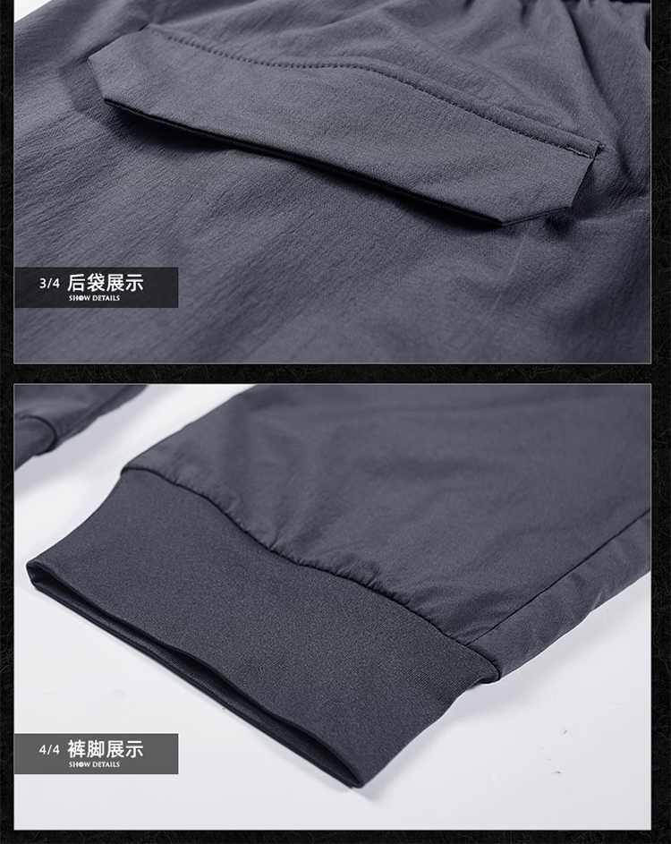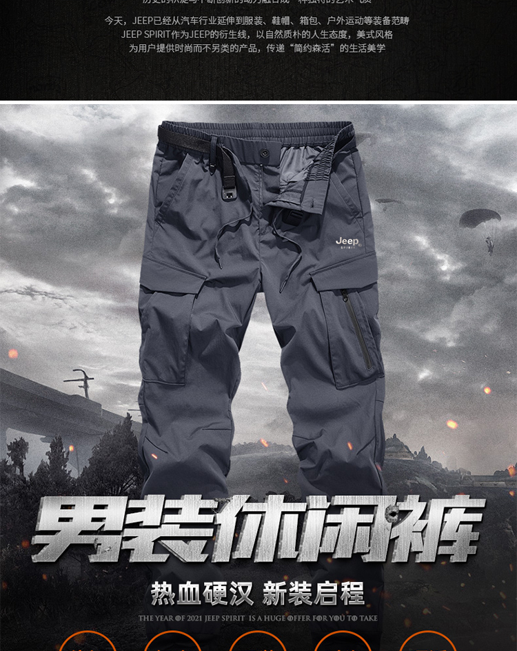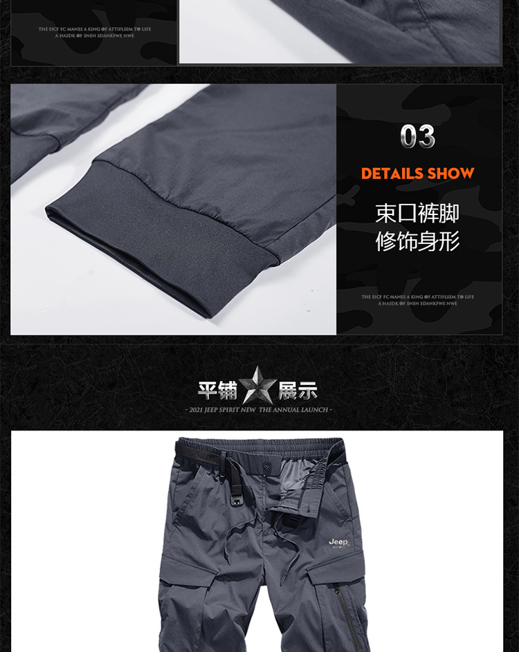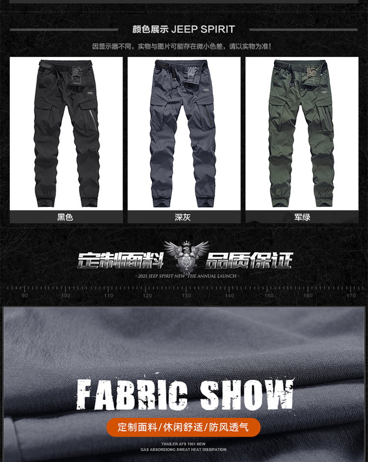 jeep吉普冰絲速乾工裝褲男九分男褲夏季薄款束腳戶外寬鬆休閒褲子