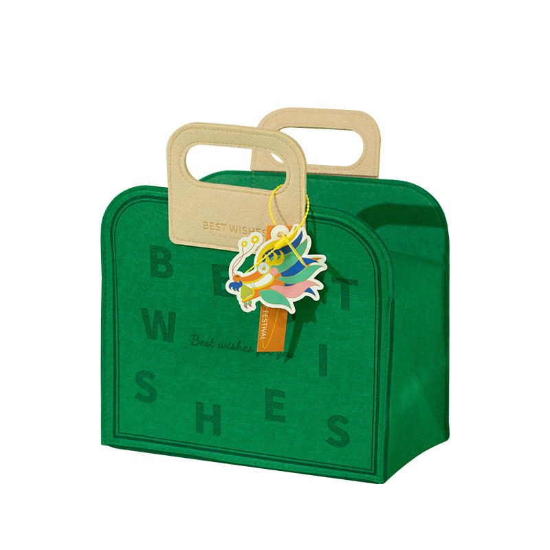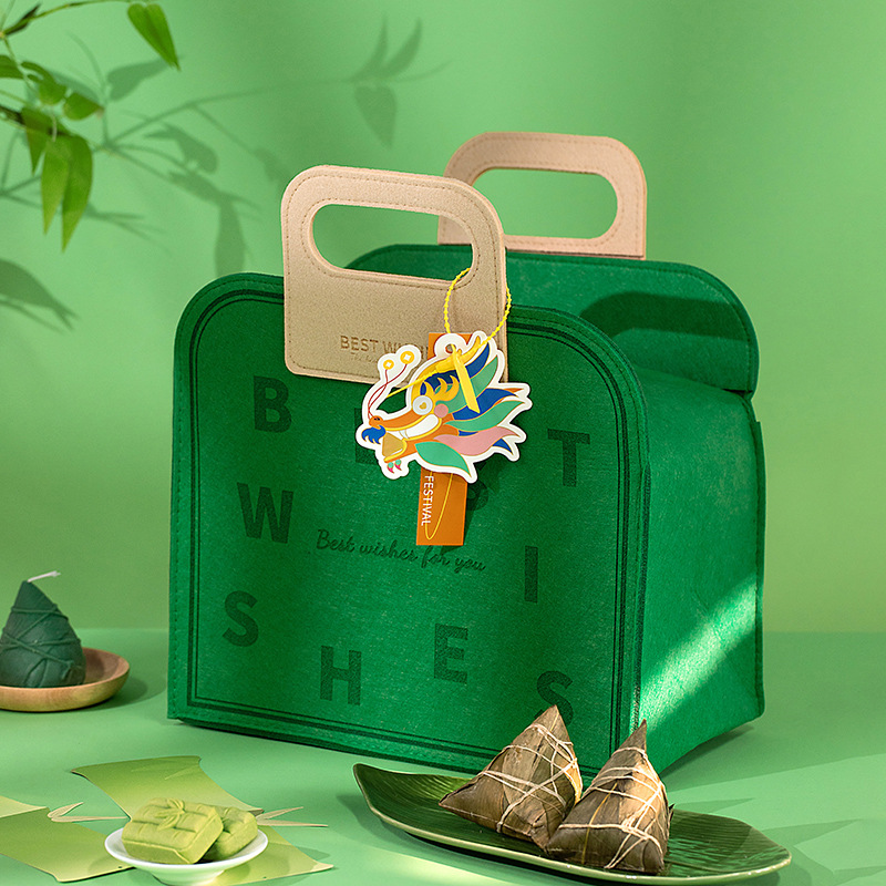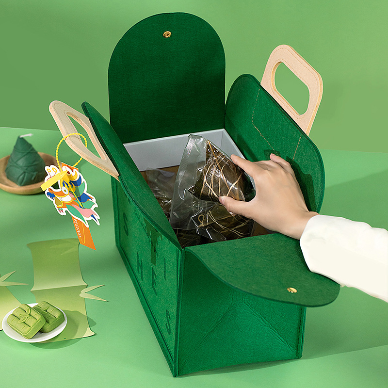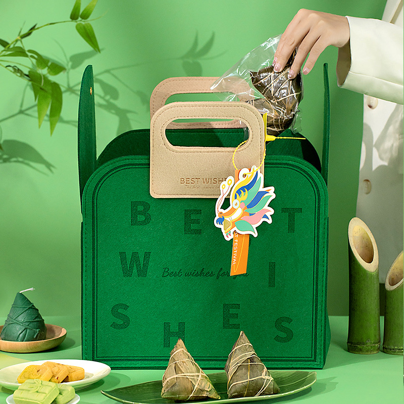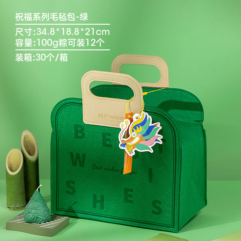方森园端午新款粽子包装盒礼盒绿色毛毡加厚手提袋送礼创意礼品盒