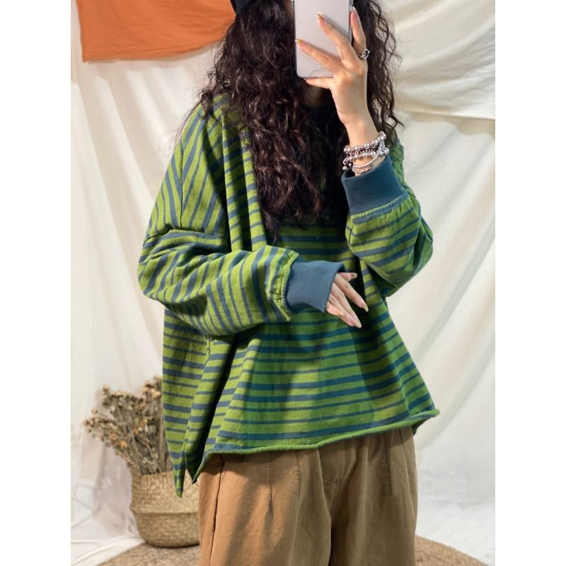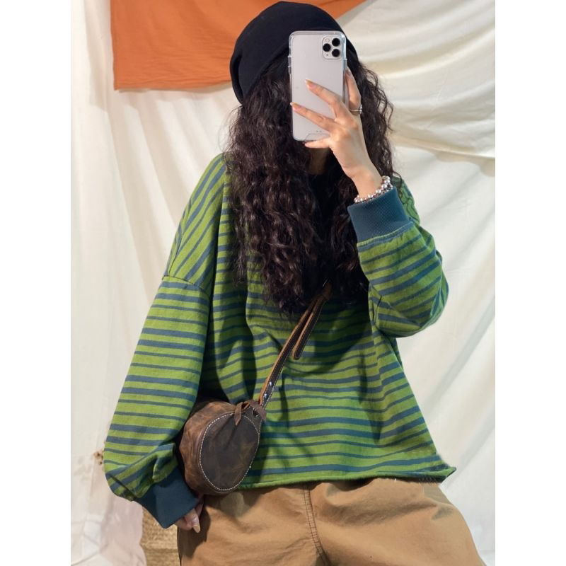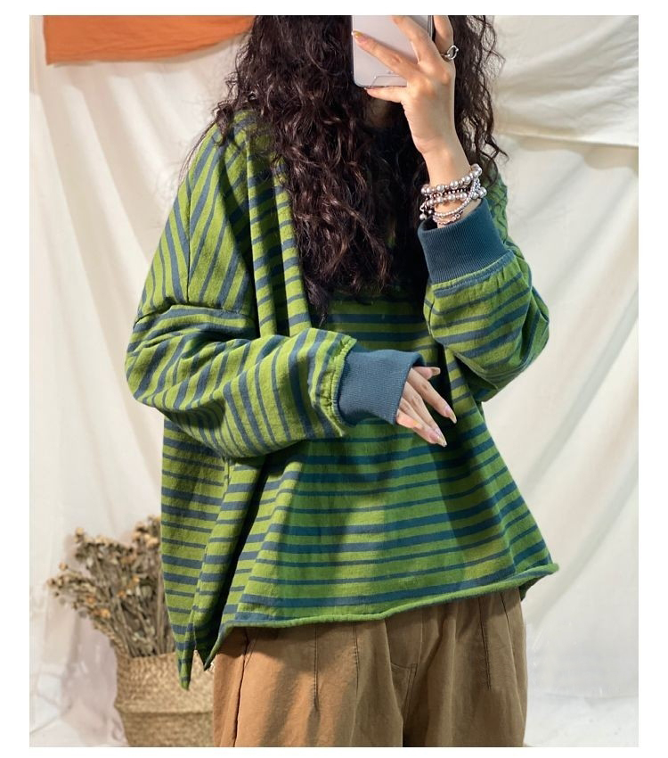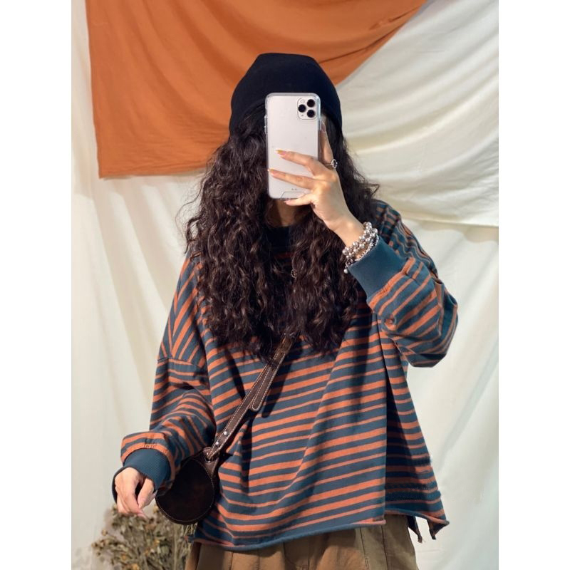 2022春季新款韓版純棉條紋休閒上衣女短款寬鬆百搭休閒顯瘦上衣時尚潮