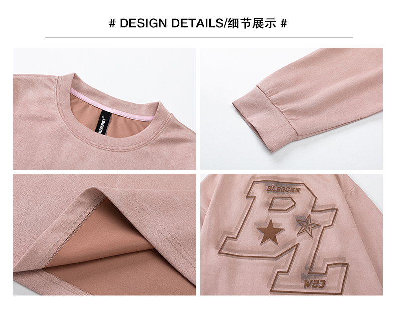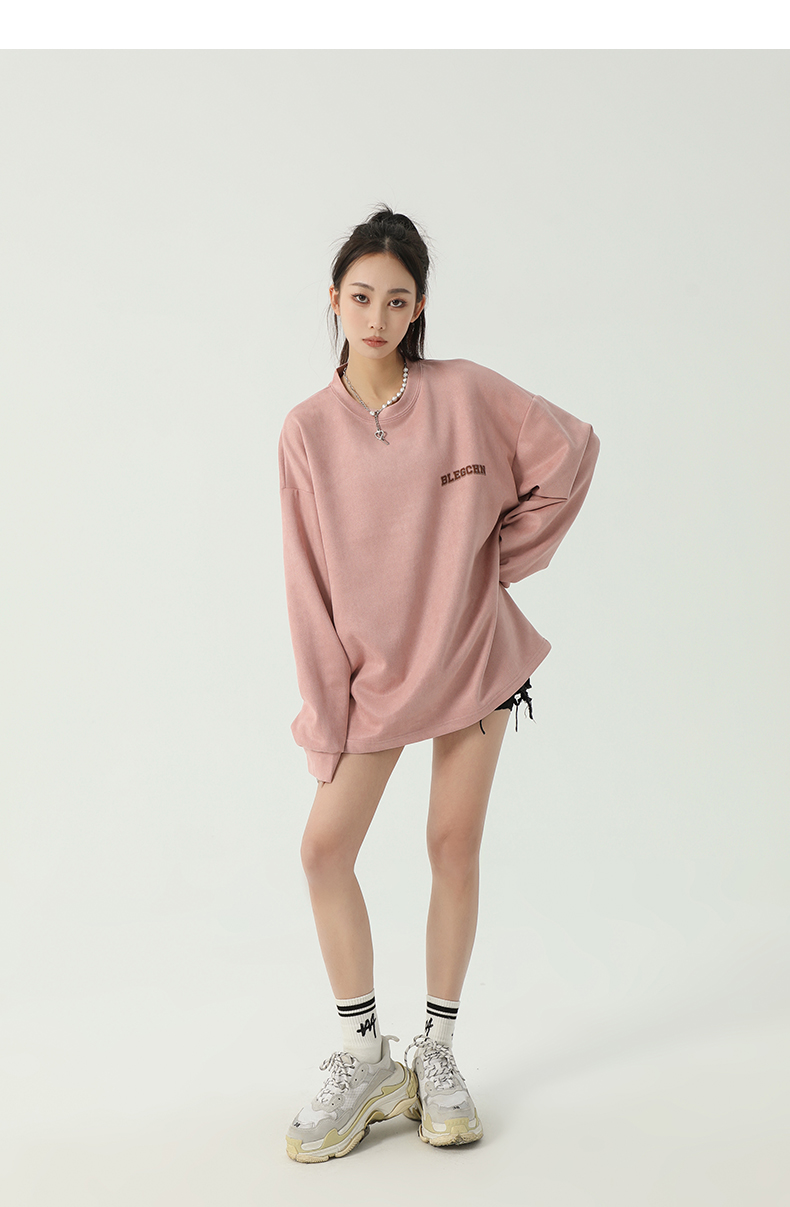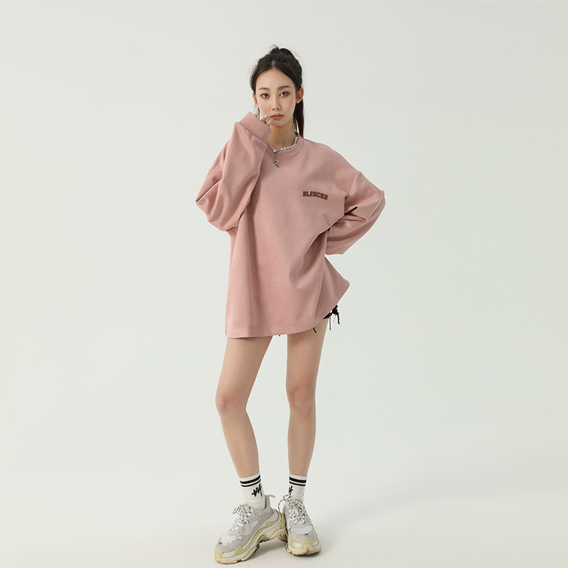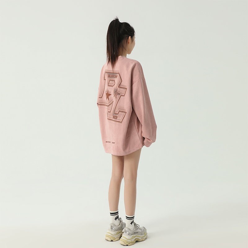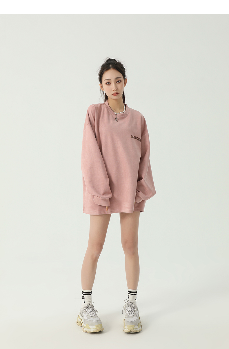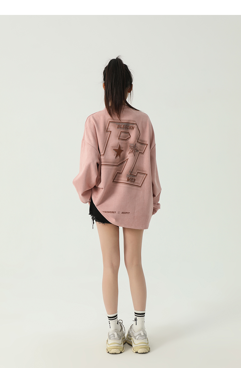 美式圓領厚棉T女2023新款春秋款ins潮牌oversize寬鬆麂皮絨上衣bf