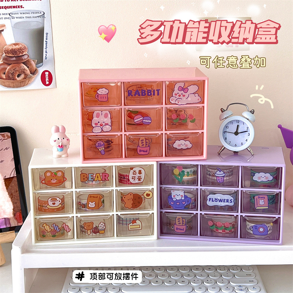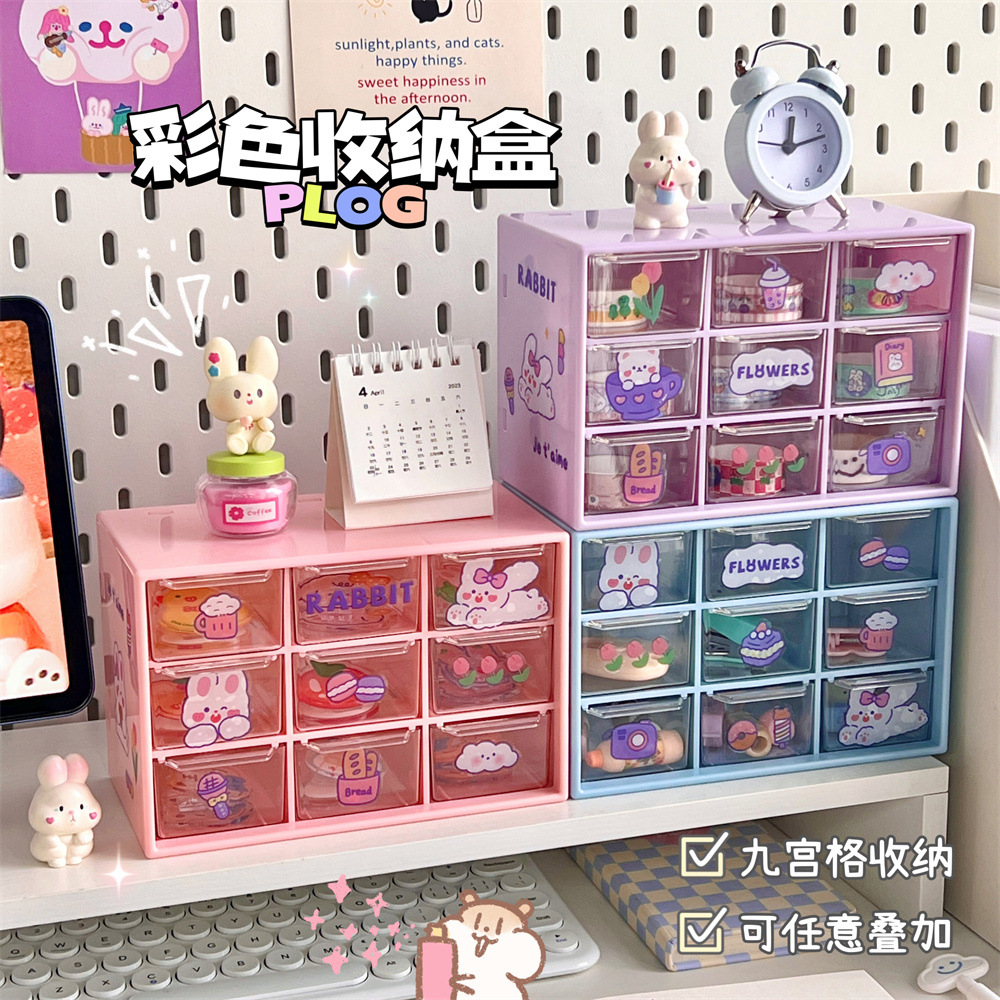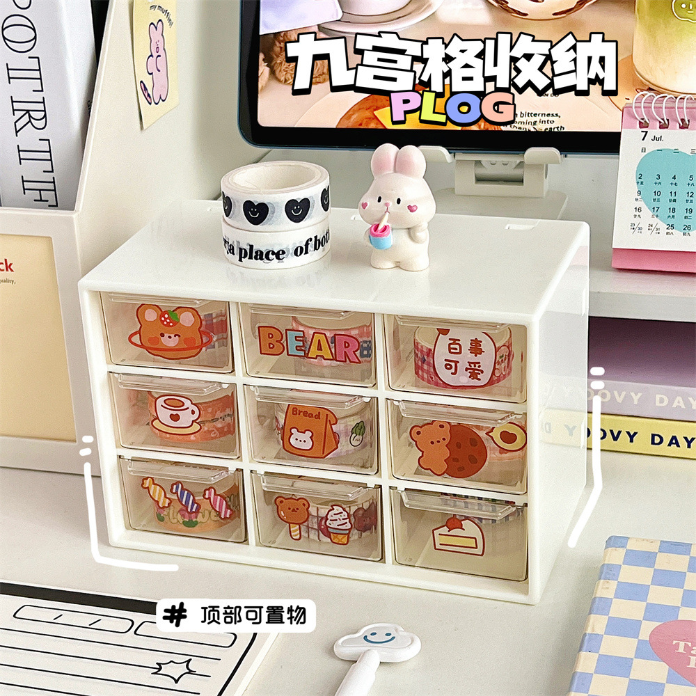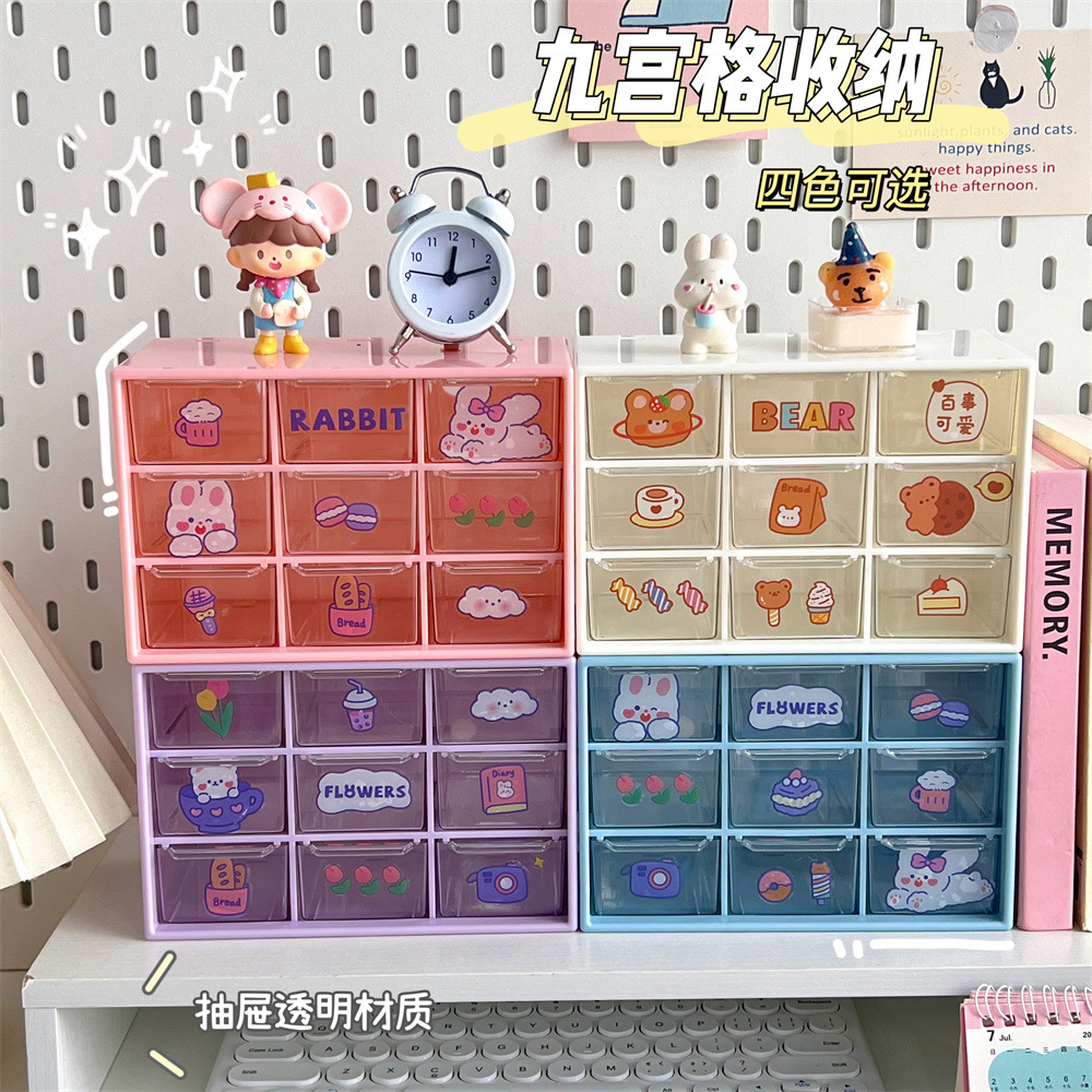 少女心ins风九宫格学生桌面防尘抽屉式收纳盒文具首饰化妆品收纳