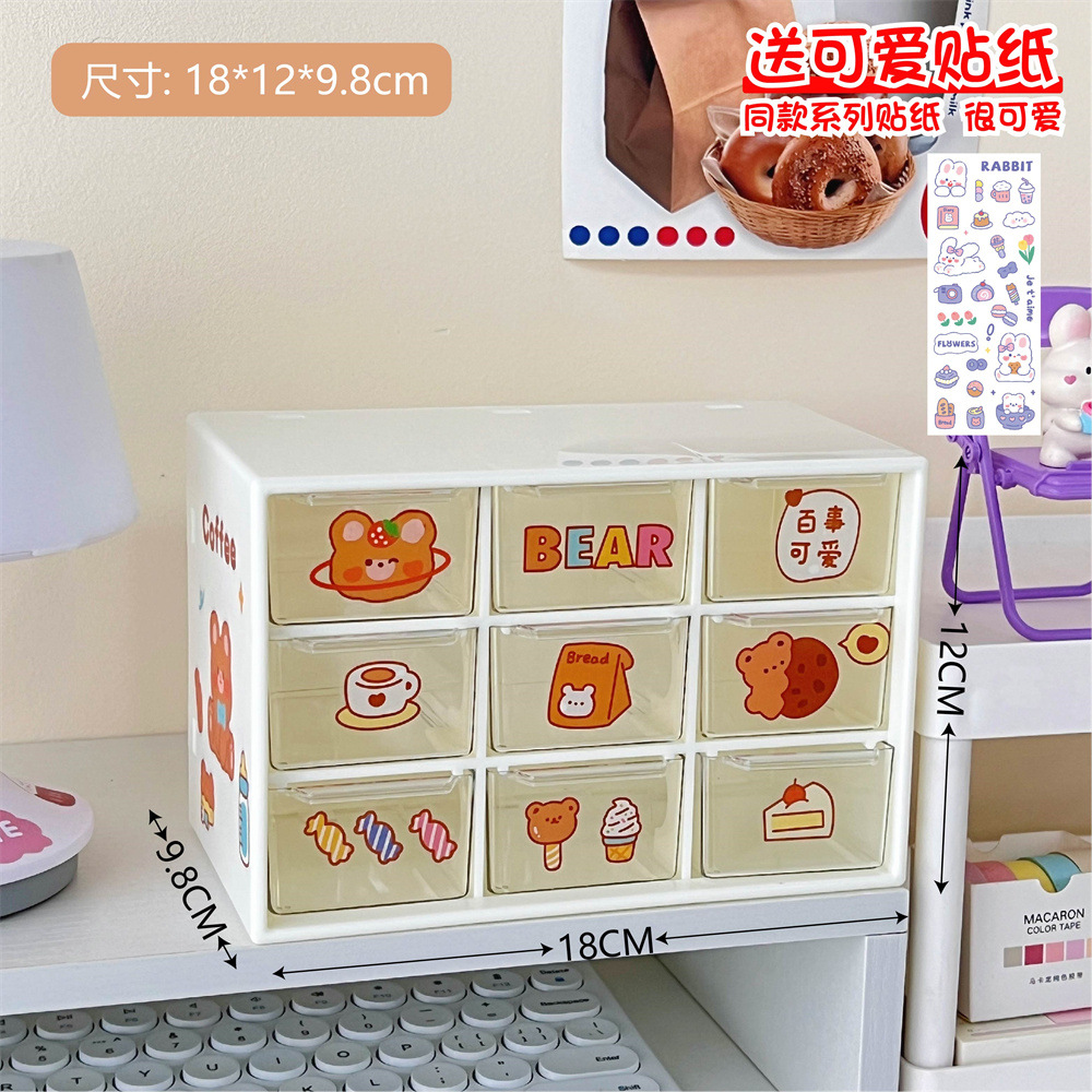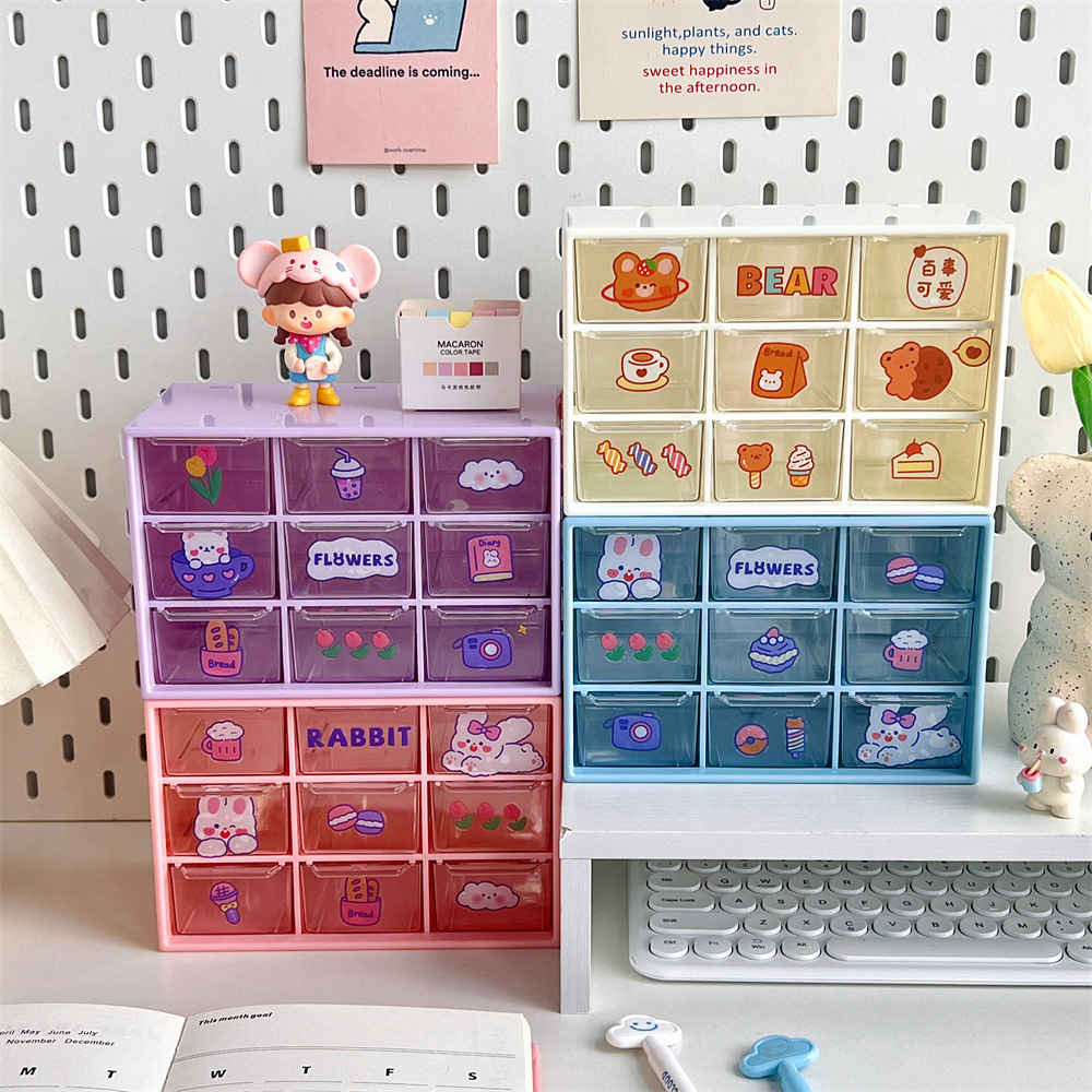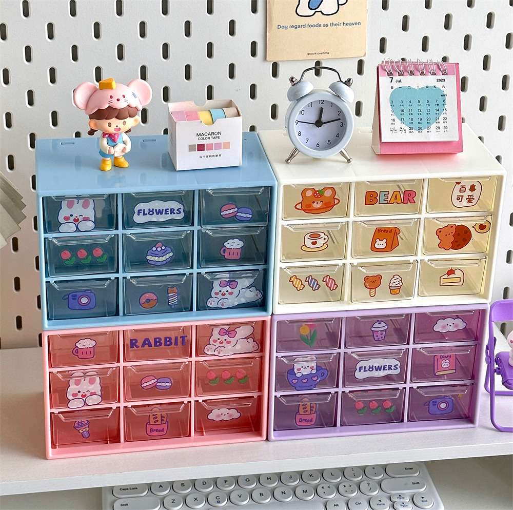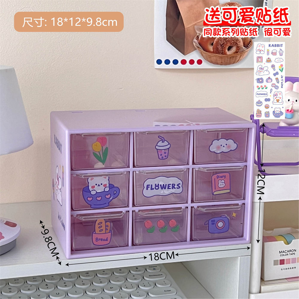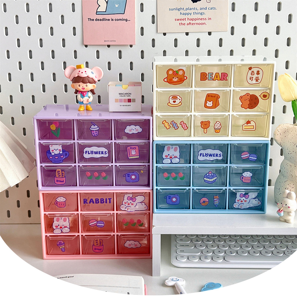 少女心ins风九宫格学生桌面防尘抽屉式收纳盒文具首饰化妆品收纳