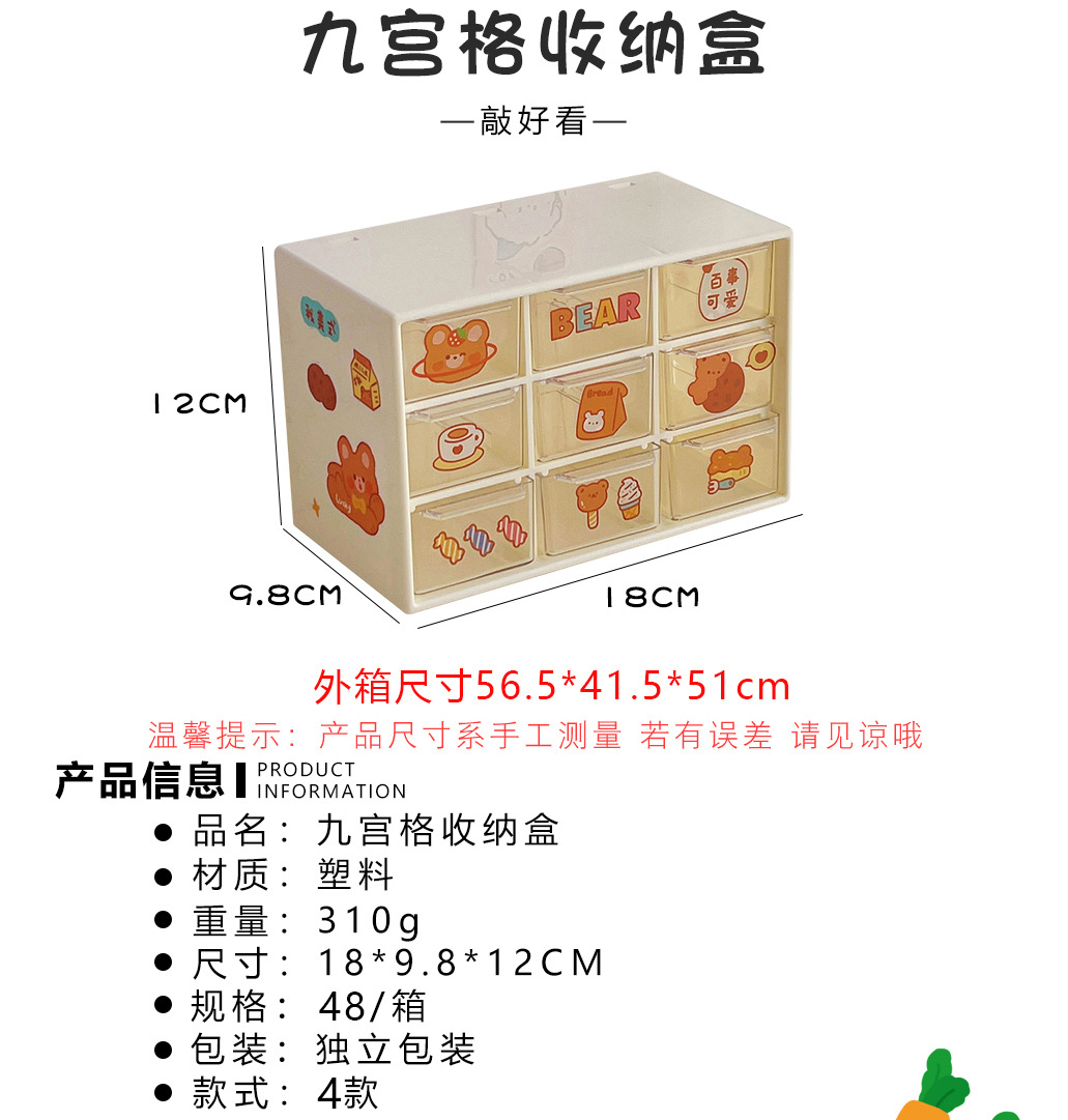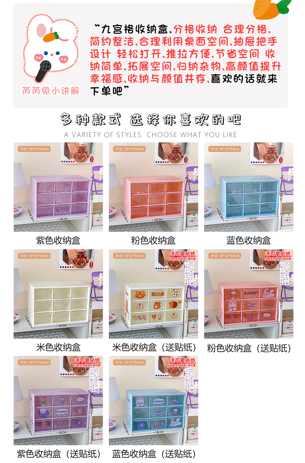 颜色 1#·米色收纳盒,4#米色收纳盒(送贴纸),1#紫色芮芮兔送贴纸,2#粉色芮芮兔送贴纸,3#米白色茶茶熊送贴纸,4#蓝色奶思汪送贴纸,1#·白色六宫格收纳盒,2#·品红六宫格收纳盒,3#·粉色六宫格收纳盒,1#米白收纳盒,2#湖蓝收纳盒,3#粉色收纳盒,4#绿色收纳盒,5#米白收纳盒(送贴纸),6#湖蓝收纳盒(送贴纸),7#粉色收纳盒(送贴纸),8#绿色收纳盒(送贴纸),7#蓝色收纳盒,8#粉色收纳盒,9#紫色收纳盒,10#蓝色收纳盒(送贴纸),11#粉色收纳盒(送贴纸),12#紫色收纳盒(送贴纸)