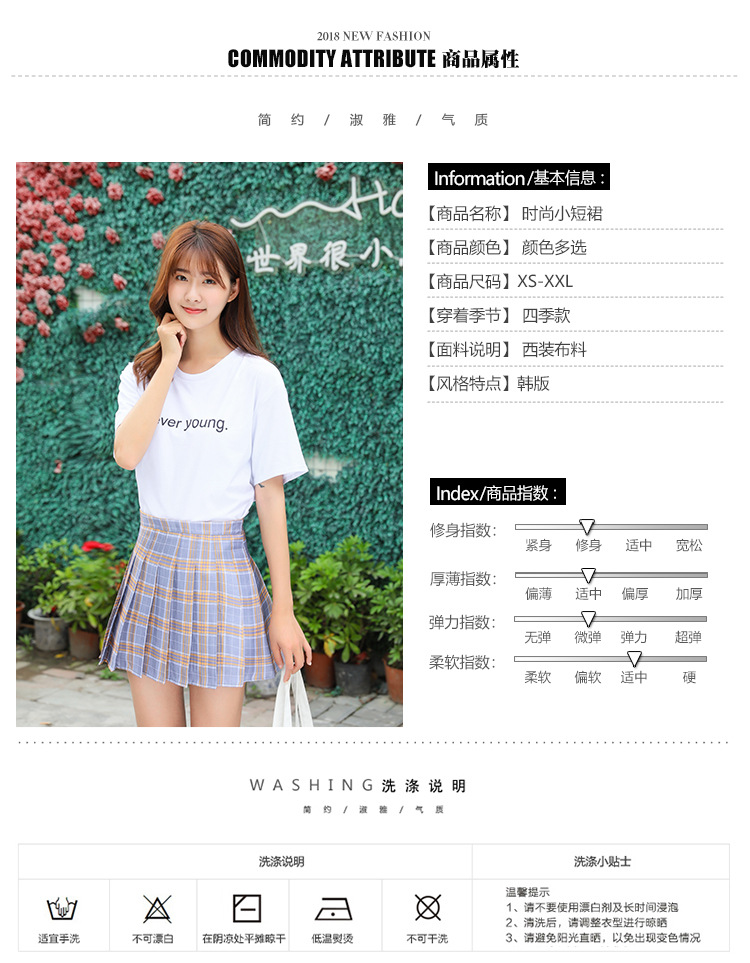 亚马逊爆款格子半身裙女夏秋冬新款高腰短裙韩版灰色a字裙百褶裙