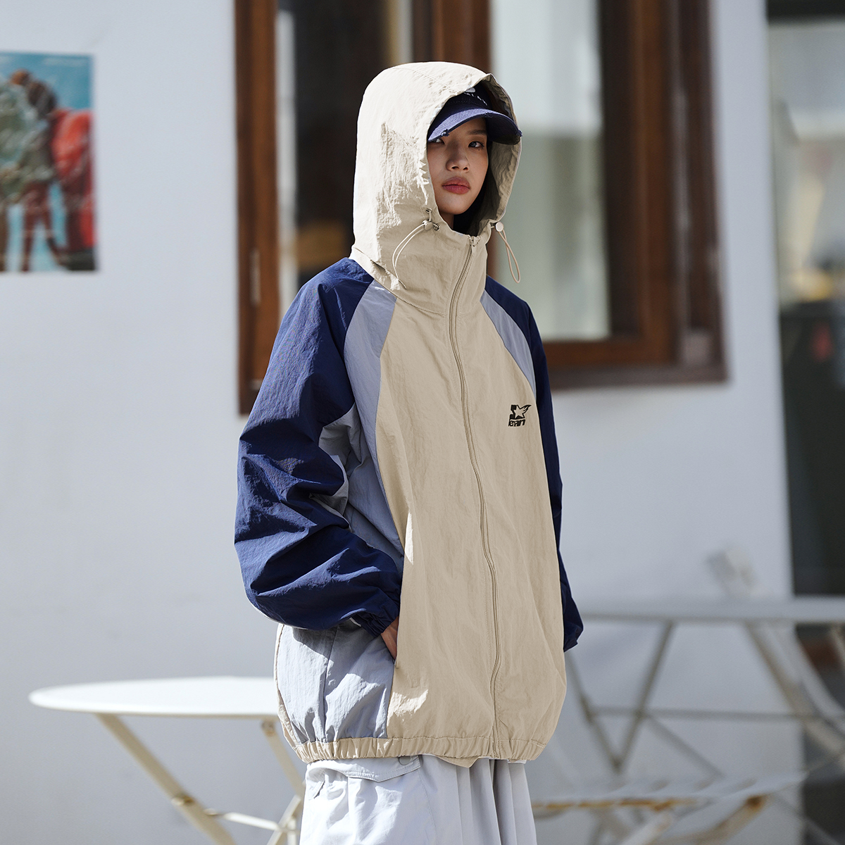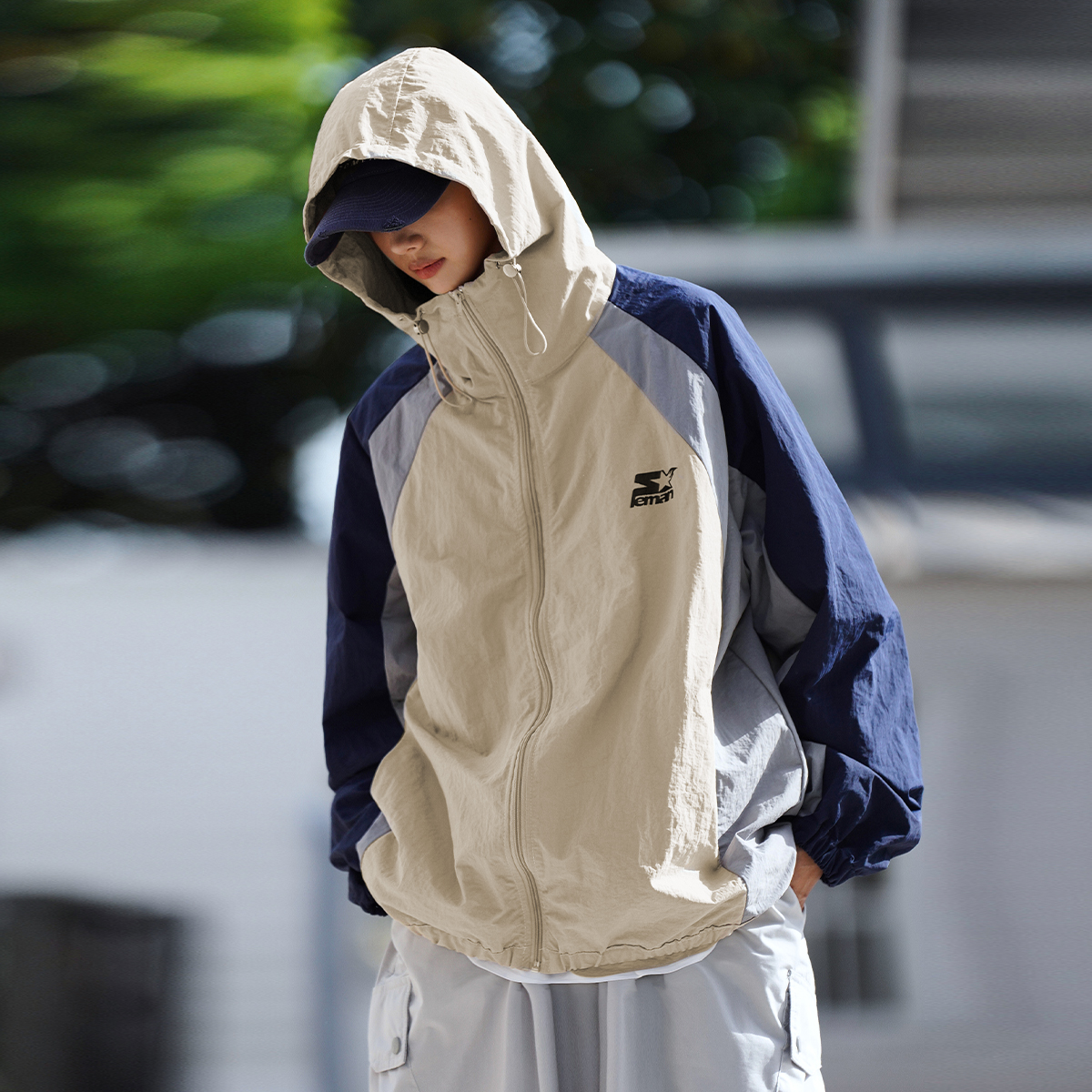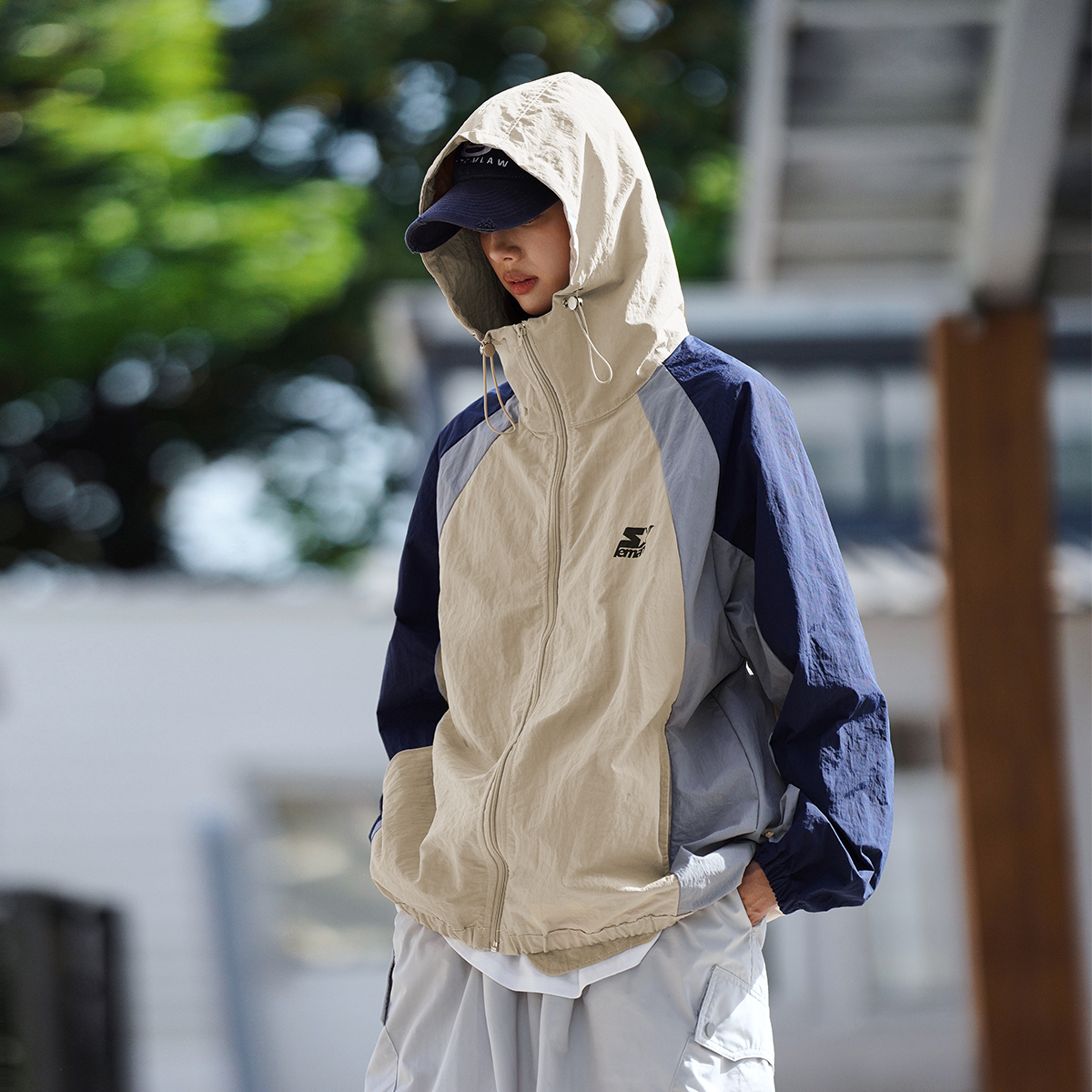Lemanism美式拼色UPF50+抗UV防曬衣男夏季薄款寬鬆潮流皮膚衣