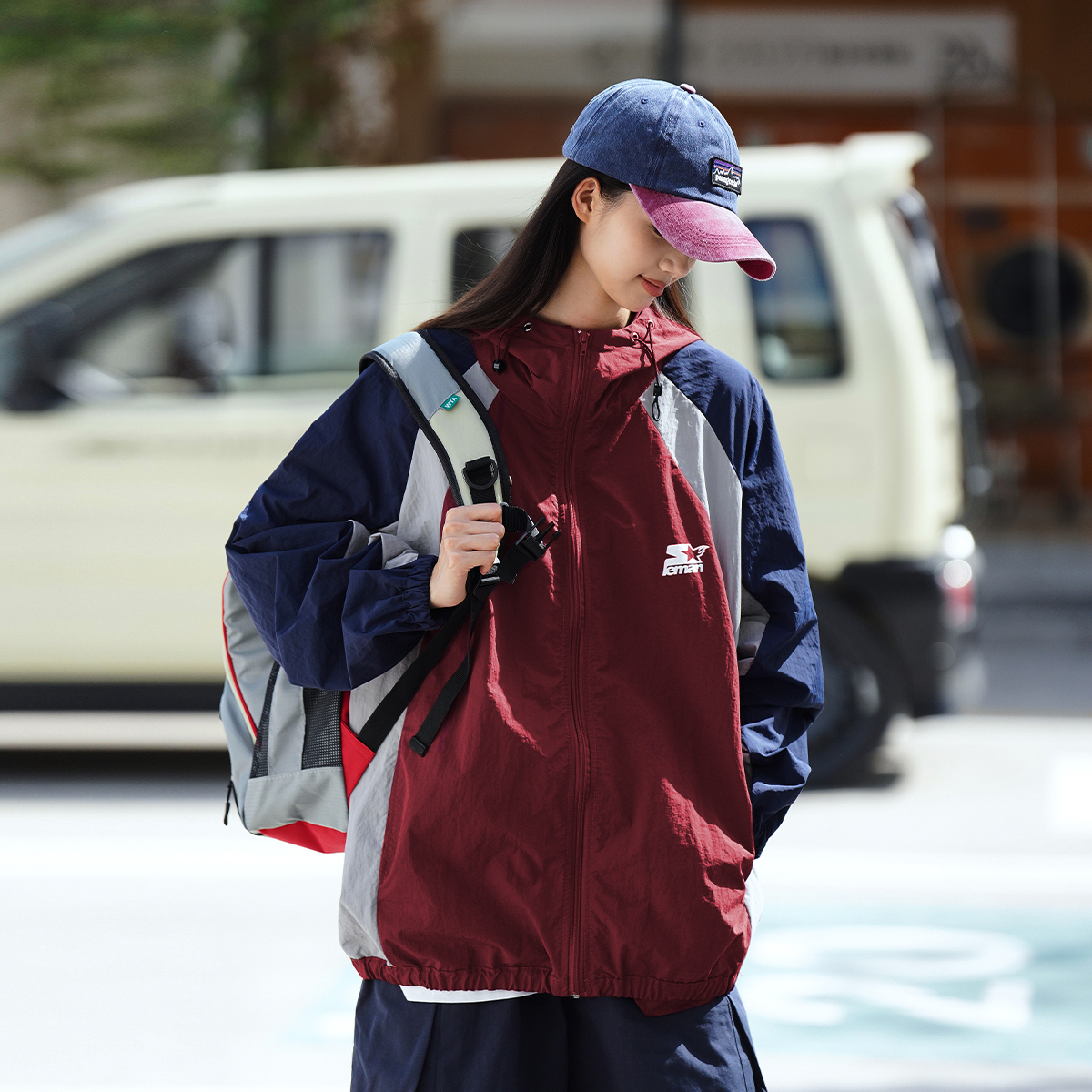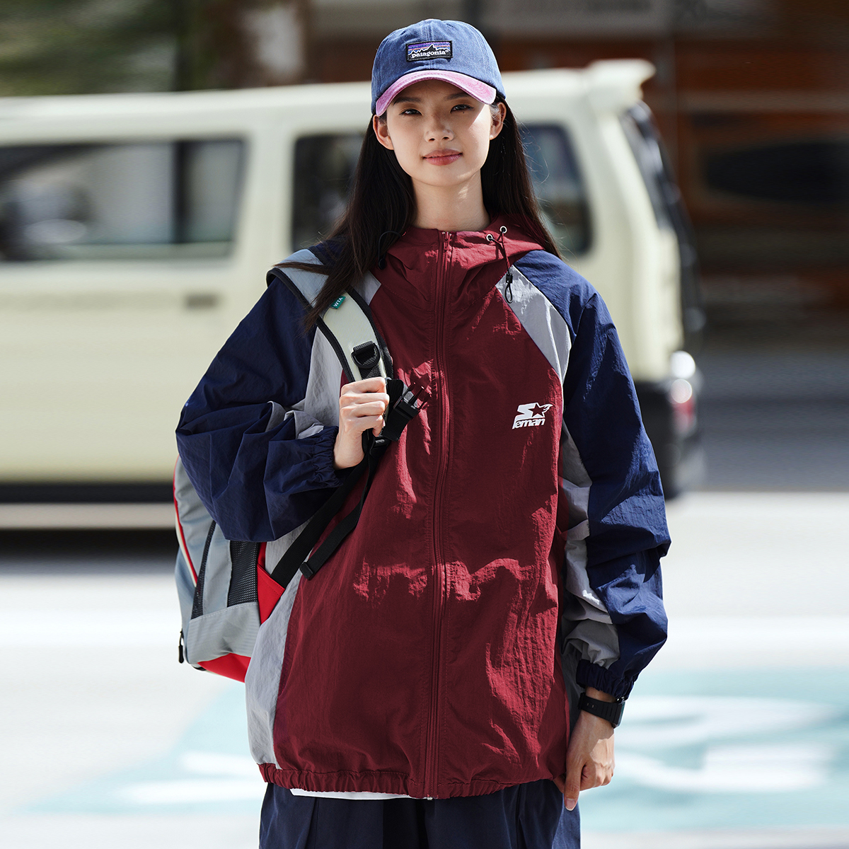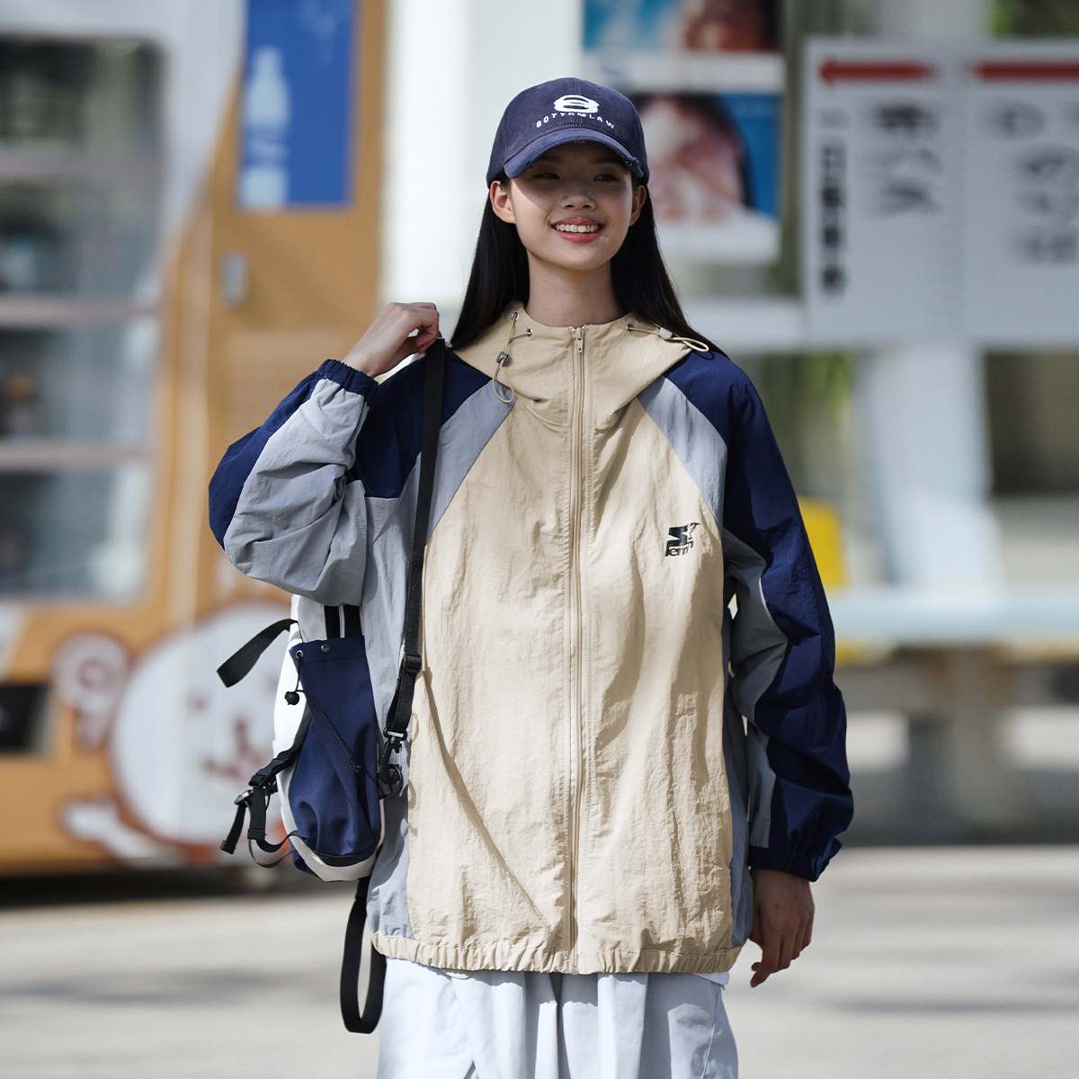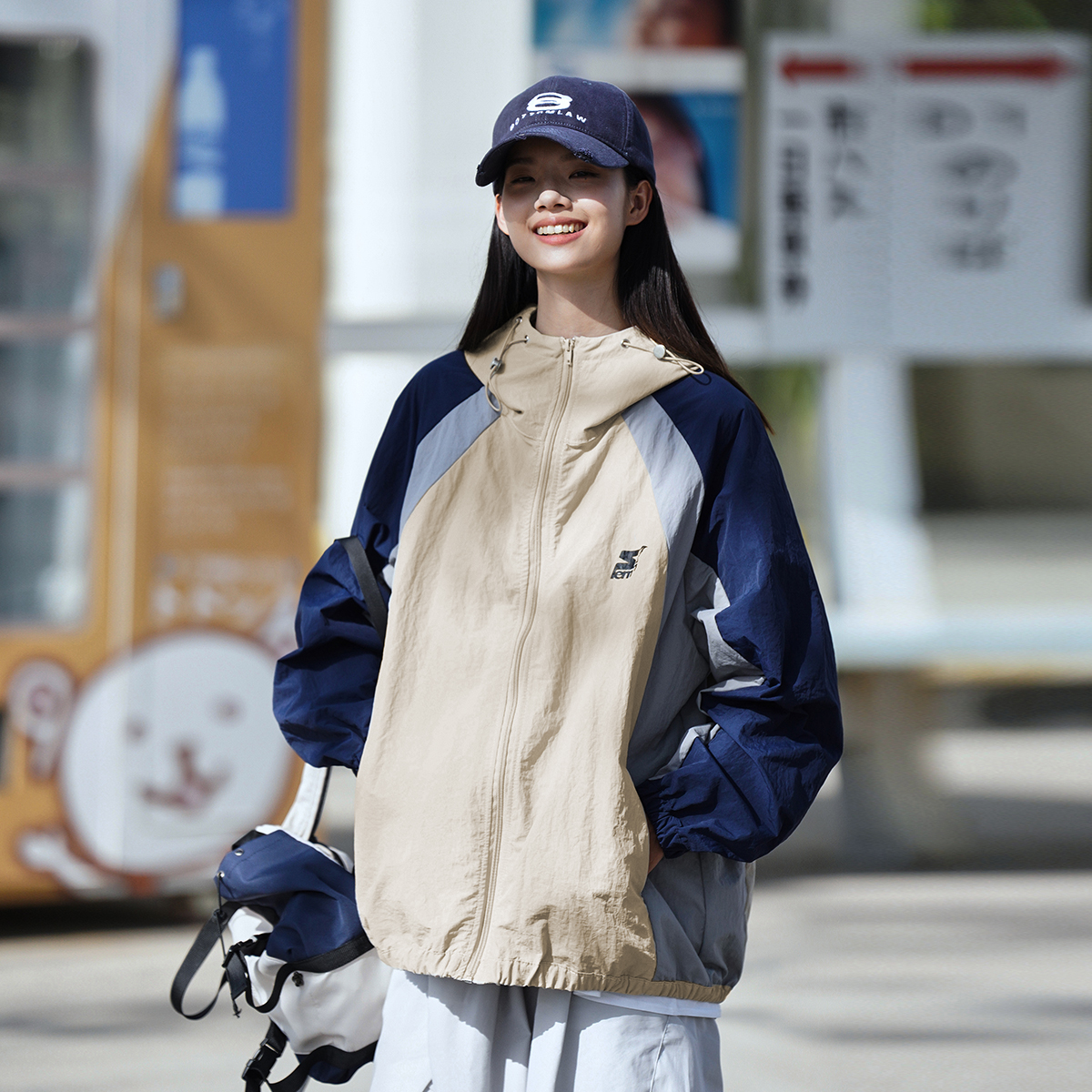 Lemanism美式拼色UPF50+抗UV防曬衣男夏季薄款寬鬆潮流皮膚衣
