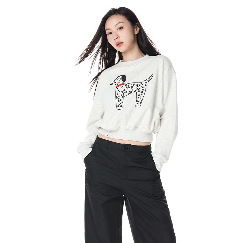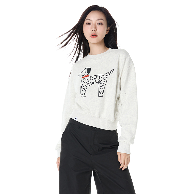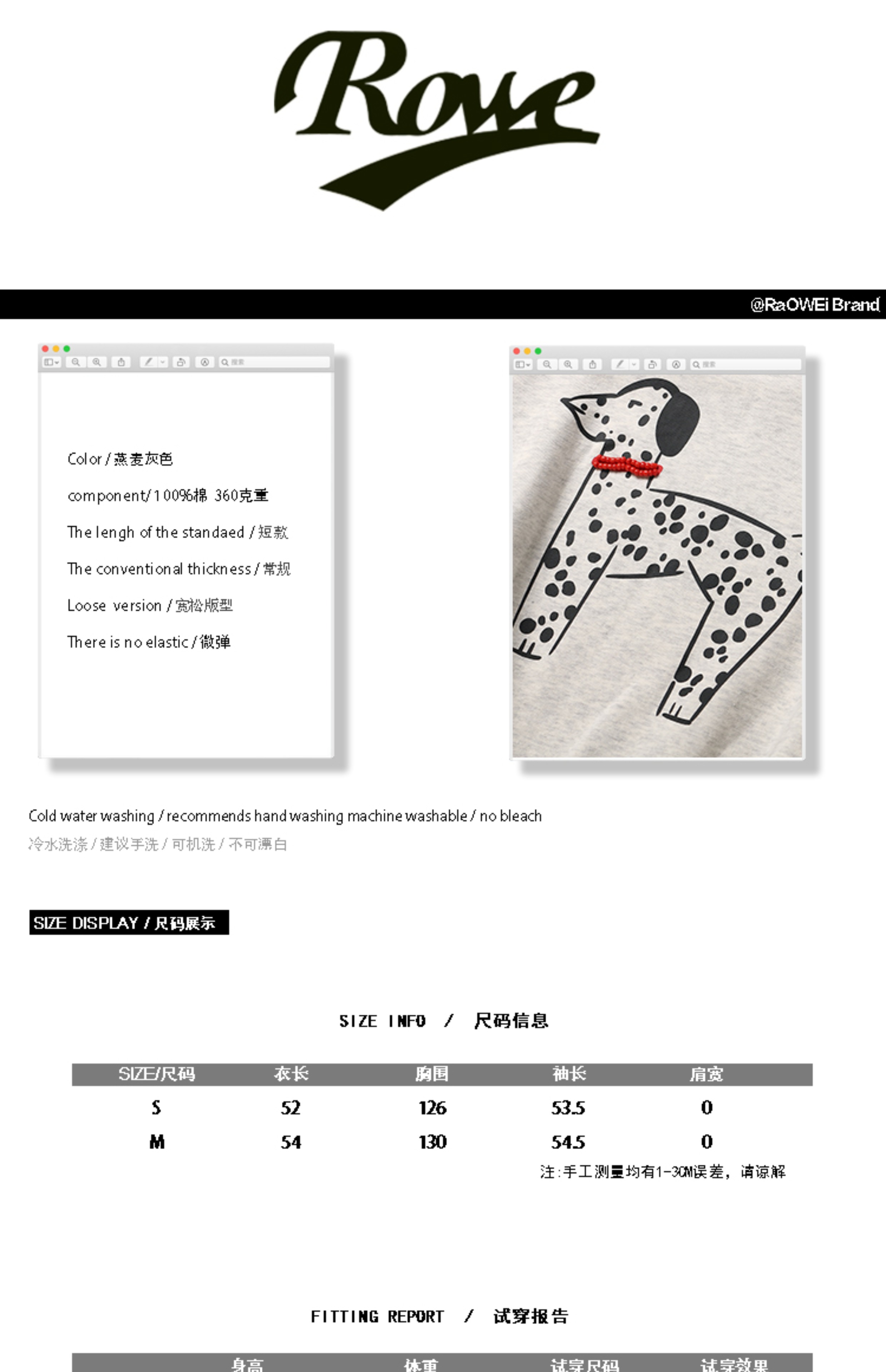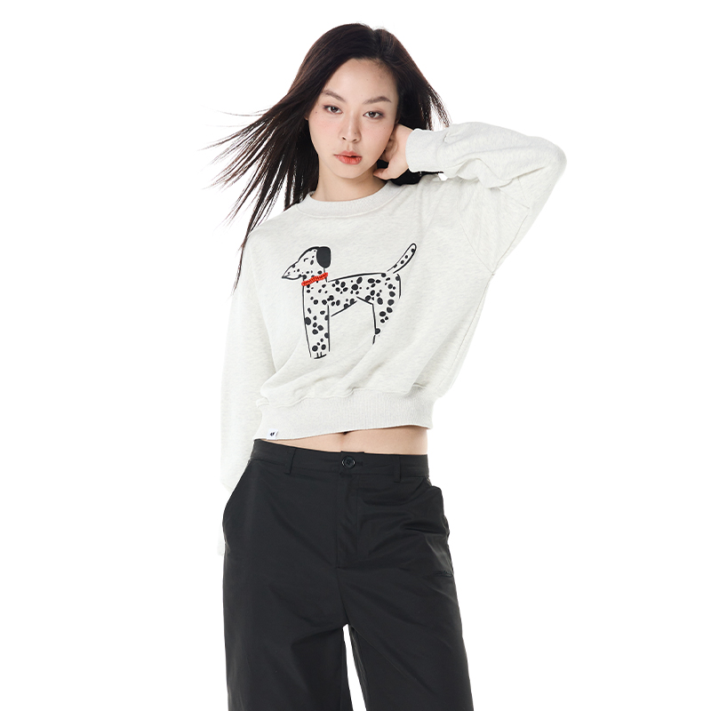 【ROWE心碎】設計感小眾斑點狗印花圓領厚棉T辣妹風短款套頭上衣秋