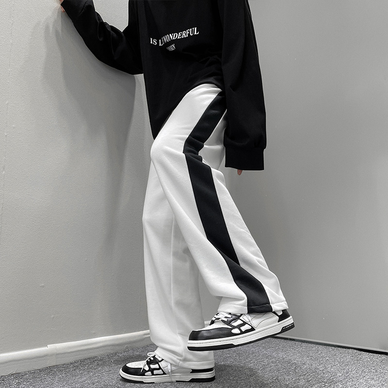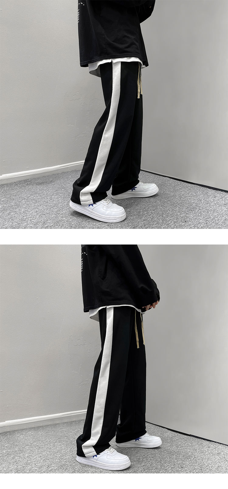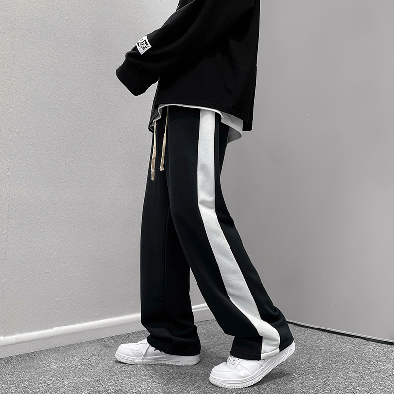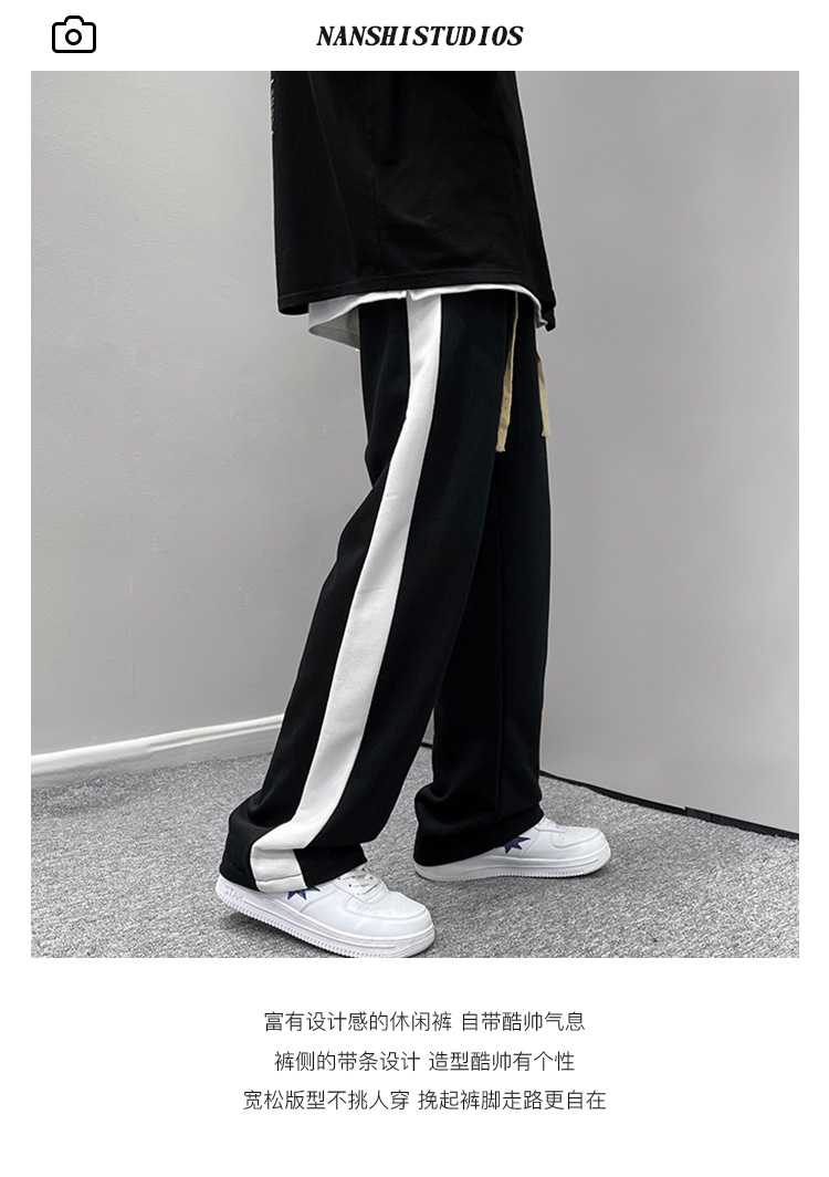 休閒褲男韓版潮流百搭高街冰絲褲子男ins潮直筒寬鬆垂感闊腿長褲