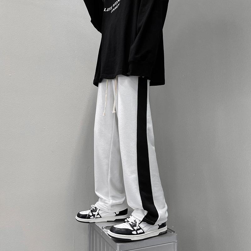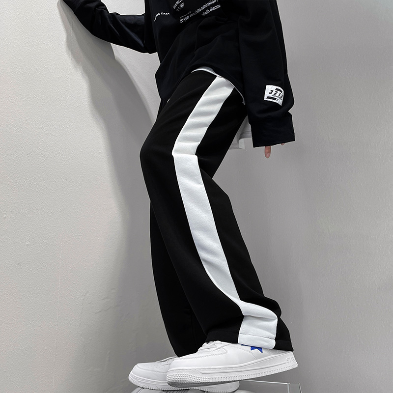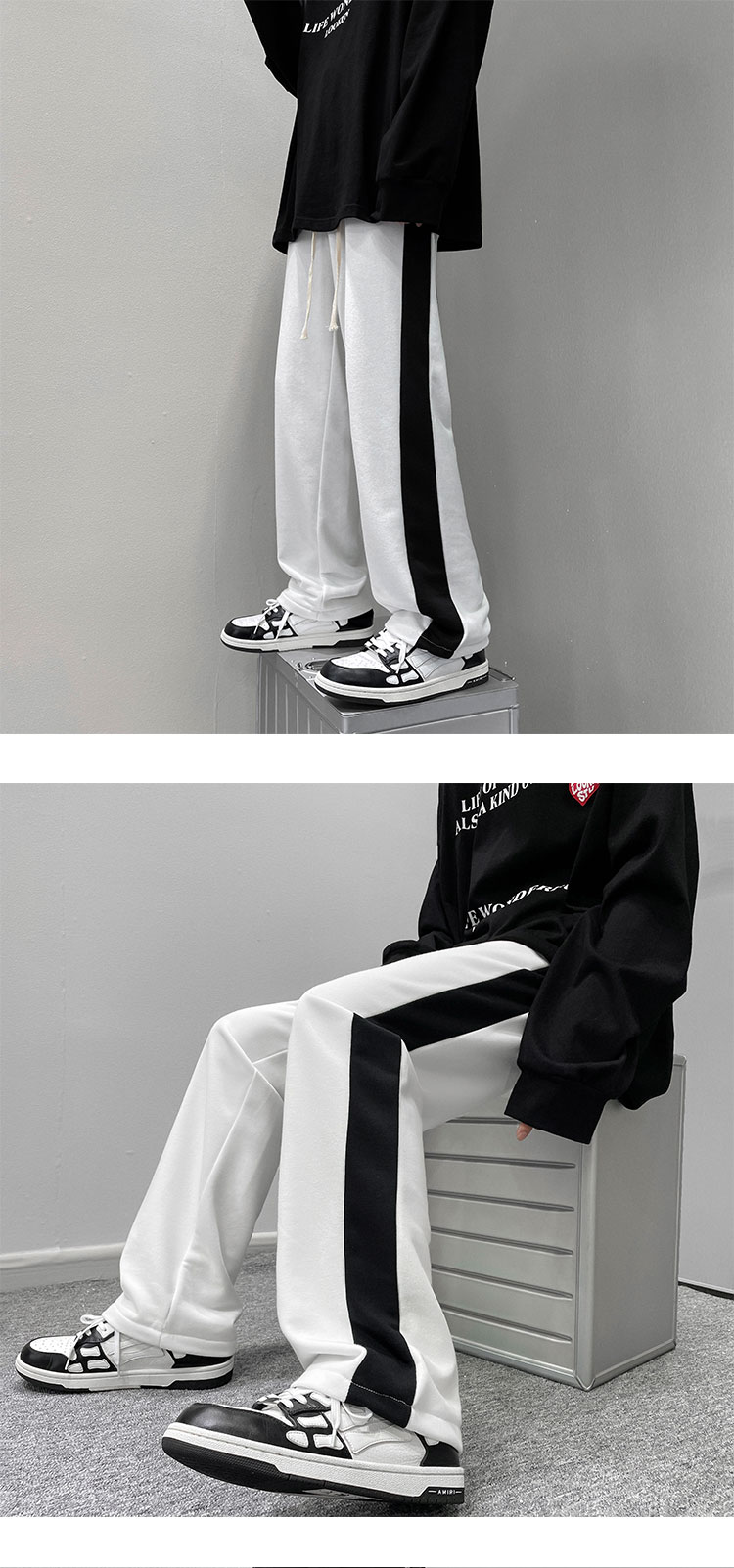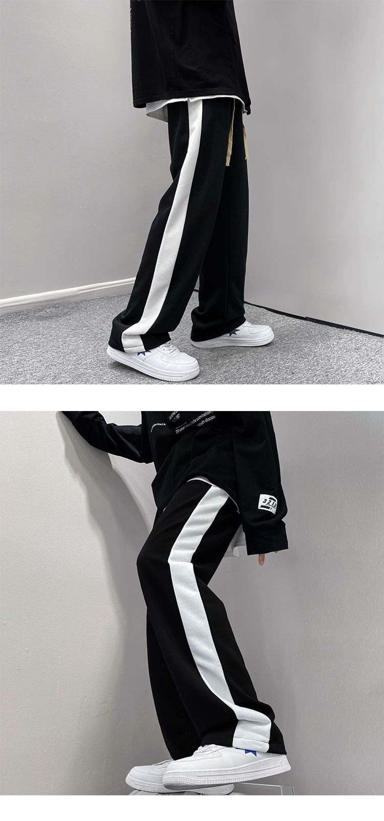 休閒褲男韓版潮流百搭高街冰絲褲子男ins潮直筒寬鬆垂感闊腿長褲