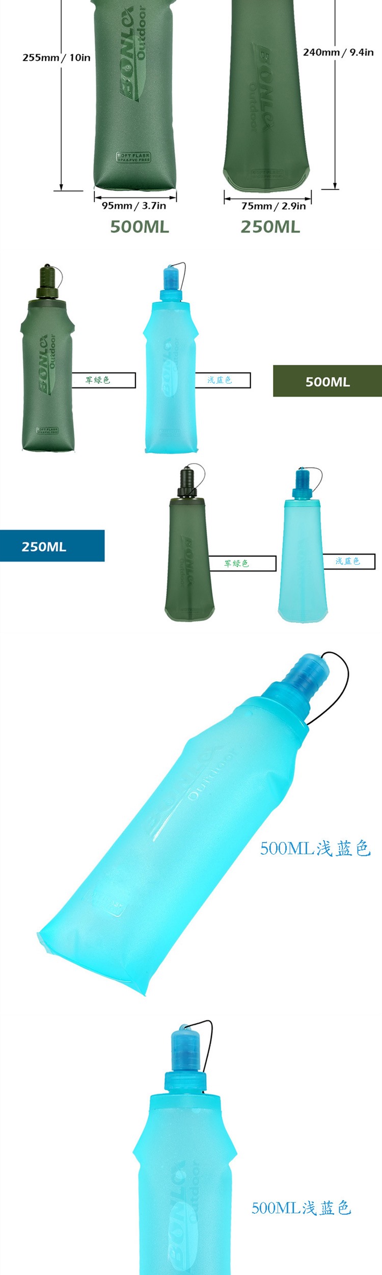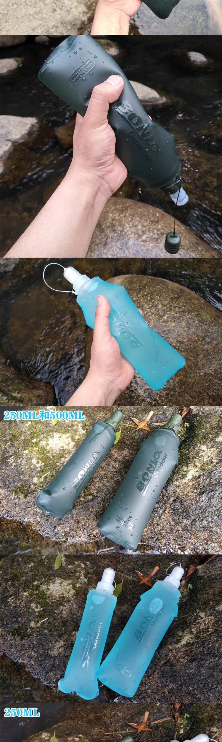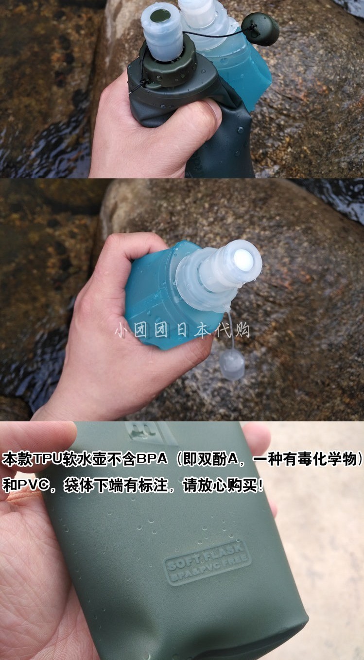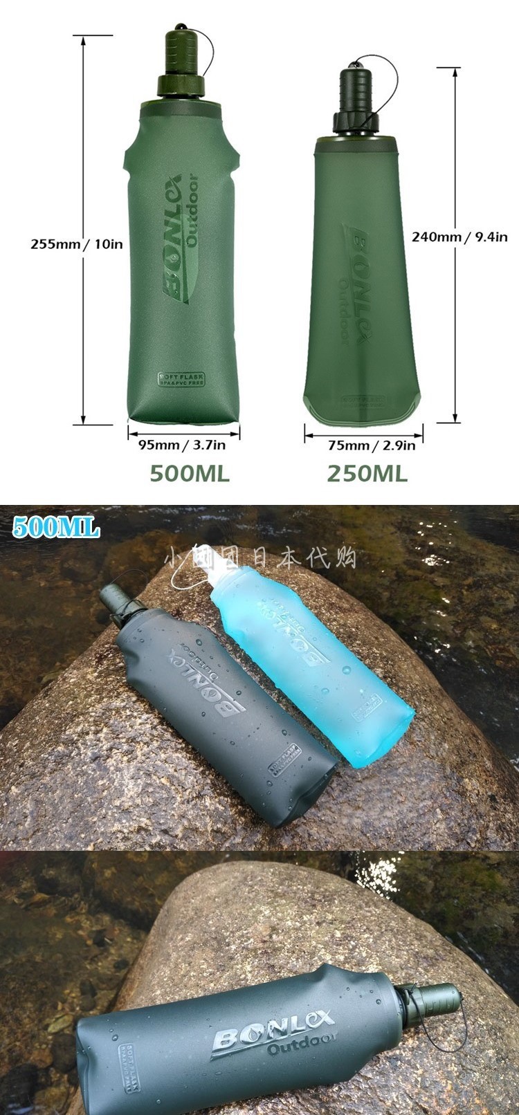 日本TPU食品級可攜式軟水壺戶外運動腰包騎行跑步矽膠旅行摺疊水袋