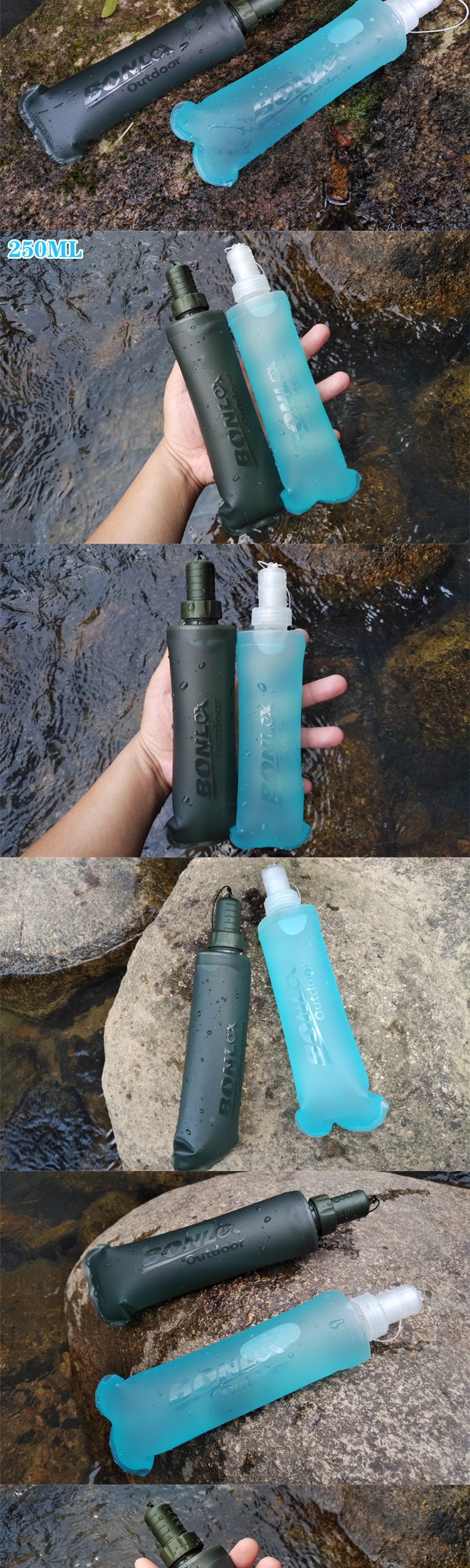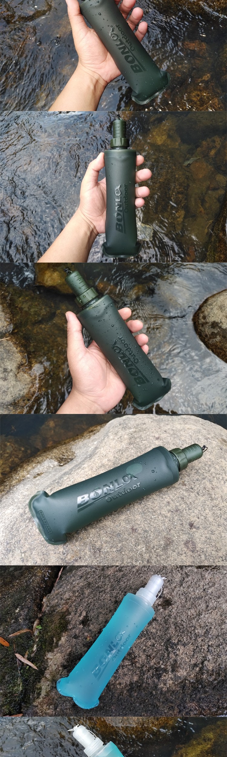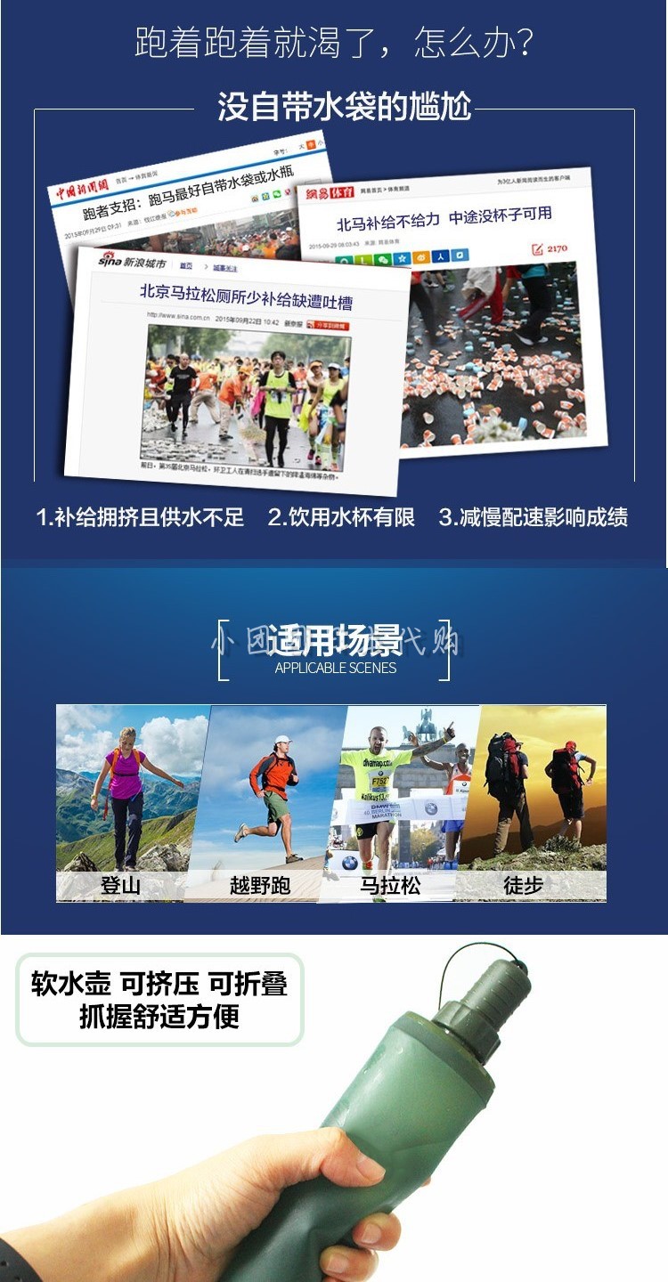 日本TPU食品級可攜式軟水壺戶外運動腰包騎行跑步矽膠旅行摺疊水袋