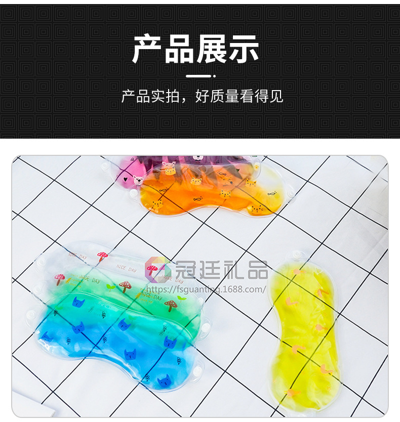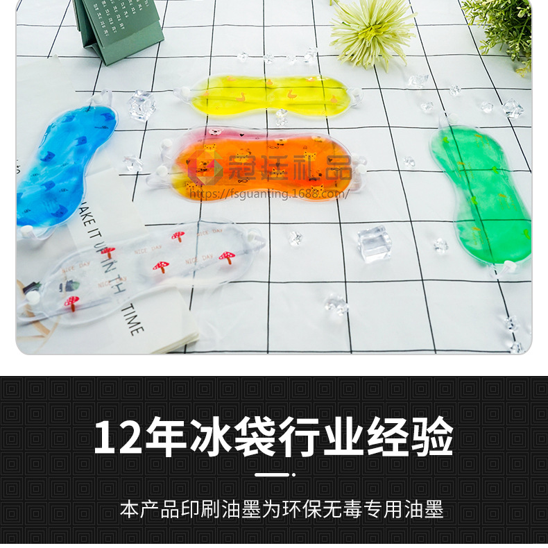 本厂秉承质优价廉、绿色环保的理念,专业生产各种规格型号的眼罩、冰袋,材质为PEVA/PVC环保物料,内入液体为环保无毒油液,可放冰箱零下30度不结冰,配合可爱卡通印刷,适合做美容及产品的促销。