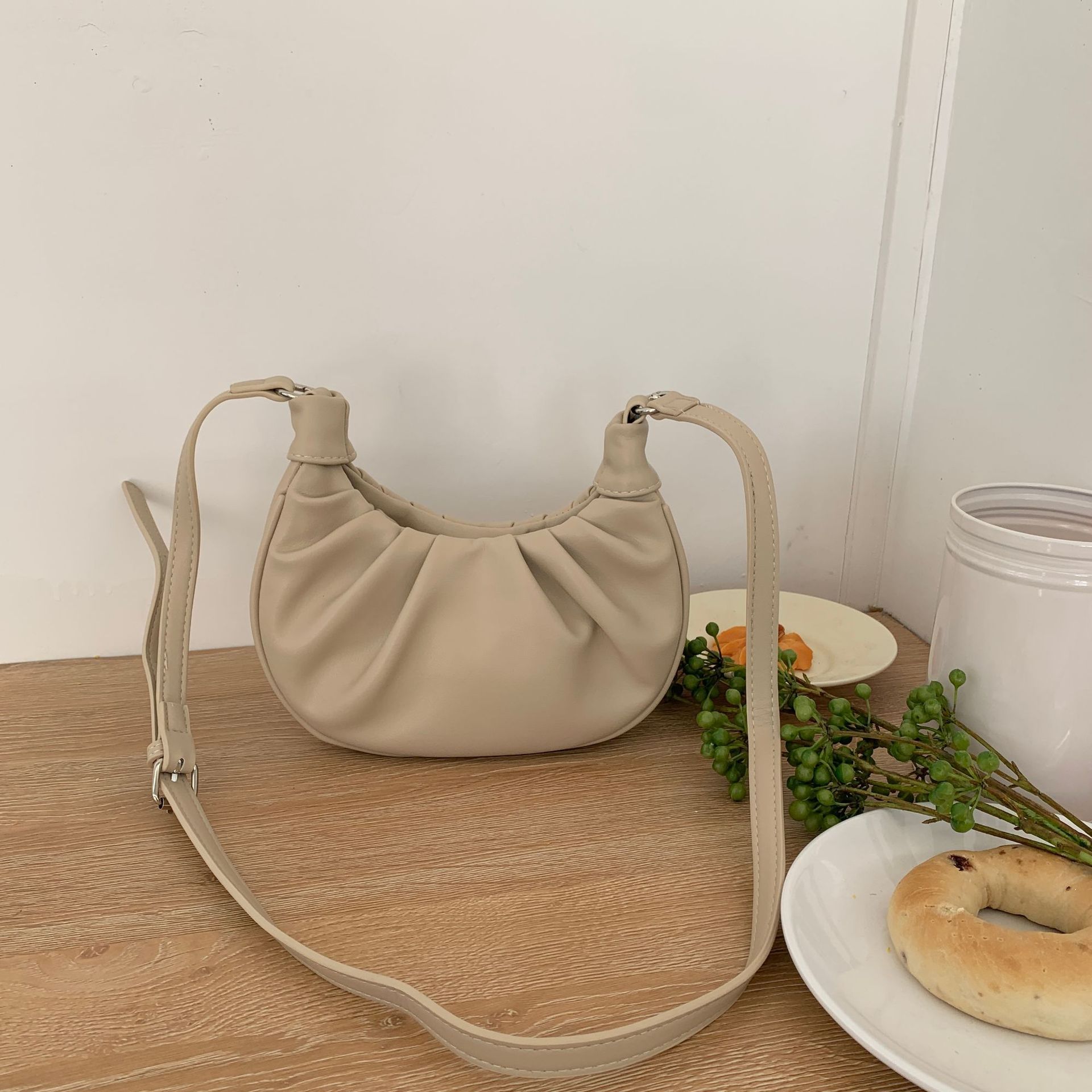 小众设计时尚单肩腋下包包女2024新款韩版休闲百搭通勤褶皱斜挎包