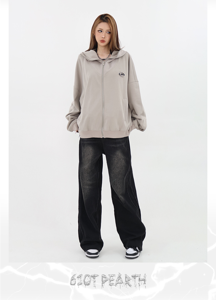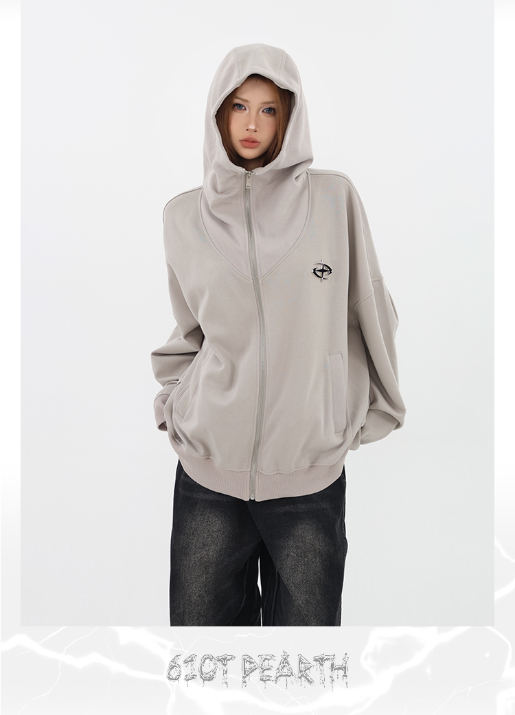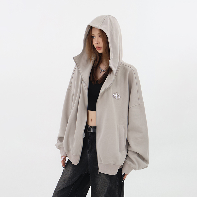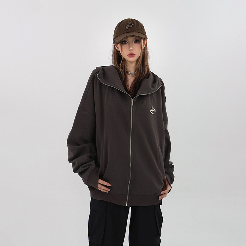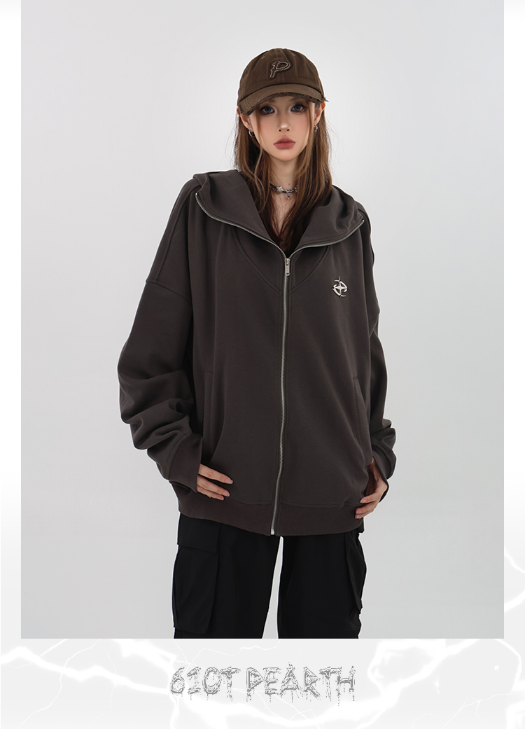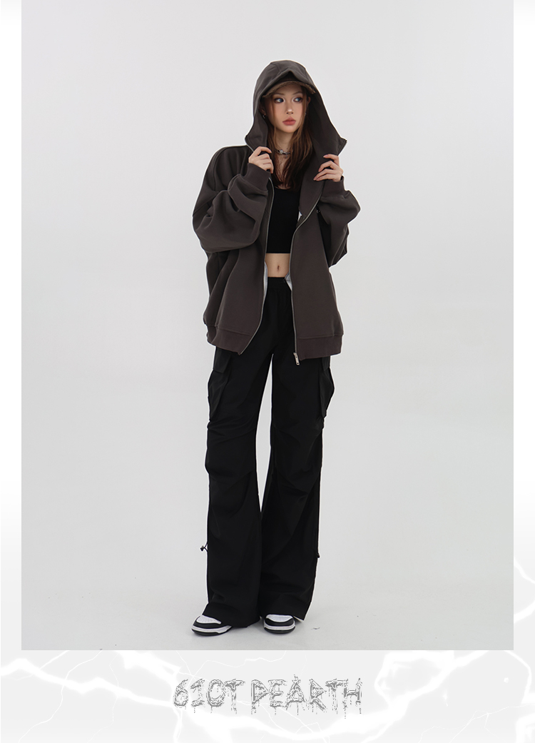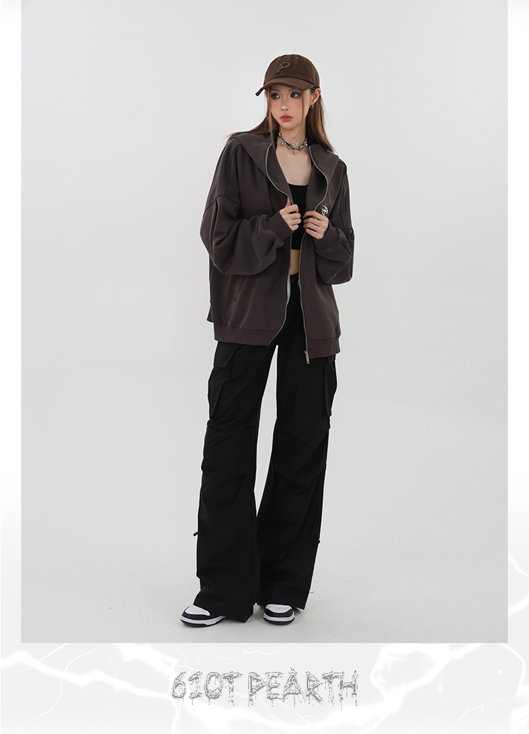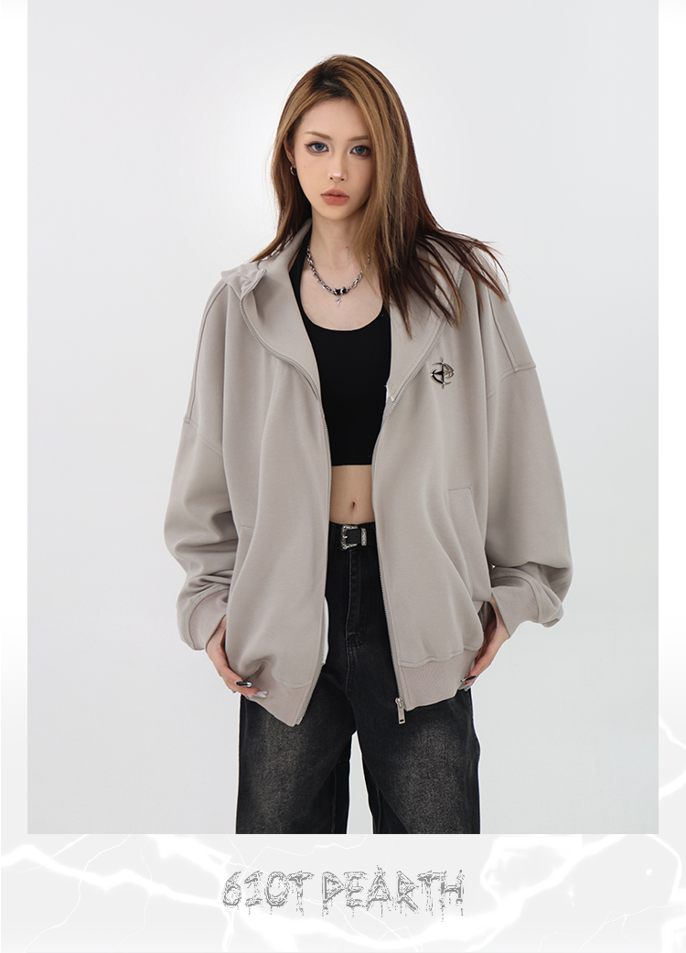 61OT PEARTH美式連帽拉鍊開衫厚棉T外套女2023春秋新款寬鬆休閒潮
