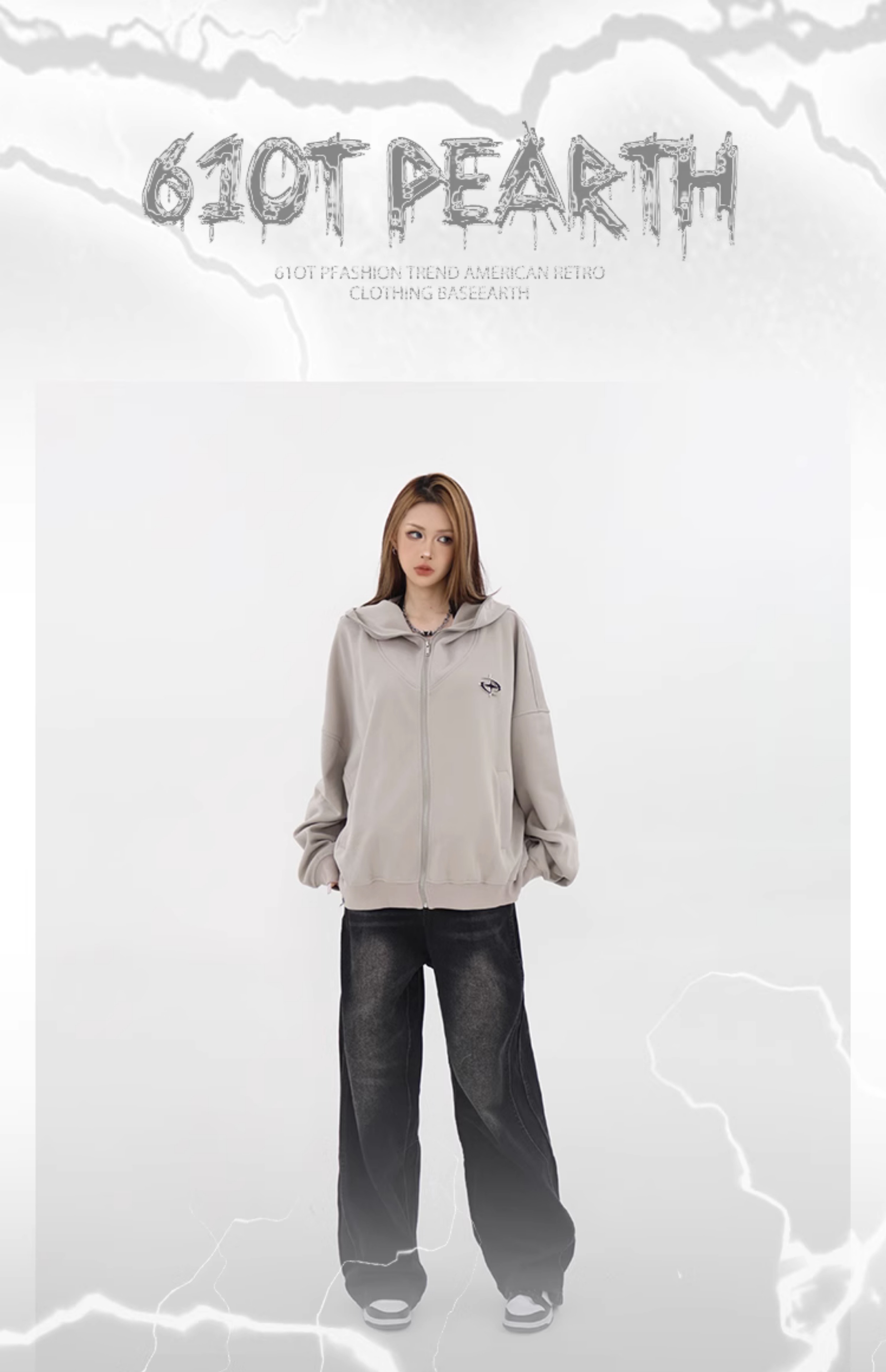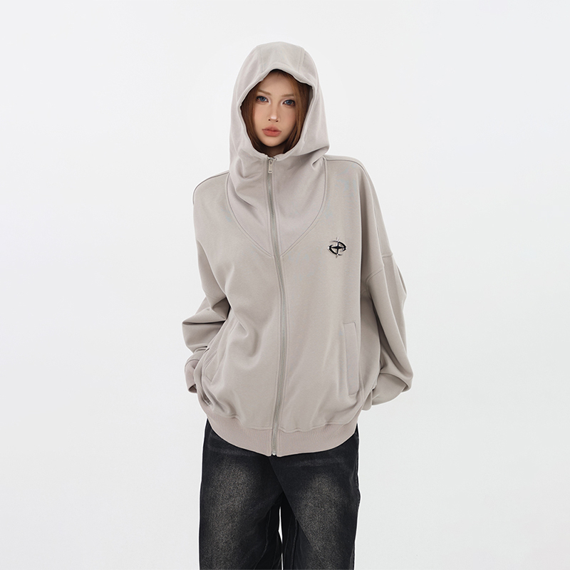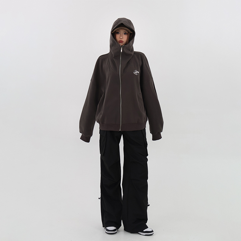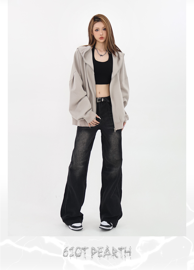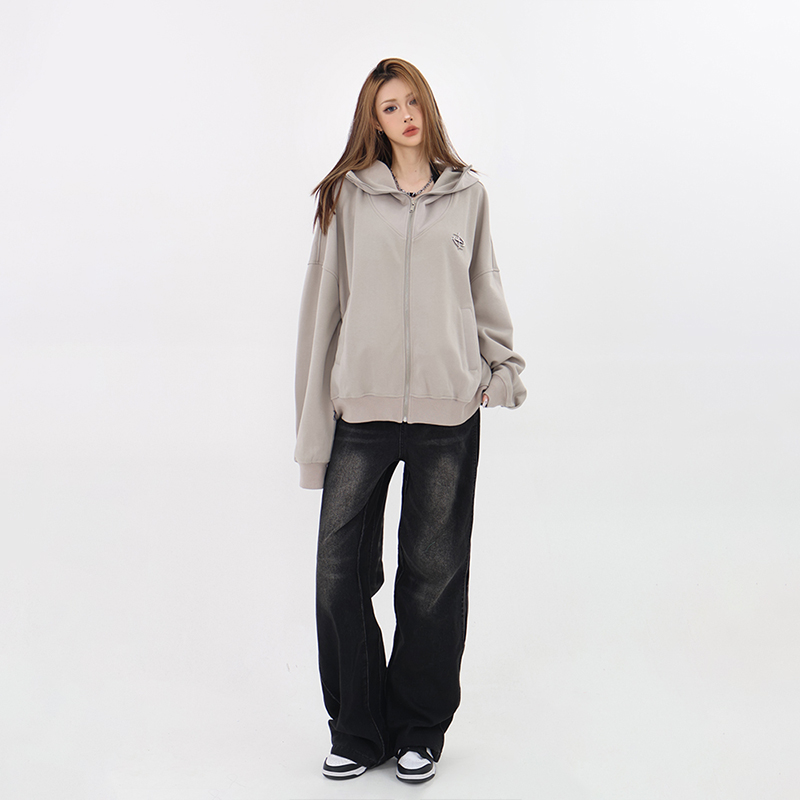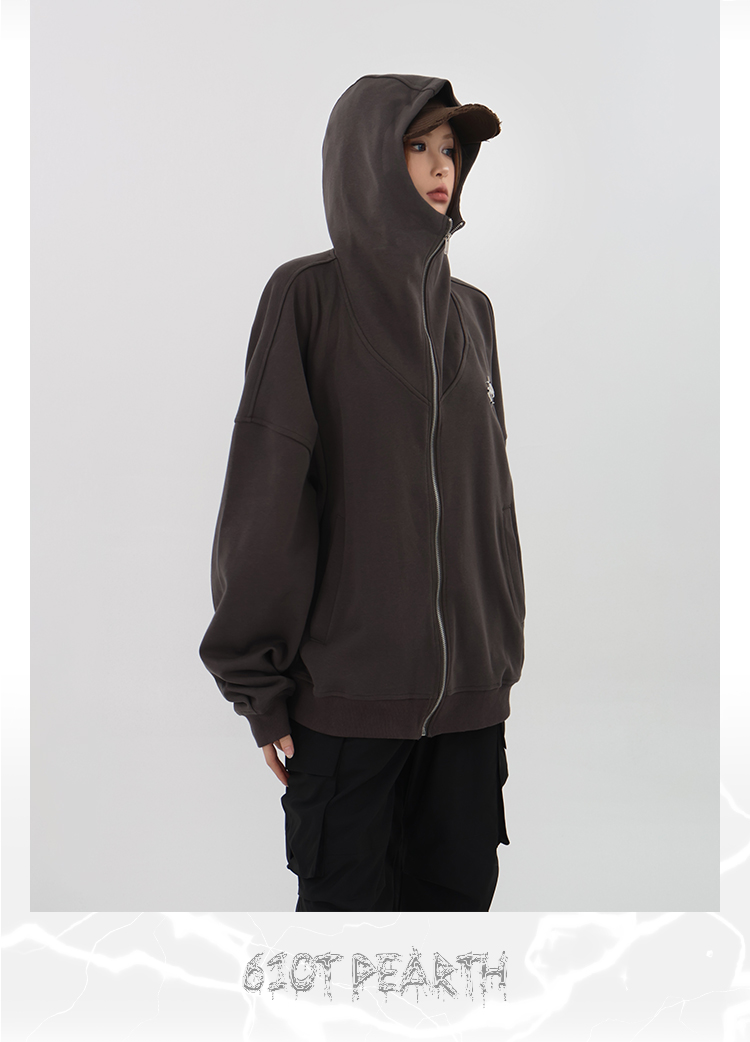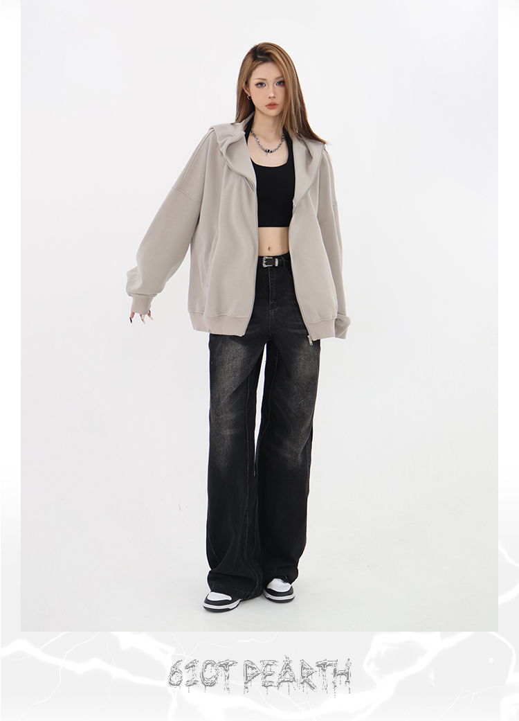 61OT PEARTH美式連帽拉鍊開衫厚棉T外套女2023春秋新款寬鬆休閒潮