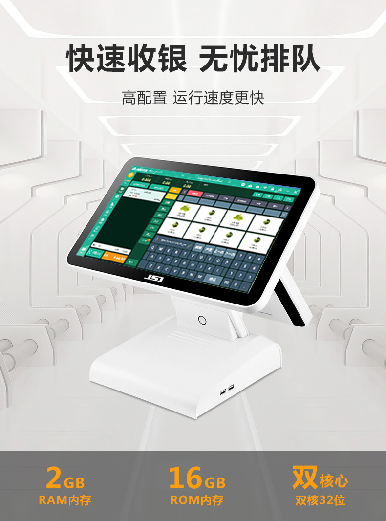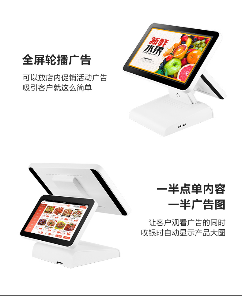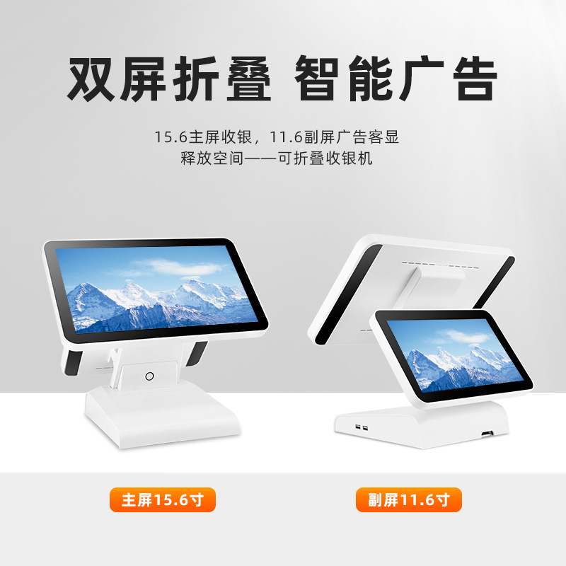 15.6英寸单双屏触摸式餐饮收银机可折叠跨境多语言收银机外贸批发