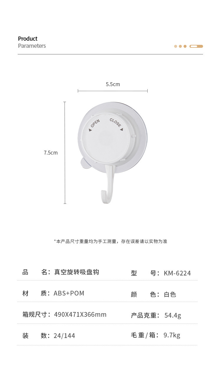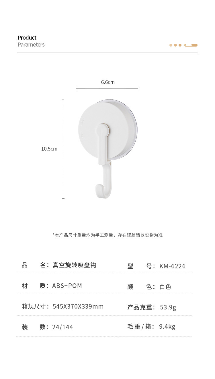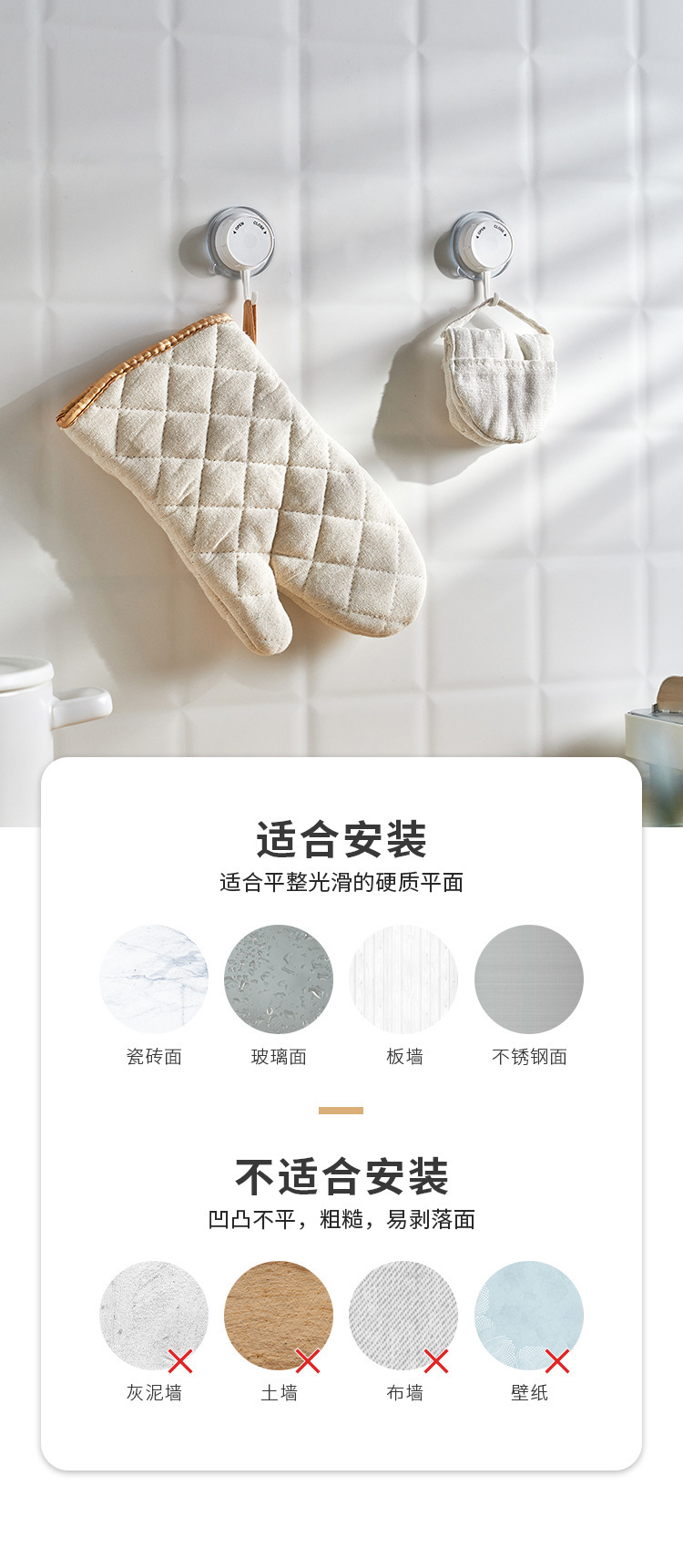 KM.6226卫生间强力真空吸盘挂钩厨房门后吸壁式浴室玻璃吸墙壁挂