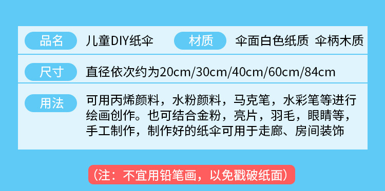颜色 直径20cm迷你款纸伞/尺寸较小,直径30cm小号款纸伞,直径40cm中号款纸伞,直径60cm大号款纸伞,直径84cm超大号款纸伞,30cm直径图案混发,40cm纸伞随机发,60cm直径图案混发,30cm直径图案混发+颜料,40cm纸伞随机发+颜料,60cm直径图案混发+颜料,梅兰竹菊-梅40cm,梅兰竹菊-兰40cm,梅兰竹菊-竹40cm,梅兰竹菊-菊40cm,直径40cm纸伞(小汽车),直径40cm纸伞(牡丹花),直径40cm纸伞(荷花),40cm【碰头鱼】,40cm【白雪公主】,40cm【房子】,40cm【公主】,40cm【荷花】,40cm【黄鹂】,40cm【孔雀】,40cm【汽车】,40cm【小女孩】,小鸭戏水-40cm,快乐出发-40cm,小蝌蚪找妈妈-40cm,梅花鹿-40cm,猫头鹰-40cm,京剧兔子-40cm,花仙子-40cm,独角兽-40cm,遨游太空-40cm,花间嬉戏-40cm,60cm(荷花),60cm(牡丹花),60cm(京剧小生),60cm(桃花),彩虹火车-60cm,公主小马-60cm,海底世界-60cm,恐龙世界-60cm,蘑菇屋-60cm,木马小孩-60cm,秋千女孩-60cm,小鸟唱歌-60cm,30cm【嫦娥】,30cm【熊猫】,30cm【荷花与鱼】,30cm【海世界】,30cm【葡萄】,30cm【喜鹊】,30cm【小鸟】,30cm【小鸭】,六连体颜料3ml A+B款送平头+尖头,六连体颜料5ml A+B款送平头+尖头