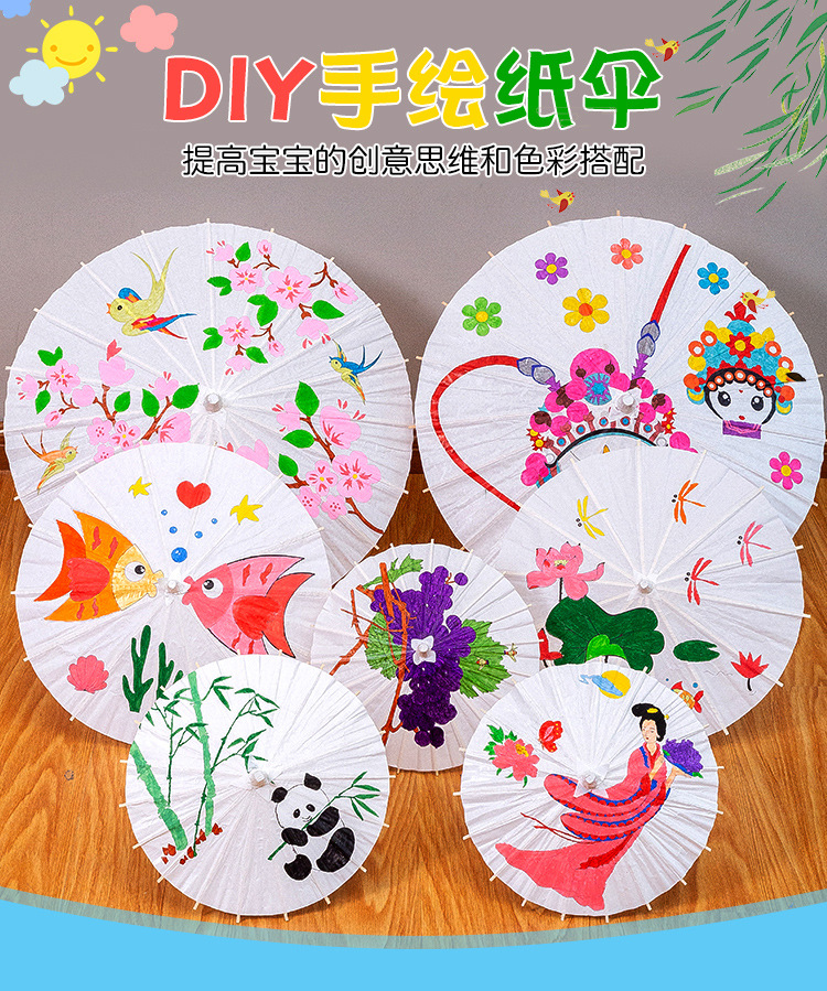 空白纸伞diy手工绘画幼儿园创意儿童手绘伞雨伞涂鸦伞手绘玩具