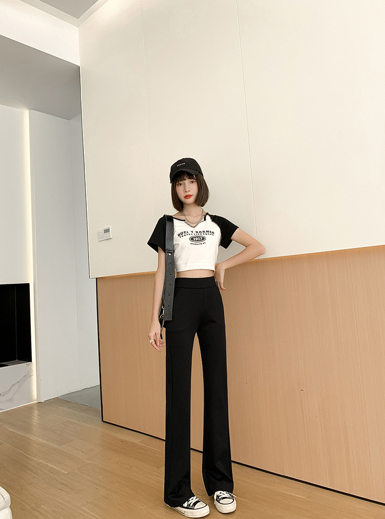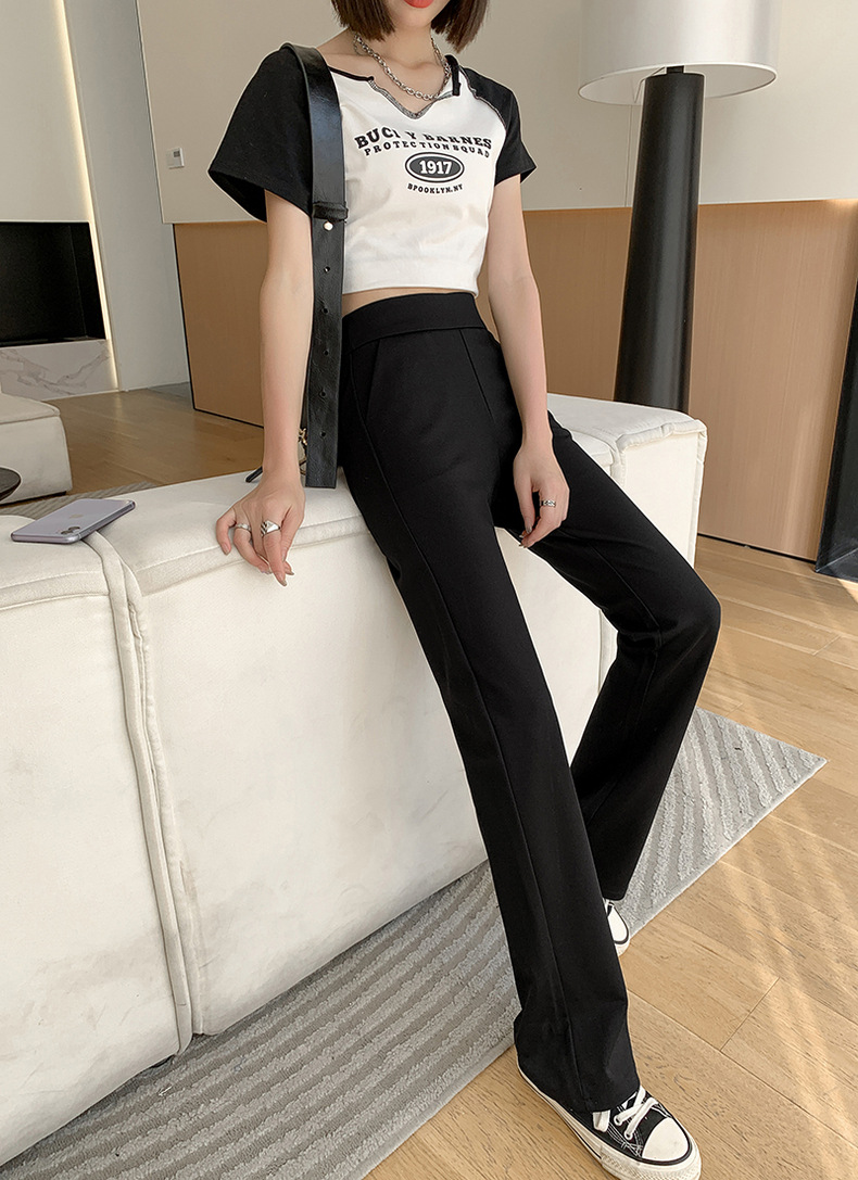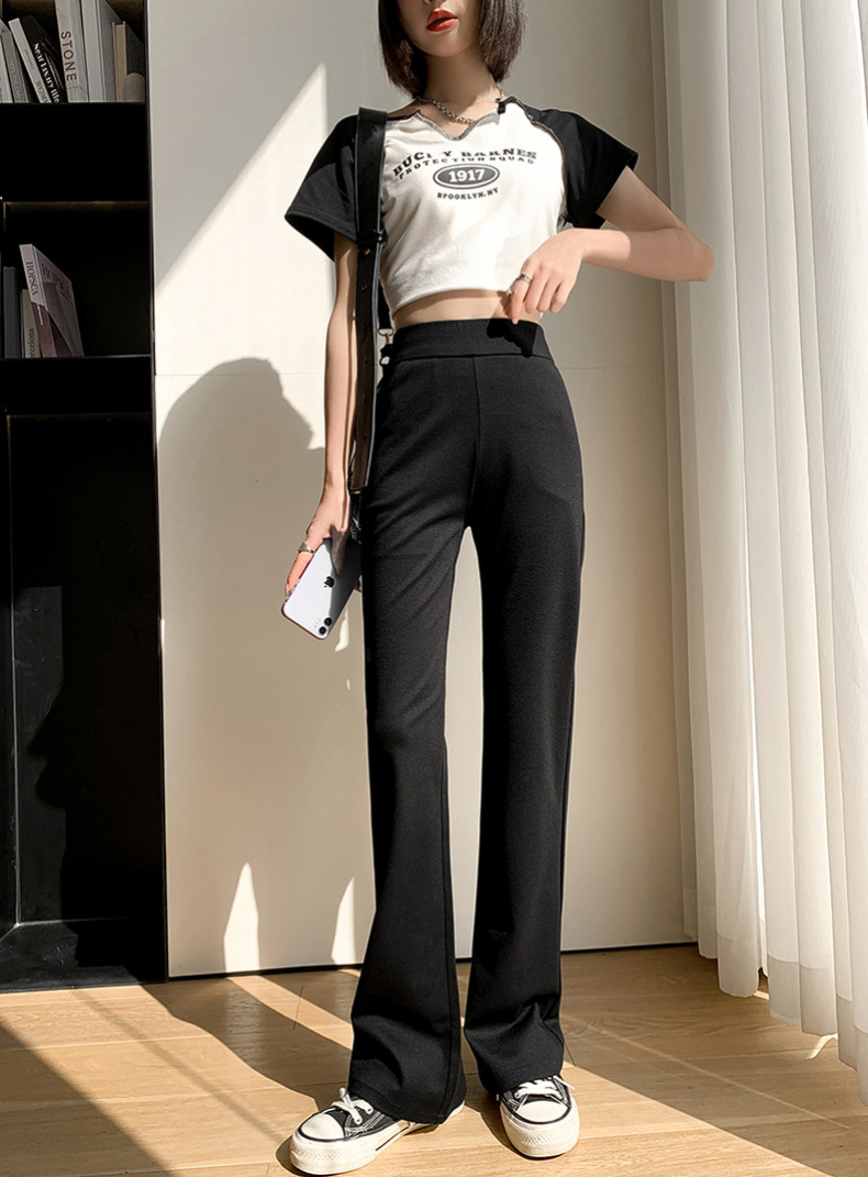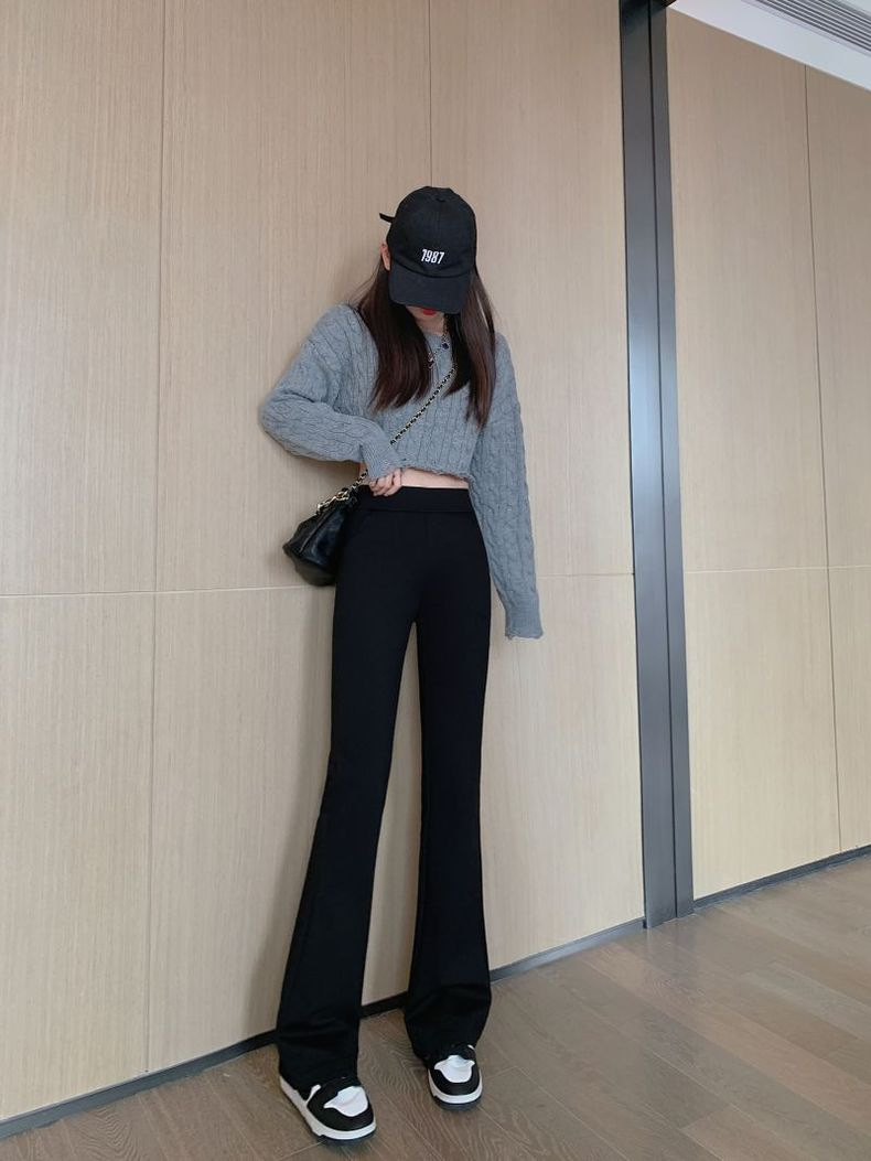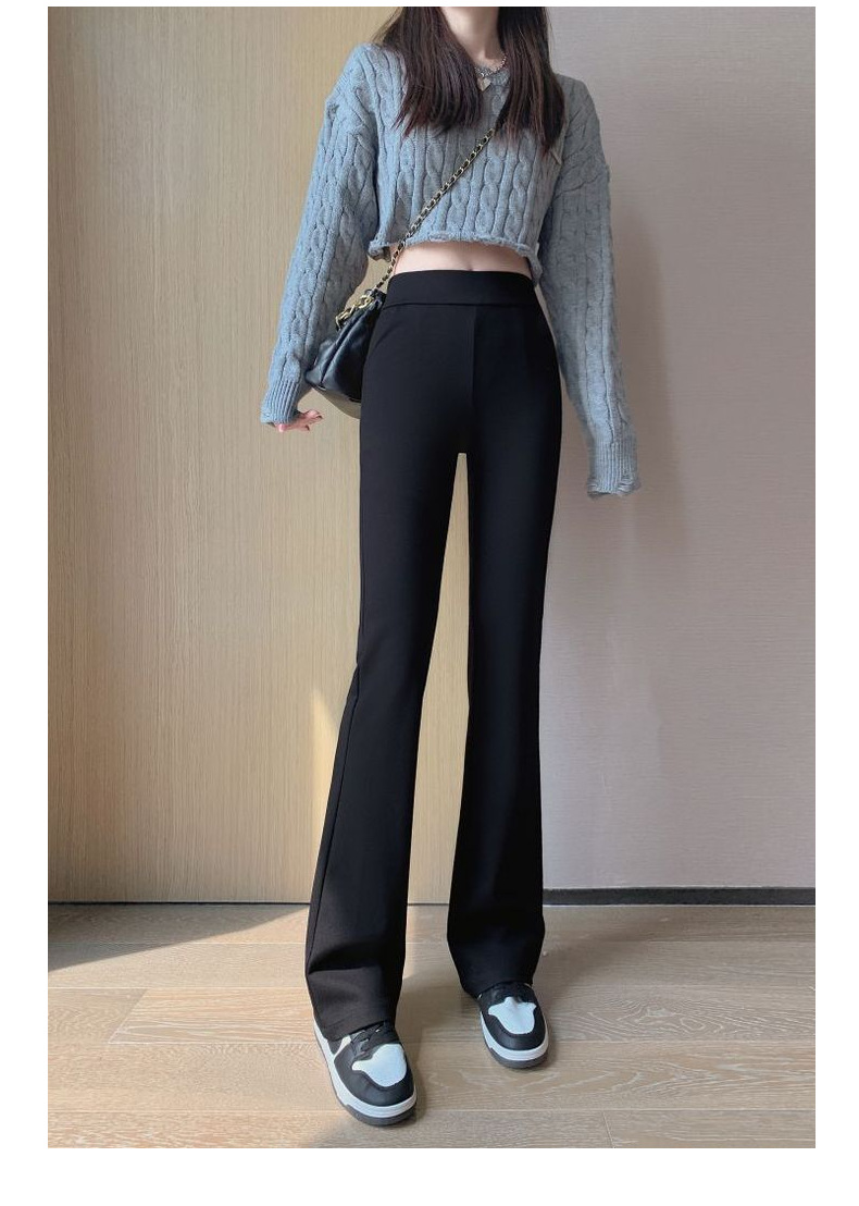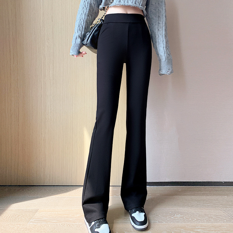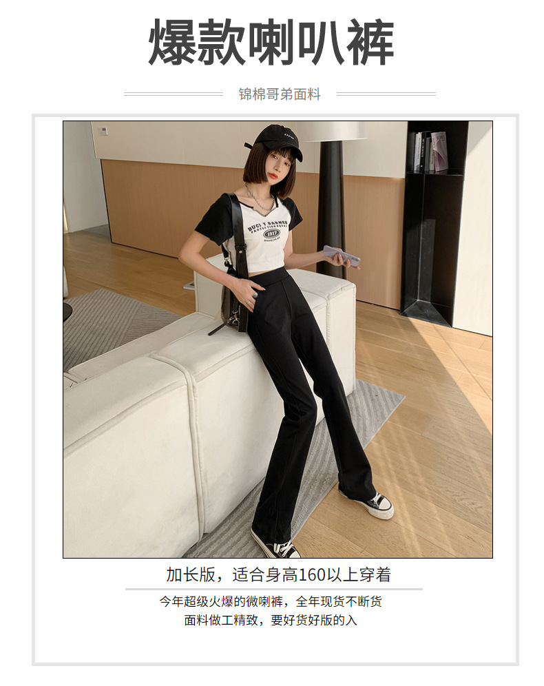 2023秋季女装锦棉柔软冰凉微喇叭长款拖地喇叭裤休闲女裤子