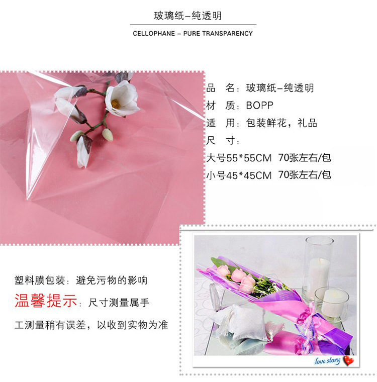 鲜花包装纸全透明玻璃纸批发 diy花店花束包花的纸材料包装纸