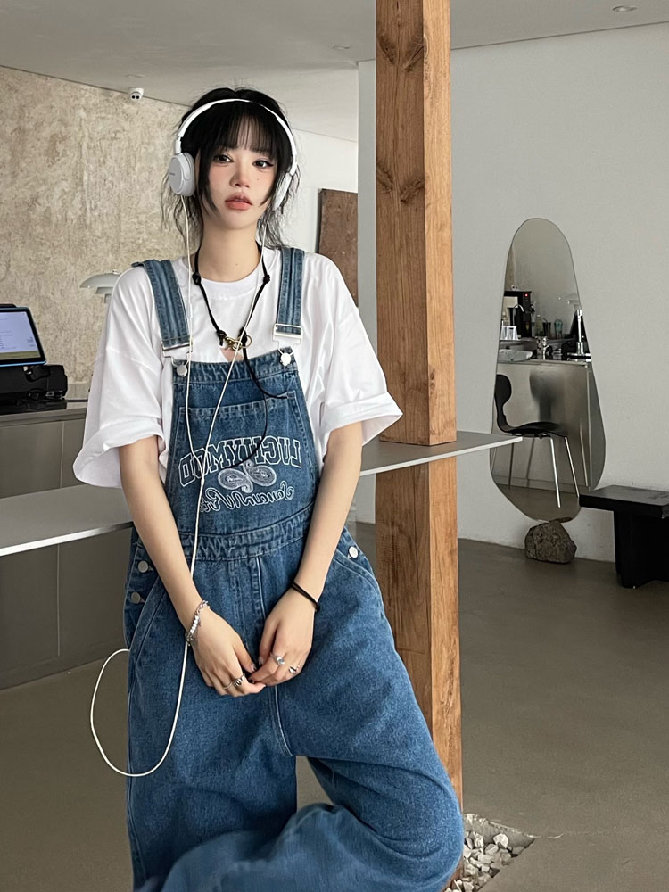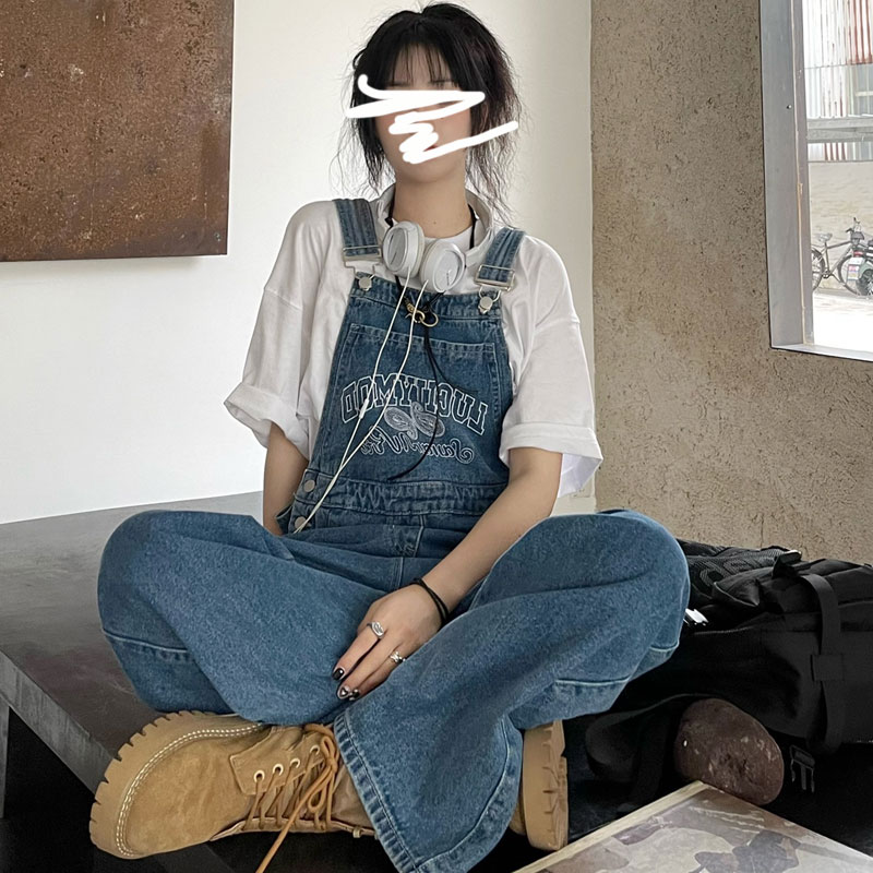 2023秋冬牛仔抱嬰袋褲女美式復古高腰水洗寬鬆直筒寬褲學生拖地褲