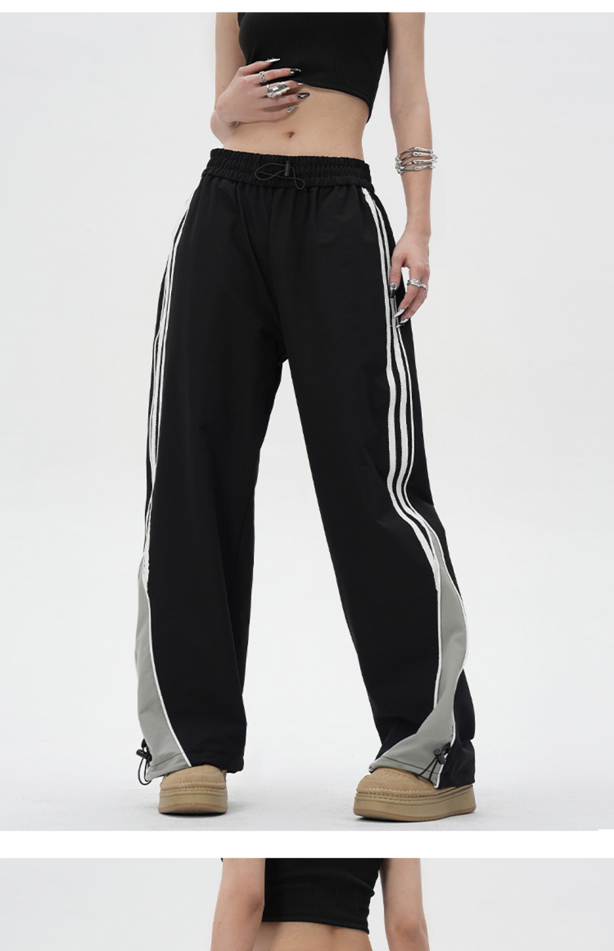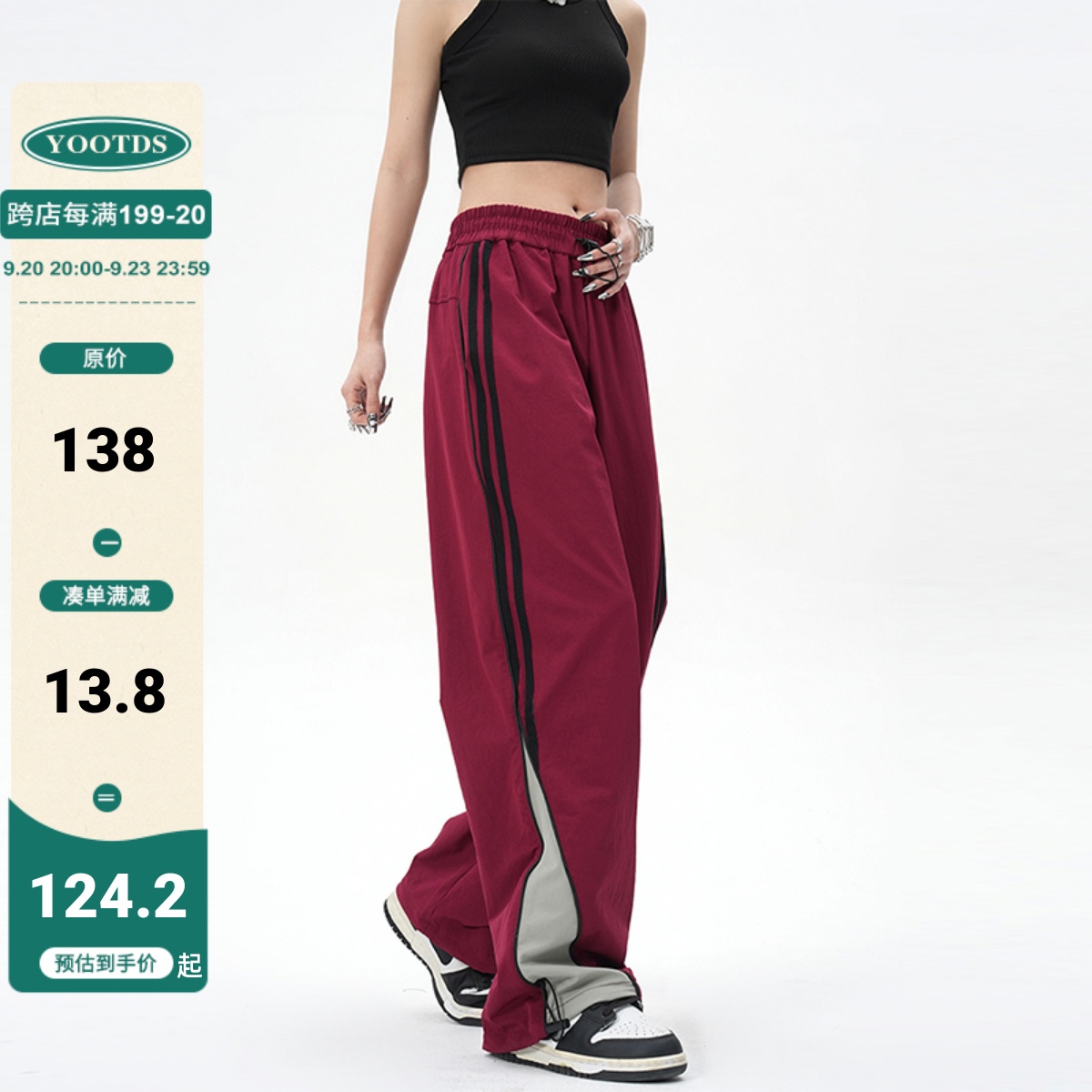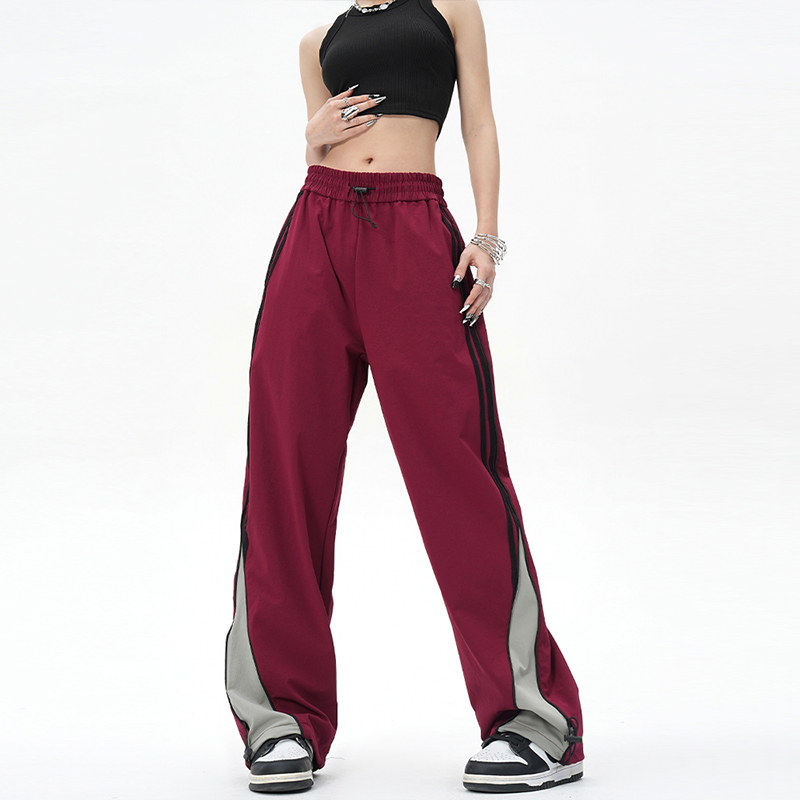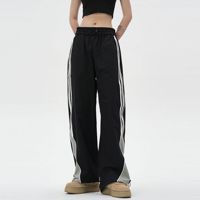 YOOTDS美式復古側邊闊腿休閒褲垂感寬鬆高街vibe風直筒運動長褲女