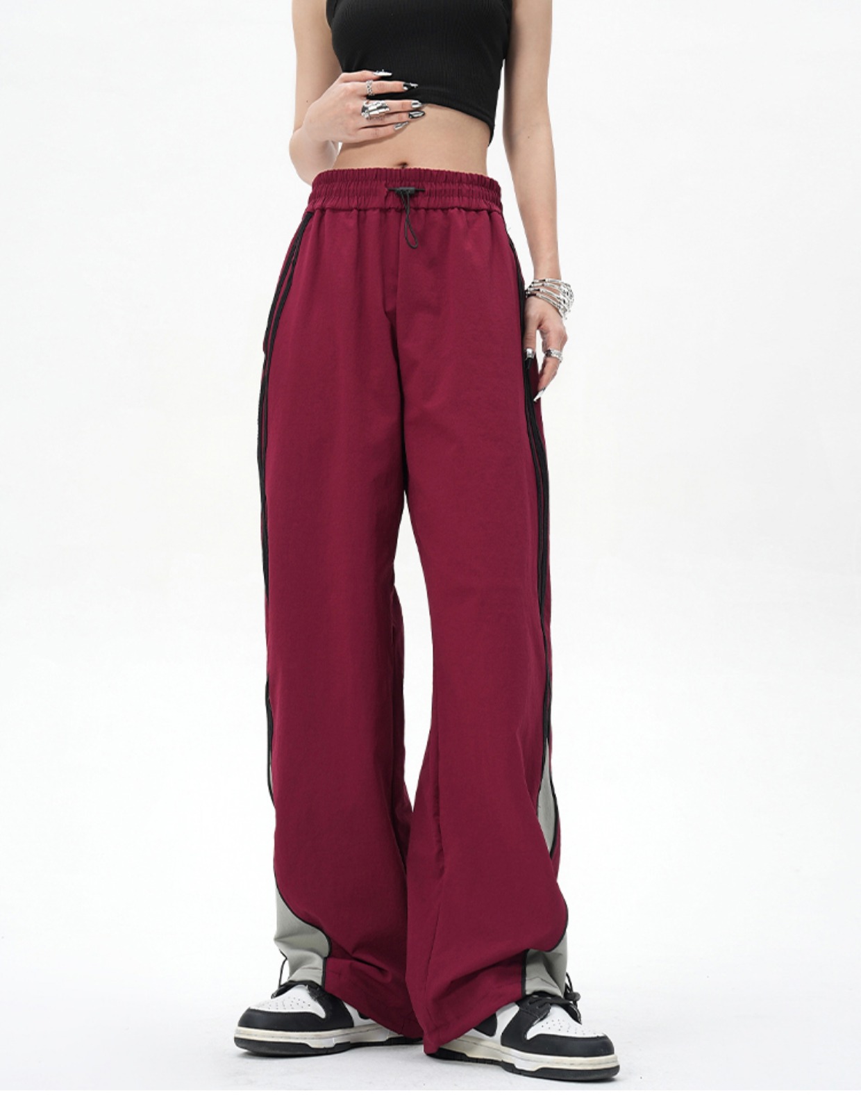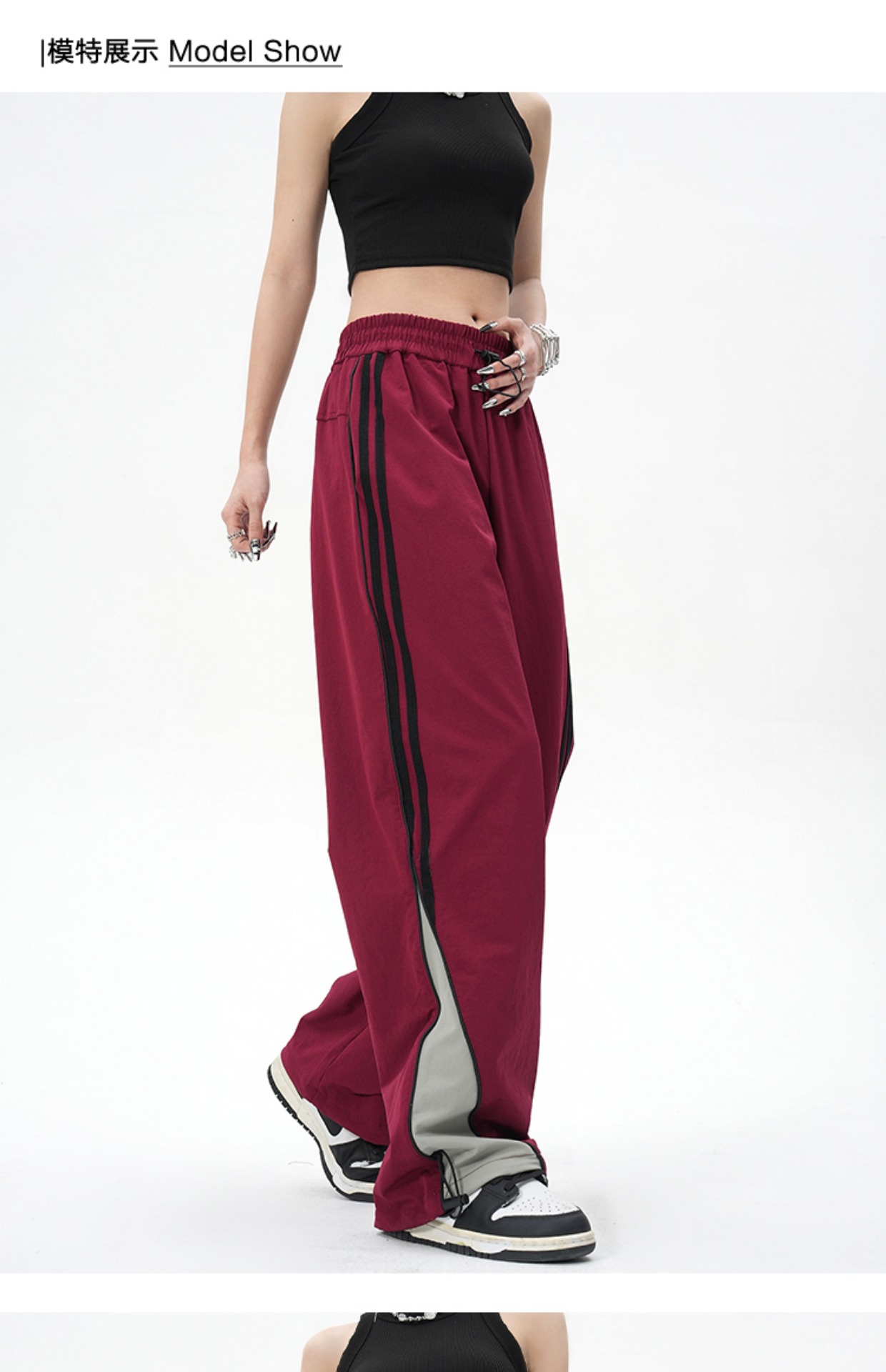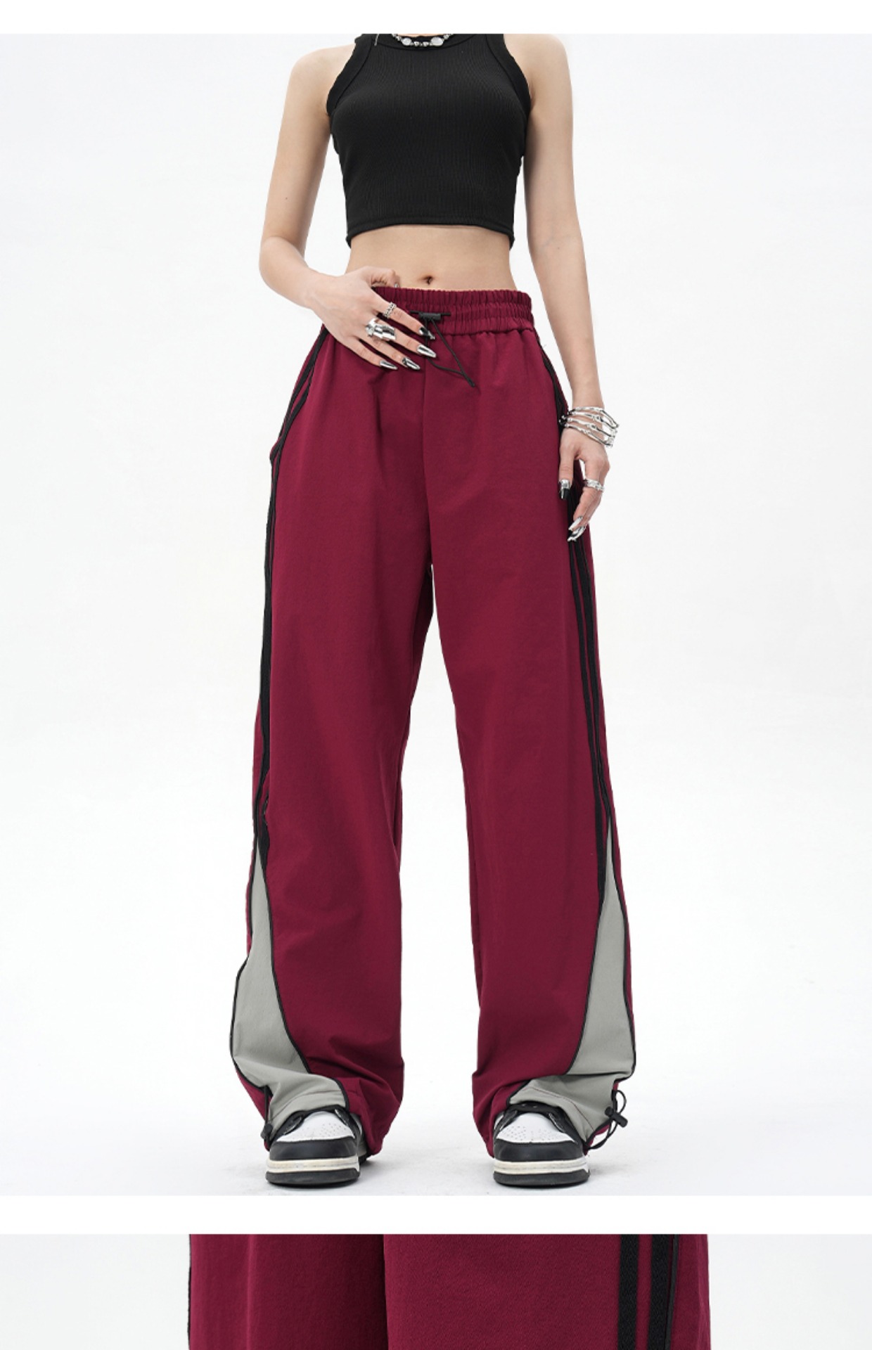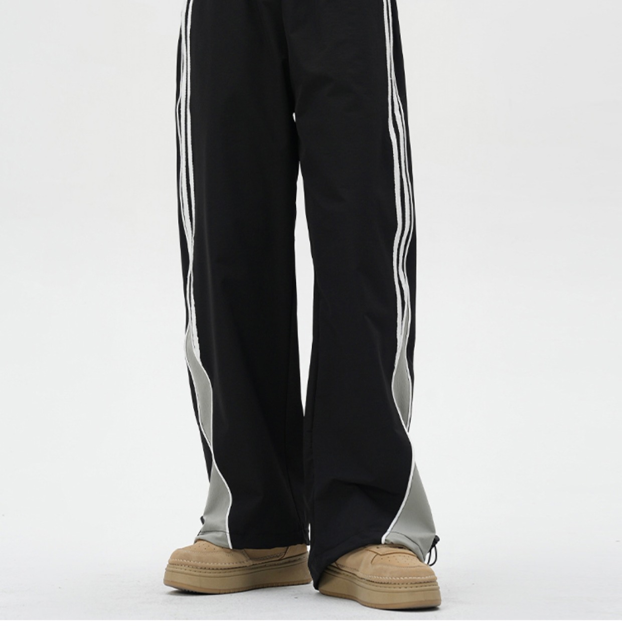 YOOTDS美式復古側邊闊腿休閒褲垂感寬鬆高街vibe風直筒運動長褲女