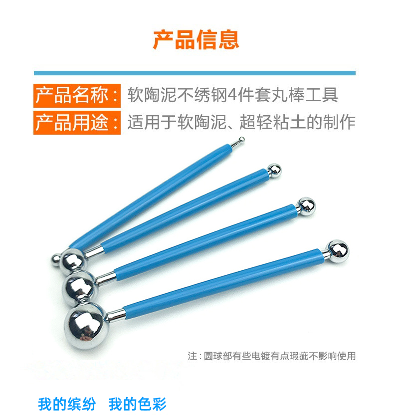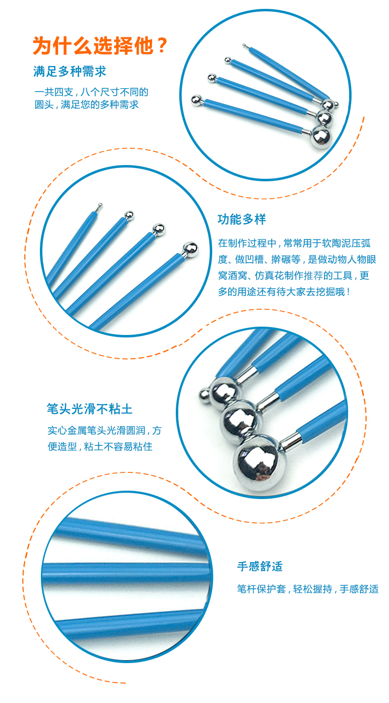 不锈钢丸棒超轻粘土圆头实心4件套8头DIY软陶泥眼窝翻糖装饰工具