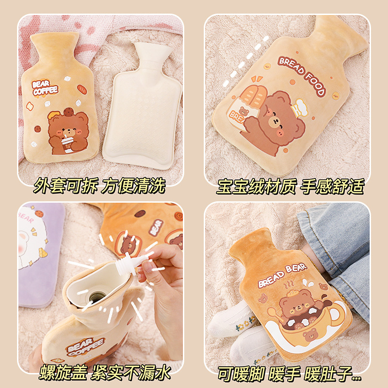 2023可爱热水袋 大容量毛绒宝宝绒暖水袋 注水热水袋暖手宝批发