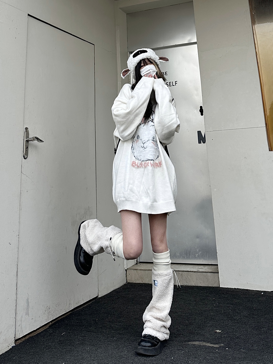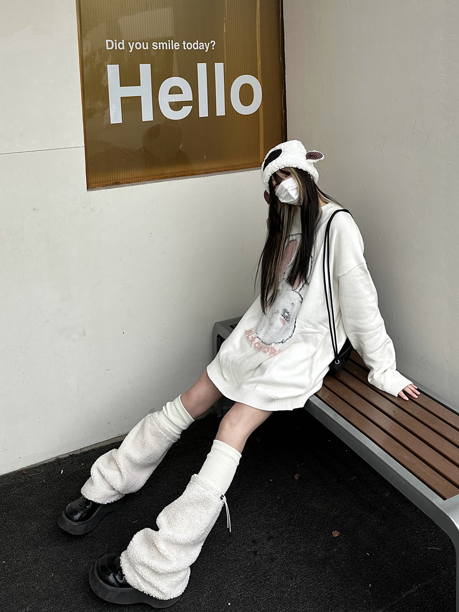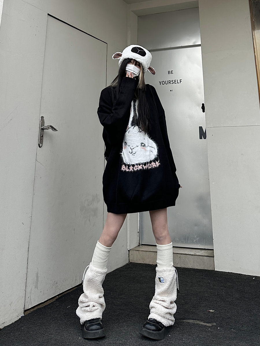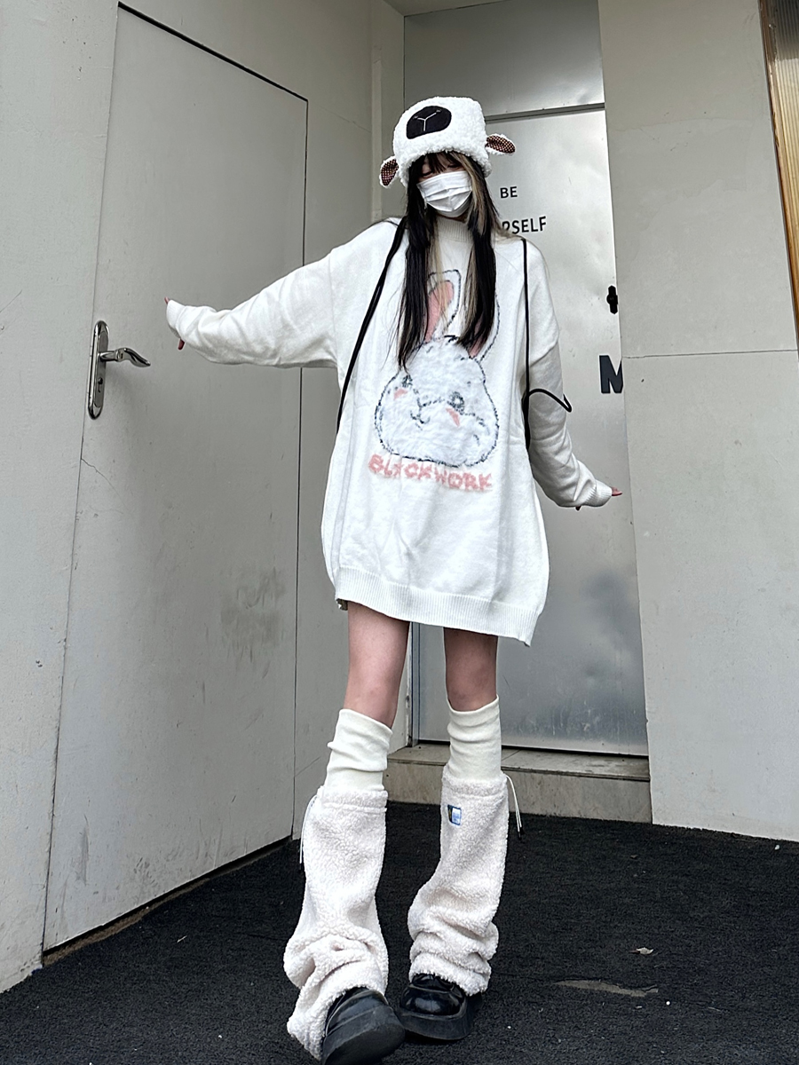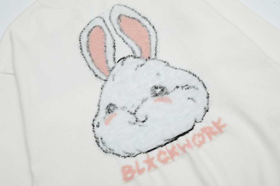 咖哩人原創新款毛絨兔子字母寬鬆圓領毛衣冬季百搭加厚長袖上衣