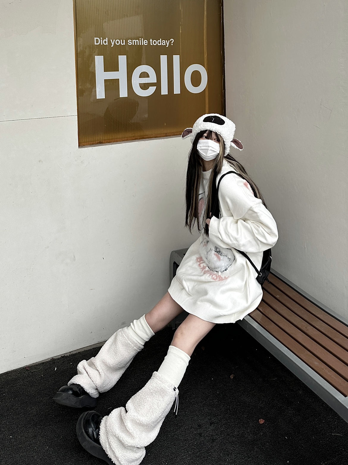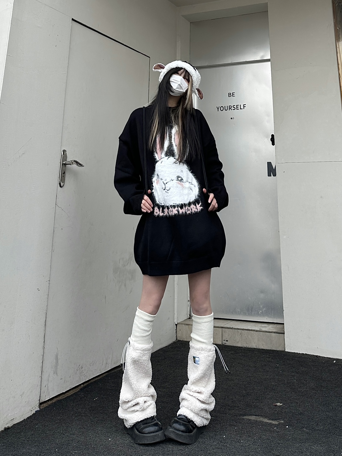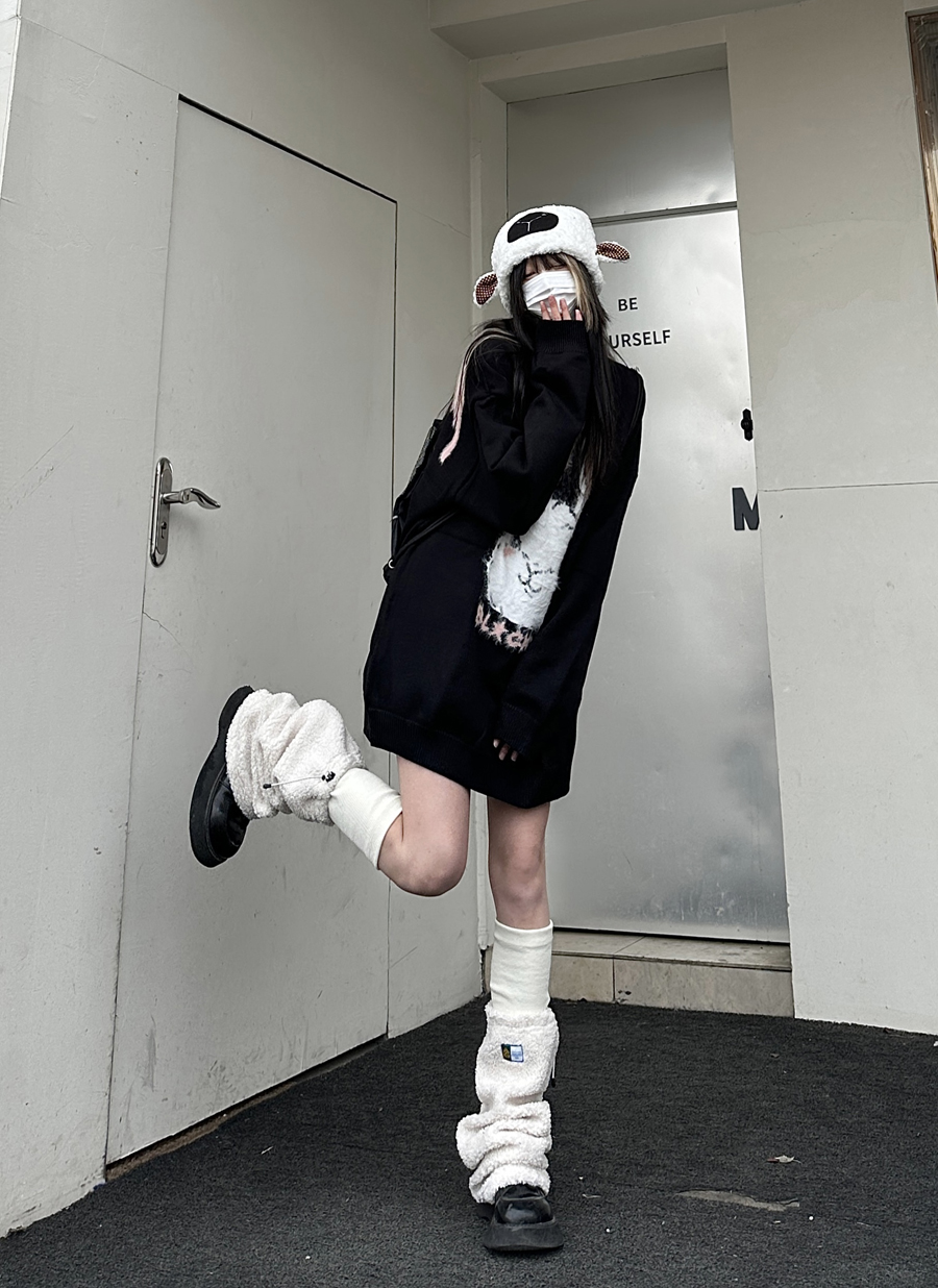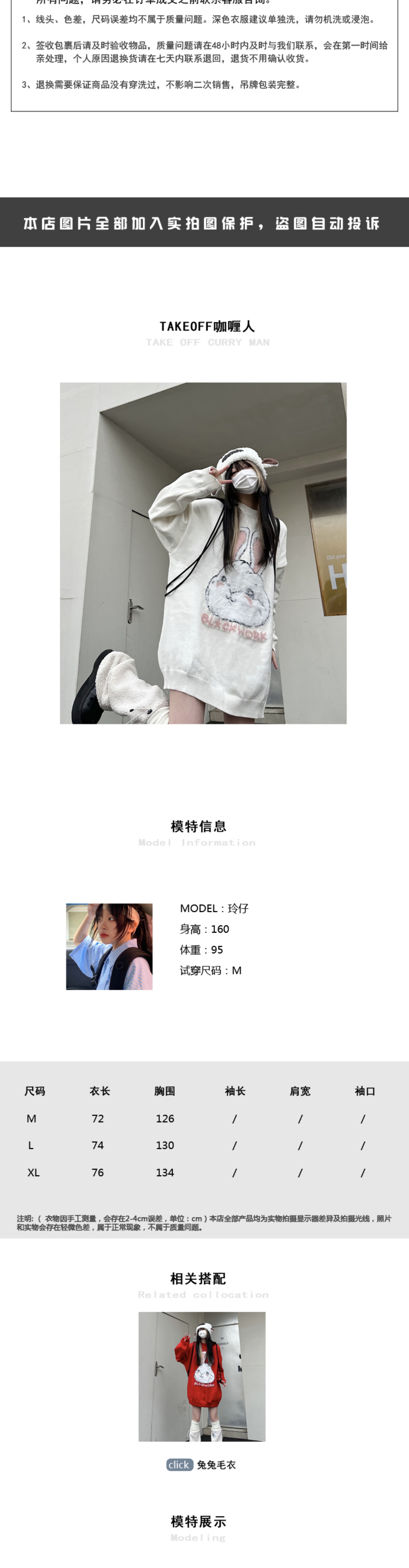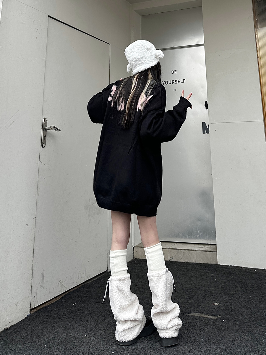 咖哩人原創新款毛絨兔子字母寬鬆圓領毛衣冬季百搭加厚長袖上衣