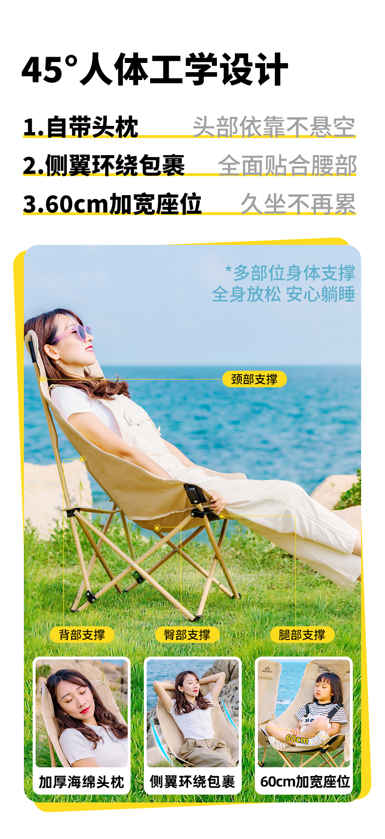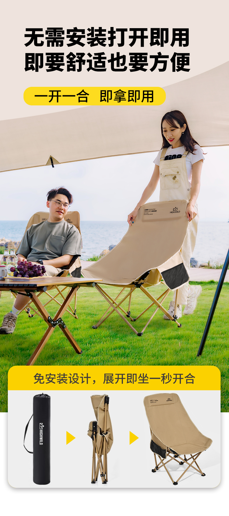 HighWild月亮椅摺疊戶外露營可攜式桌子馬扎釣魚野餐超輕躺椅凳子