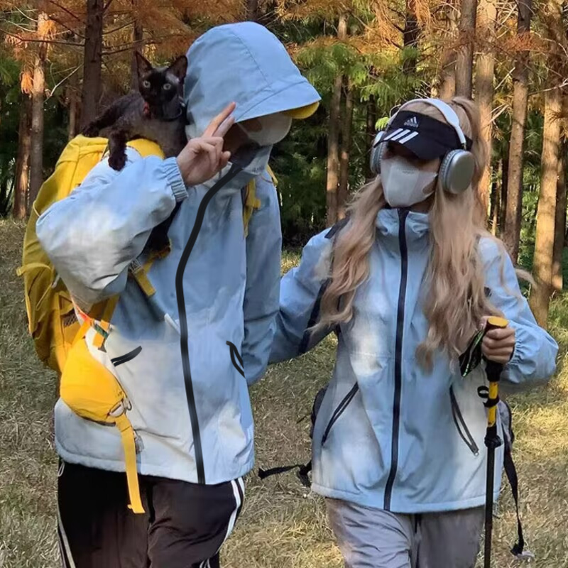 衝鋒衣女款旅遊爬山三合一外套女藍色夏季套裝2023新款川西穿搭秋