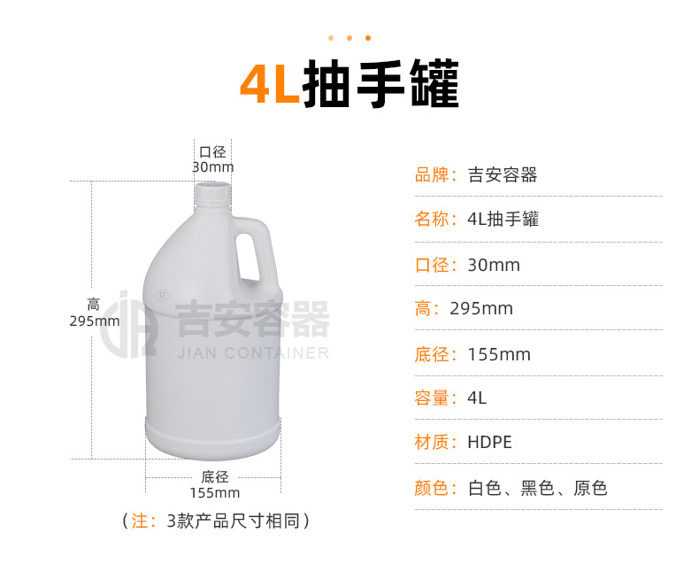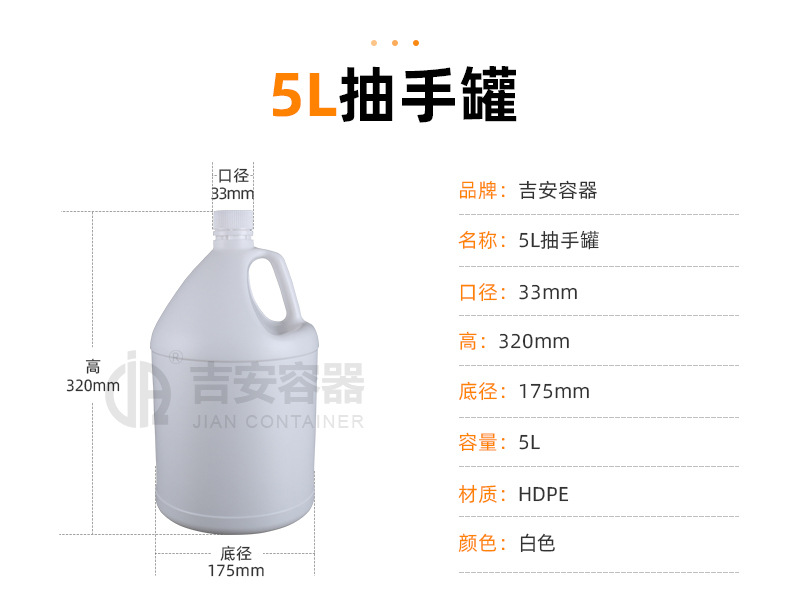 工厂现货4升抽手罐 4KG小口塑料罐带提手1L2L4L5L手提壶加仑圆罐