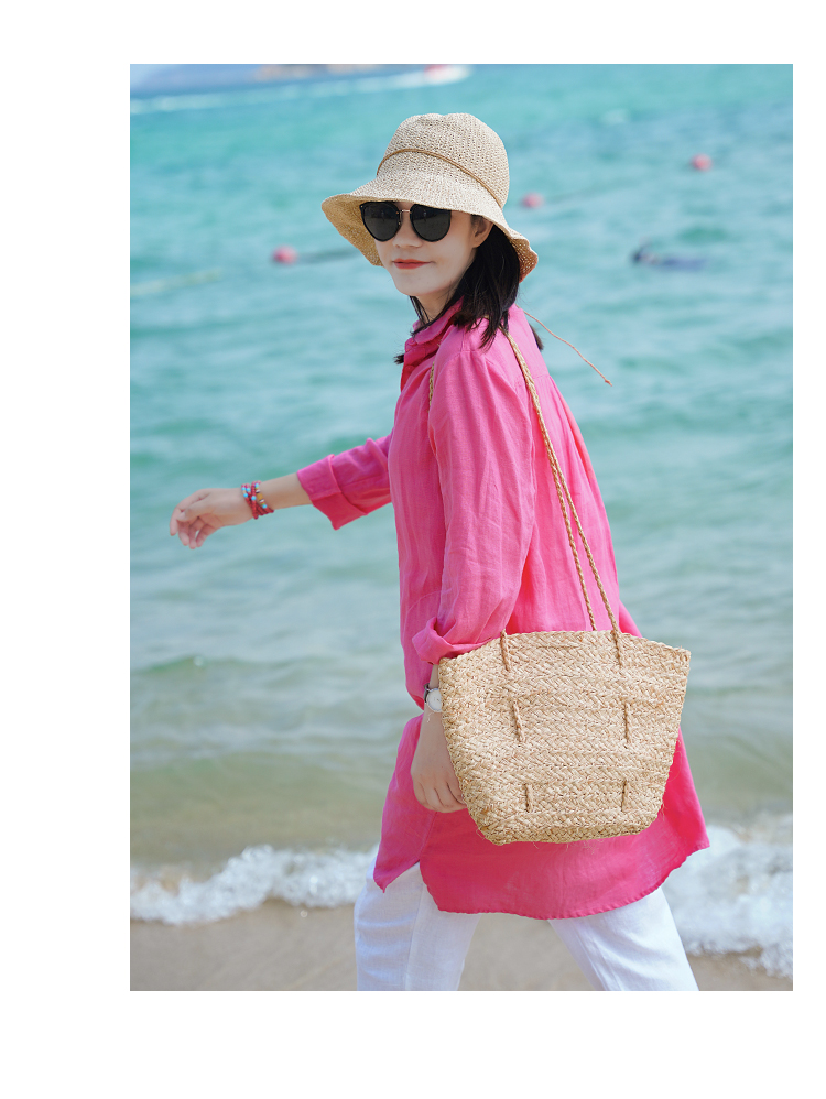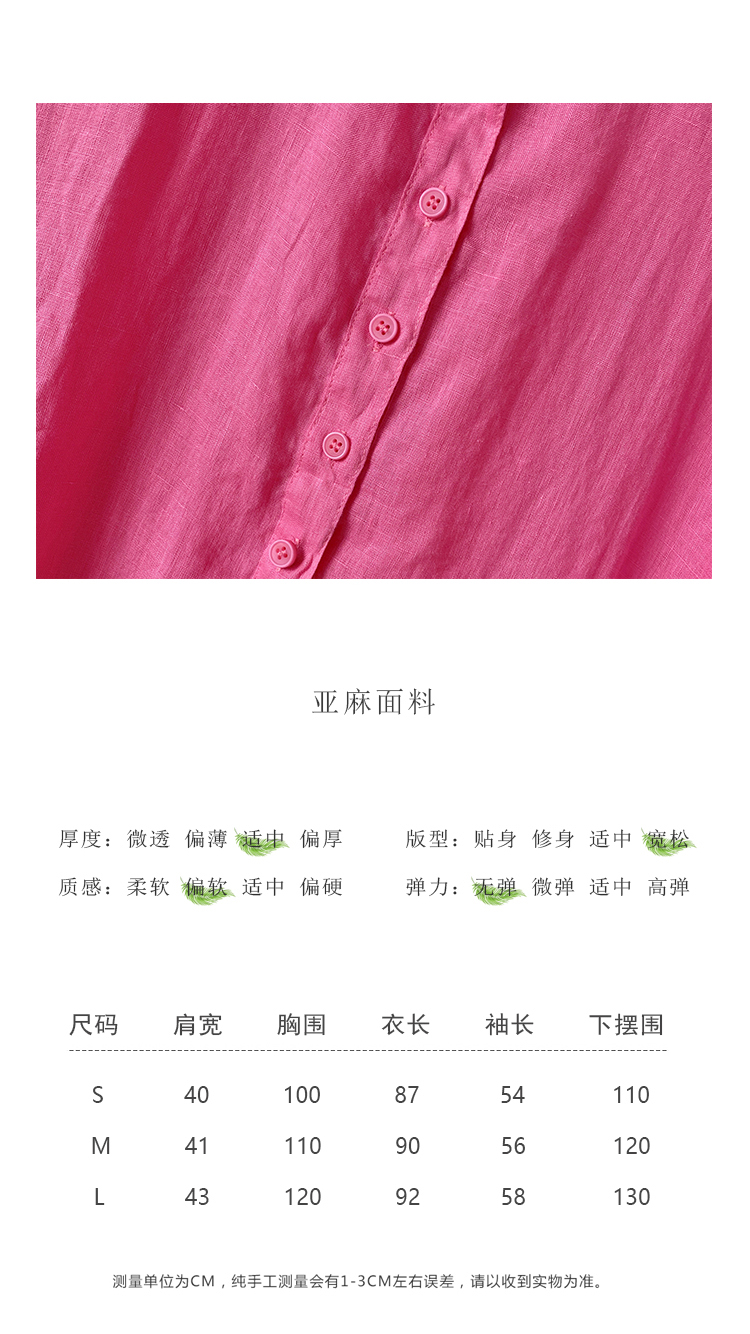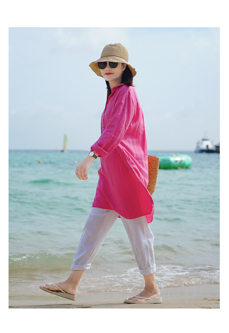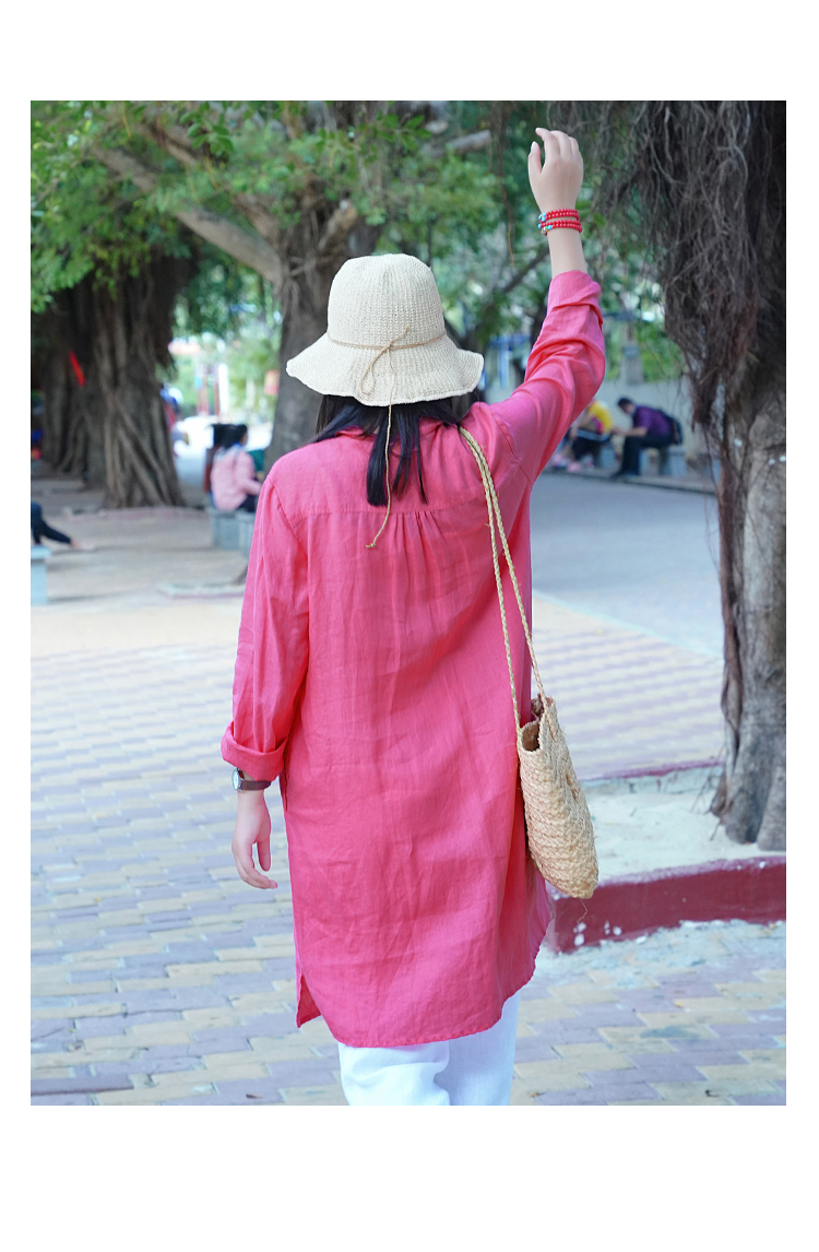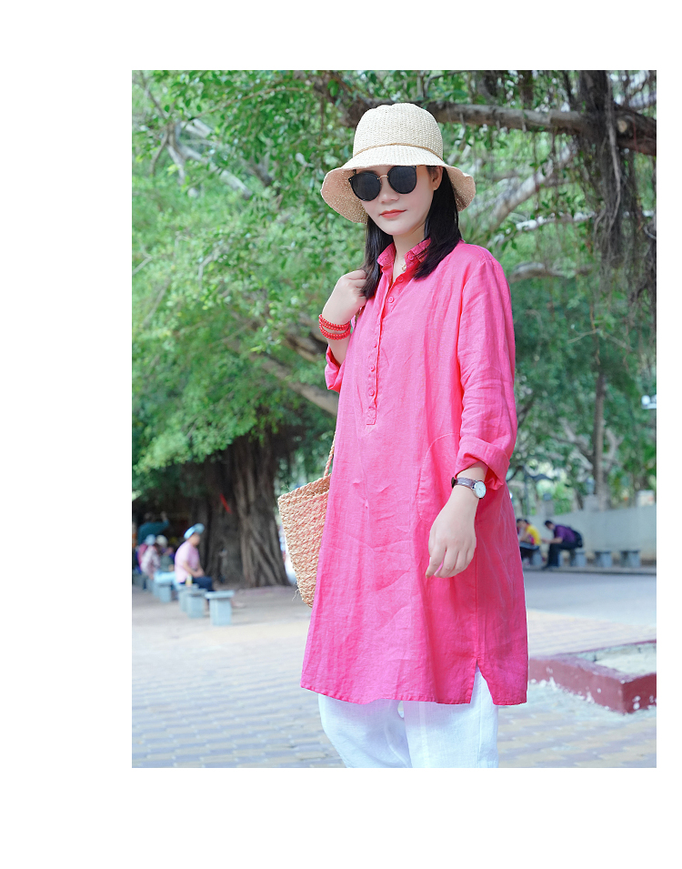 簡單長久陪伴 水洗麻料 復古寬鬆polo領亞麻上衣女中長版棉麻襯衫