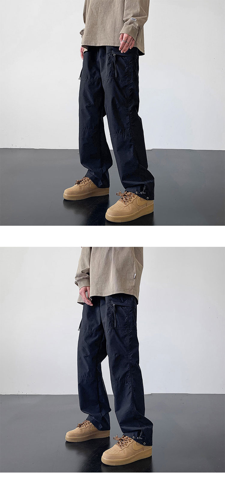 美式機能防水暴雨級衝鋒褲男軍綠色伐木工裝褲子高街vibe降落傘褲