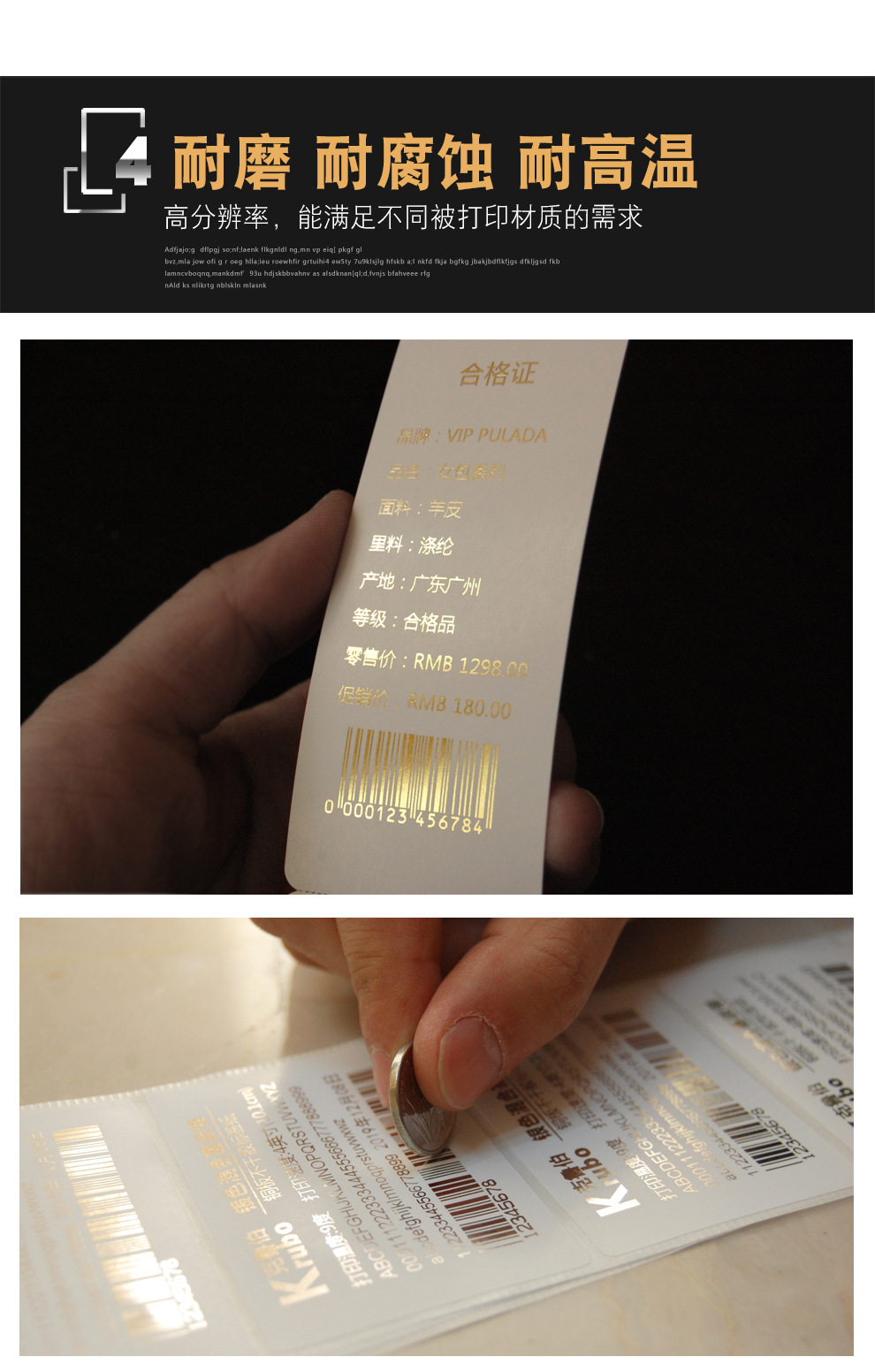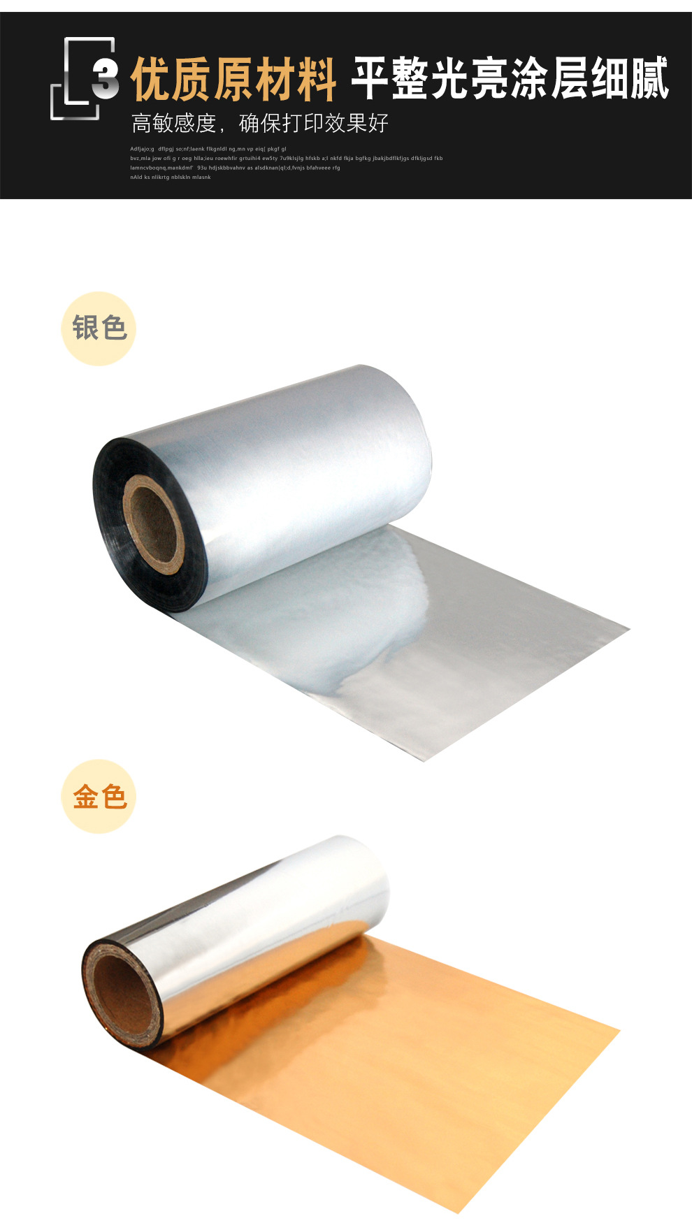 无版烫金纸PET标签服装吊牌缎带丝带打印机条码茶叶泡袋金色碳带