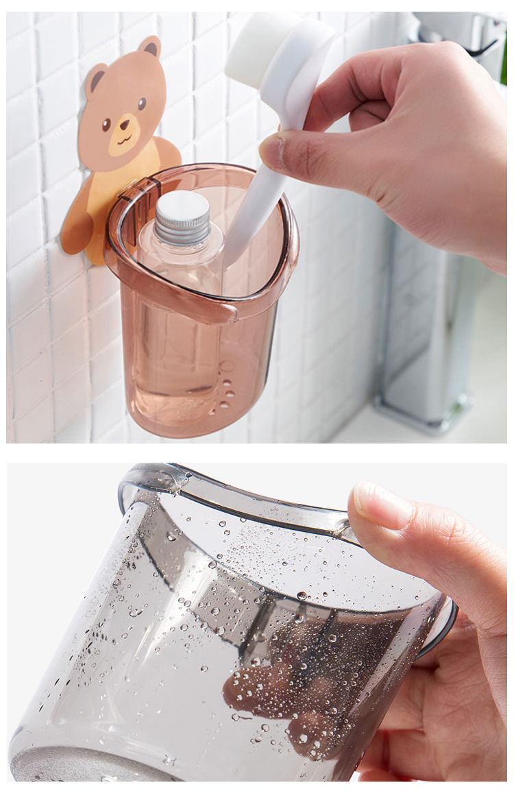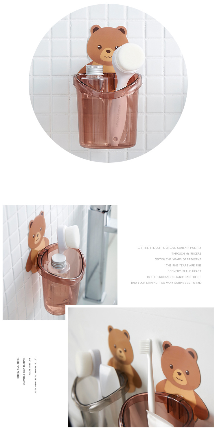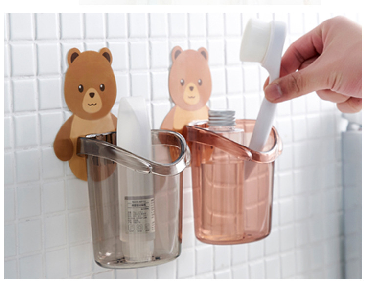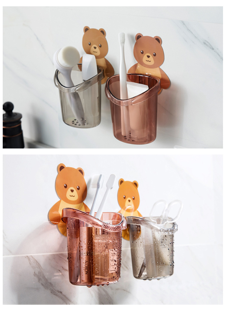 卫生间小熊抱抱牙刷杯牙膏收纳架浴室免打孔壁挂式沥水小熊置物杯