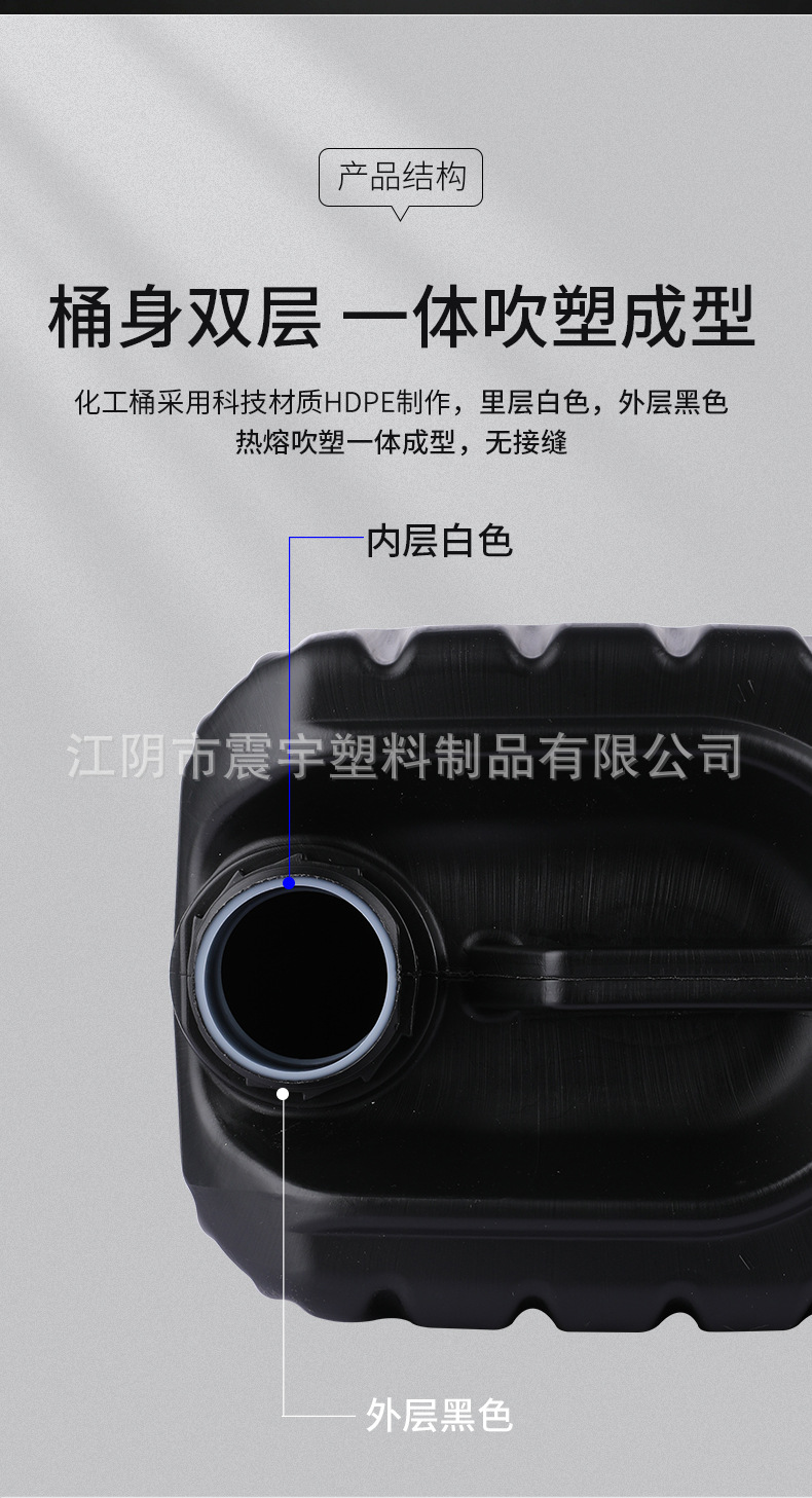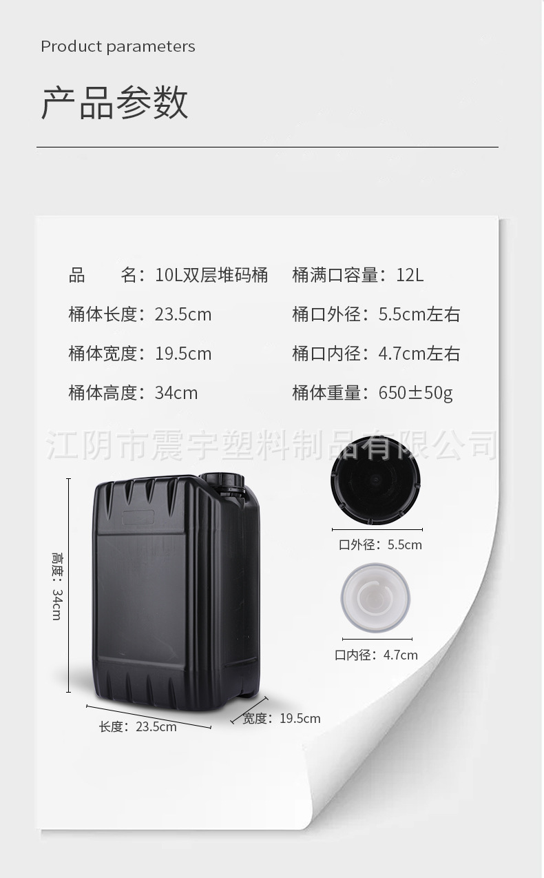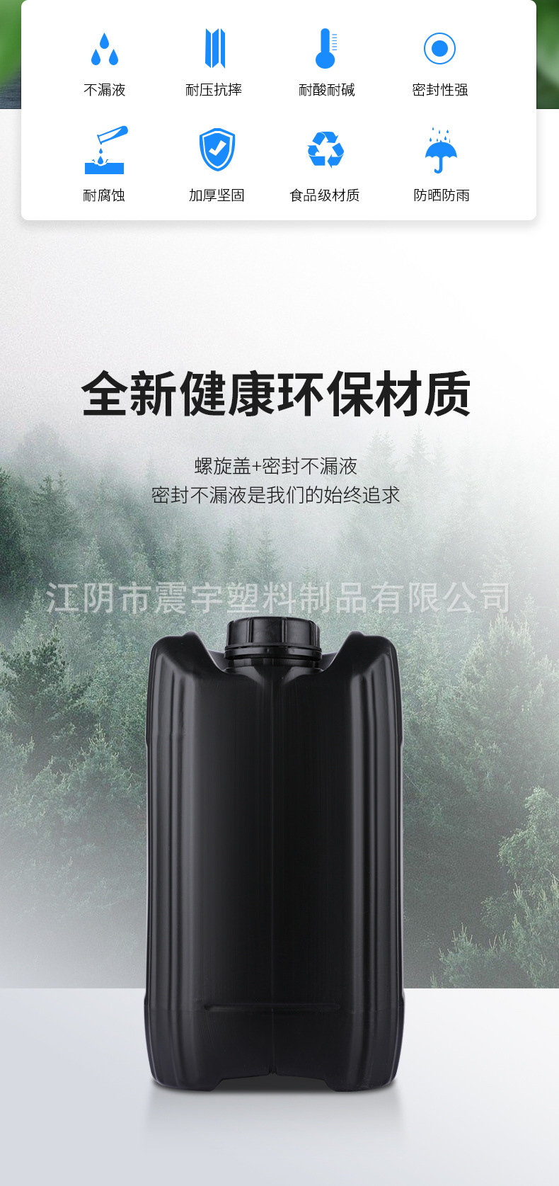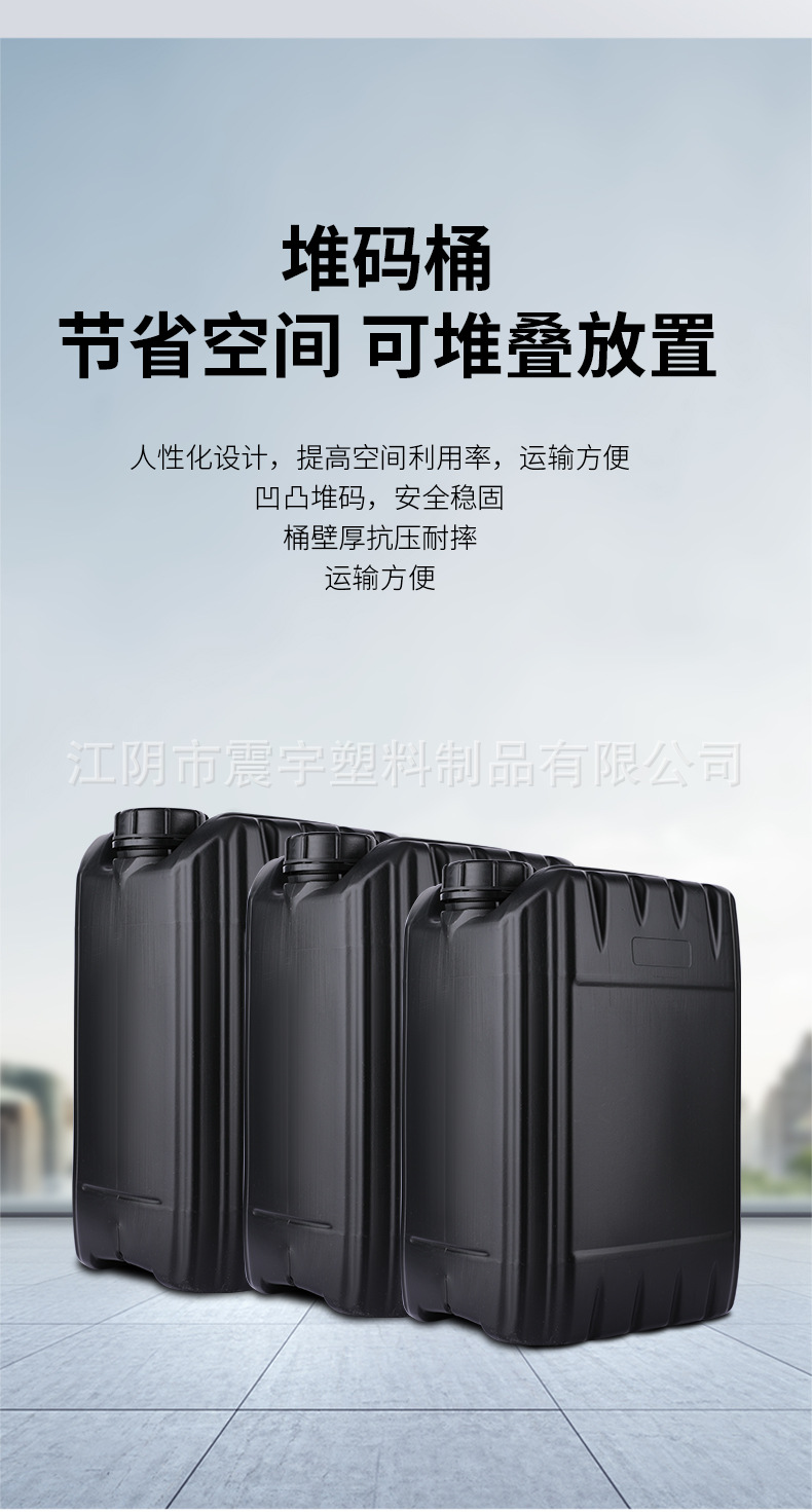 10L双层塑料桶 黑色 化工桶10公斤 方形塑料桶 10升堆码方桶