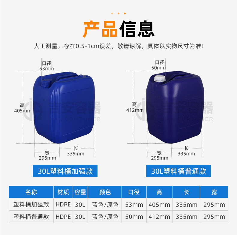 厂家供应30L升塑料桶 30KG化工桶 小口方罐 加厚耐酸碱试剂液胶桶