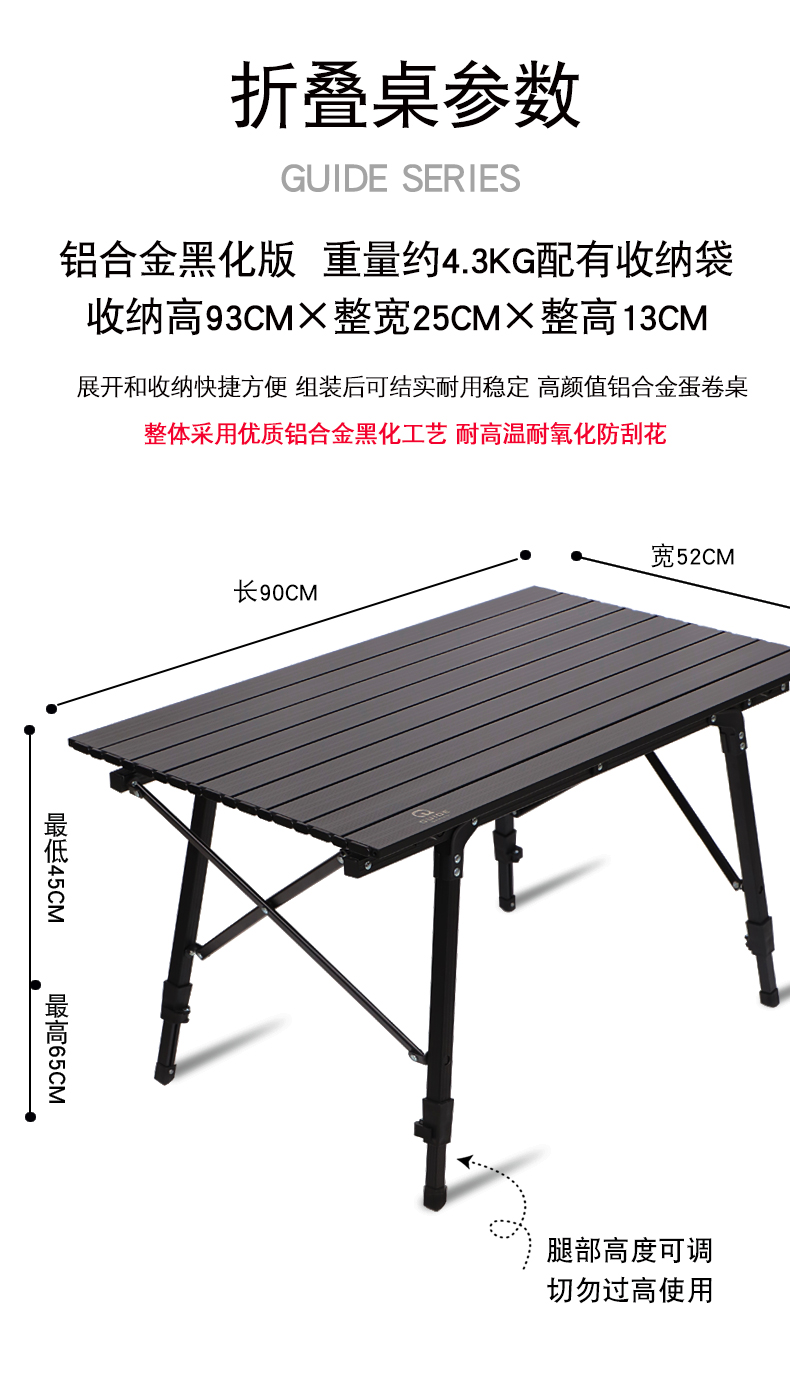 步林GuideSeries戶外鋁合金露營桌野營裝備野餐桌黑化蛋卷桌