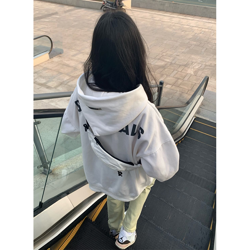 美式高街印花oversize連帽運動衫女春秋2023新款國潮寬鬆情侶裝上衣