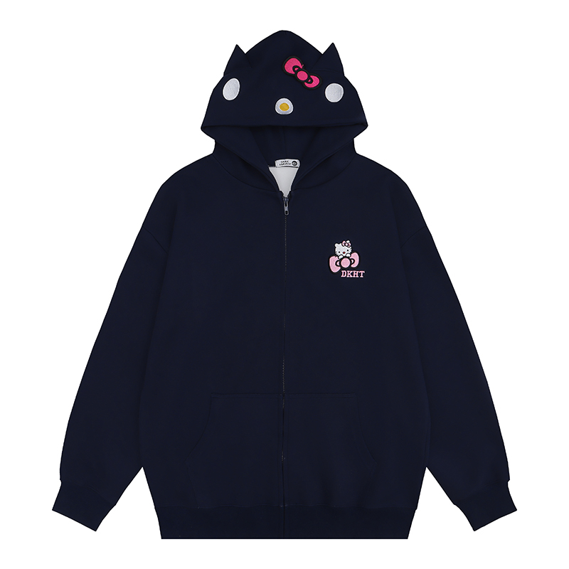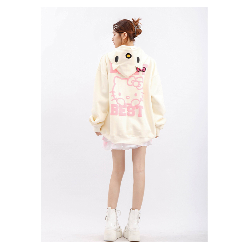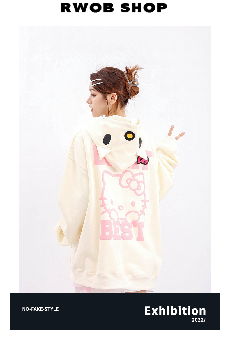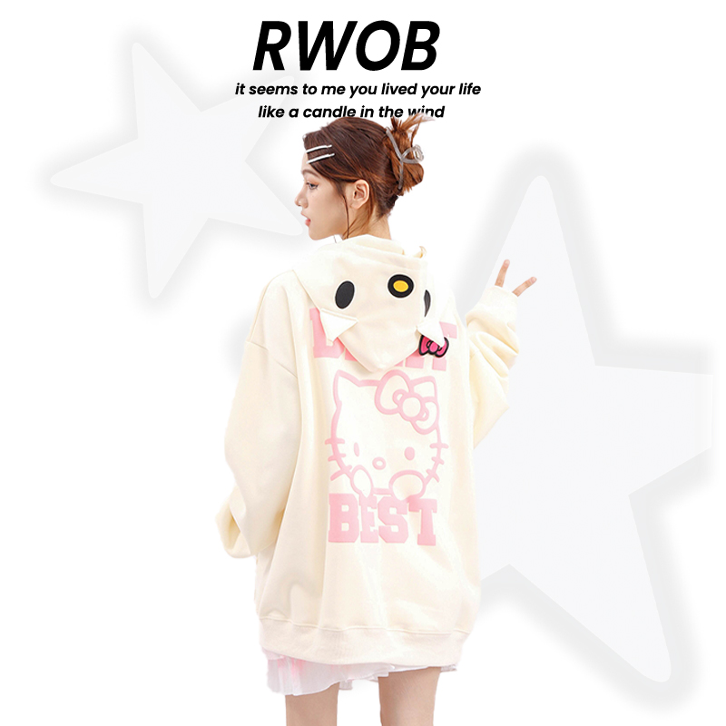 RWOB可愛Kitty 貓開衫拉鍊連帽運動衫初秋休閒寬鬆慵懶休閒情侶上衣