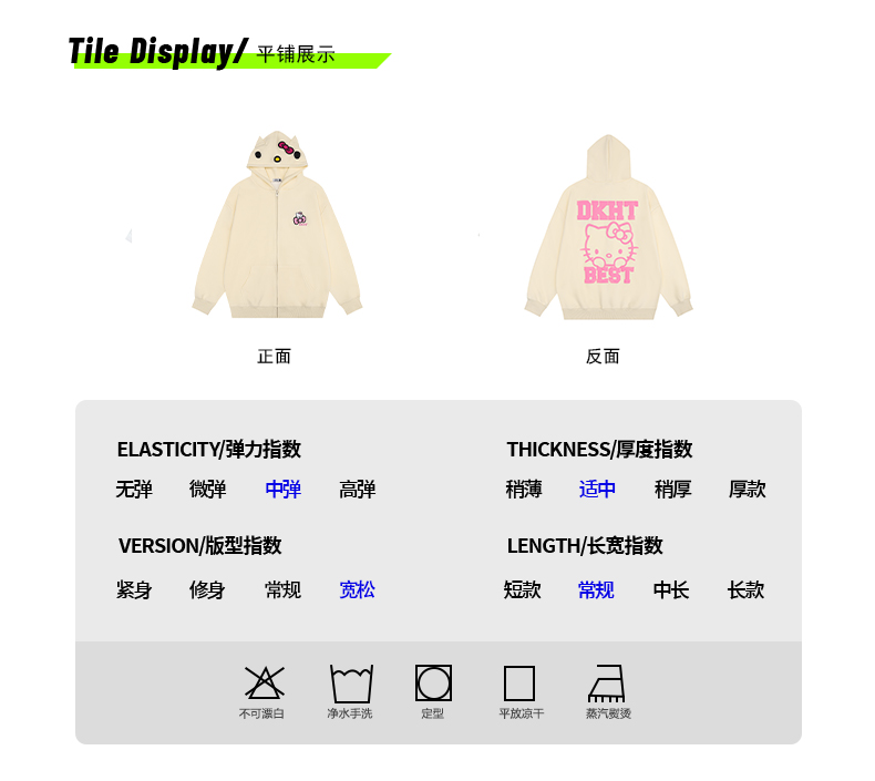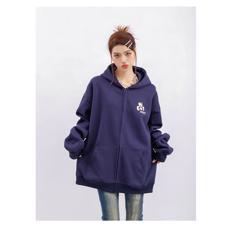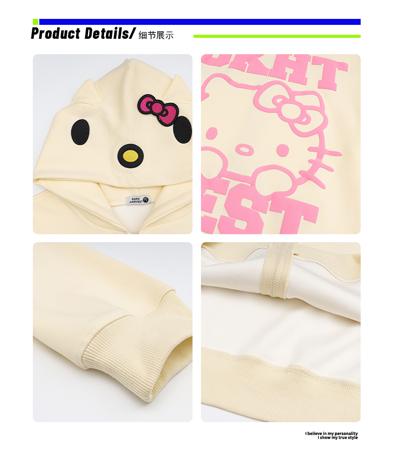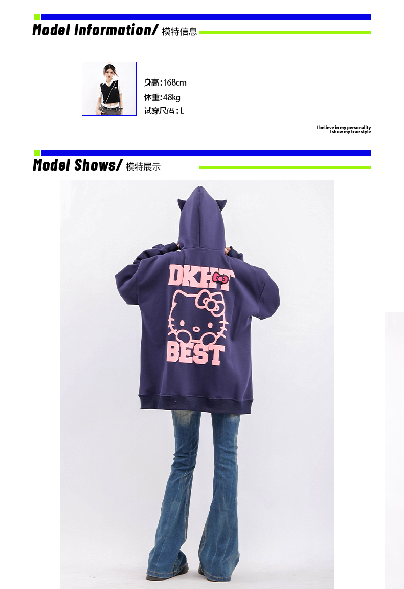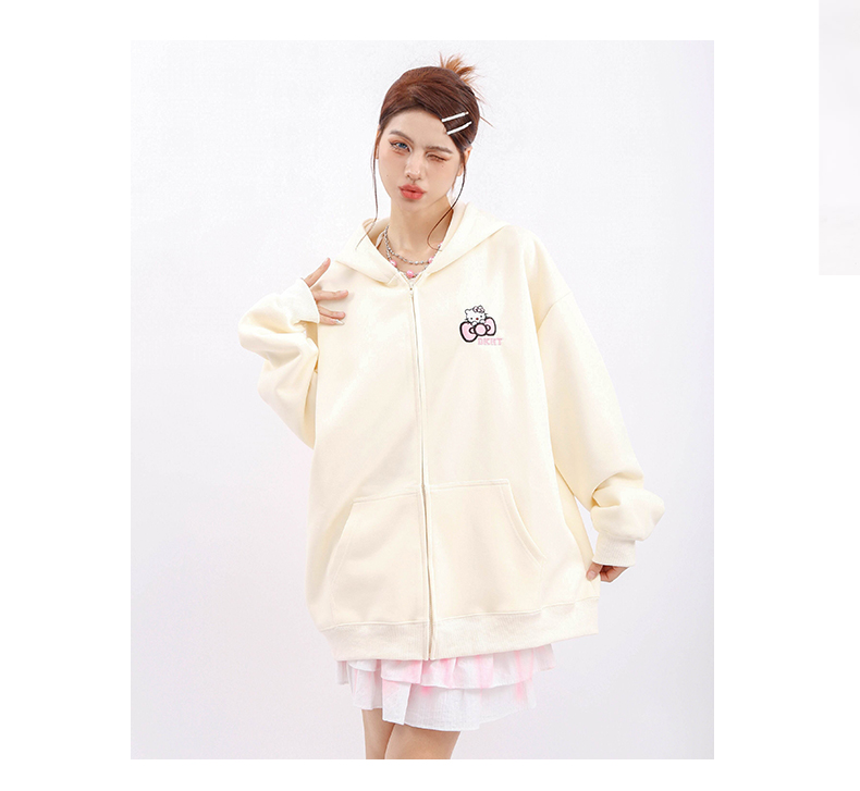 RWOB可愛Kitty 貓開衫拉鍊連帽運動衫初秋休閒寬鬆慵懶休閒情侶上衣