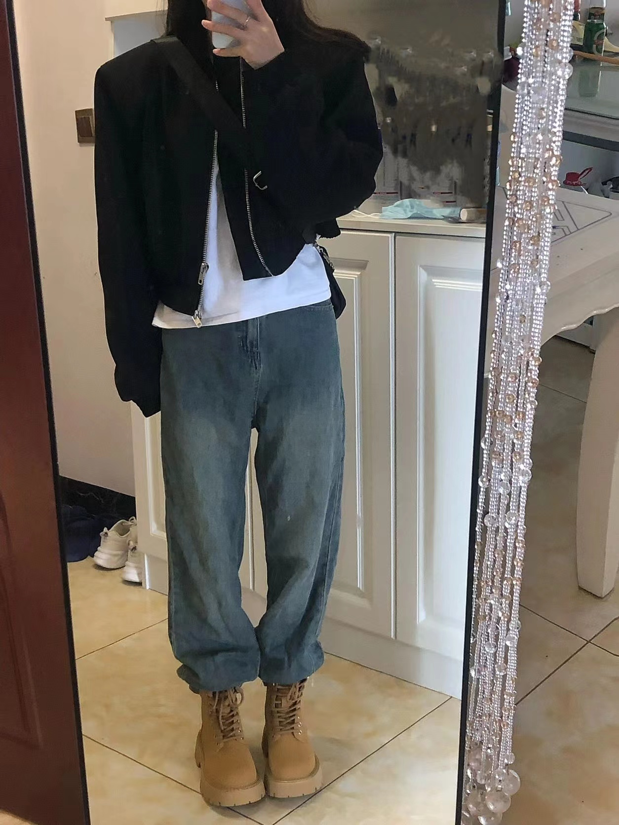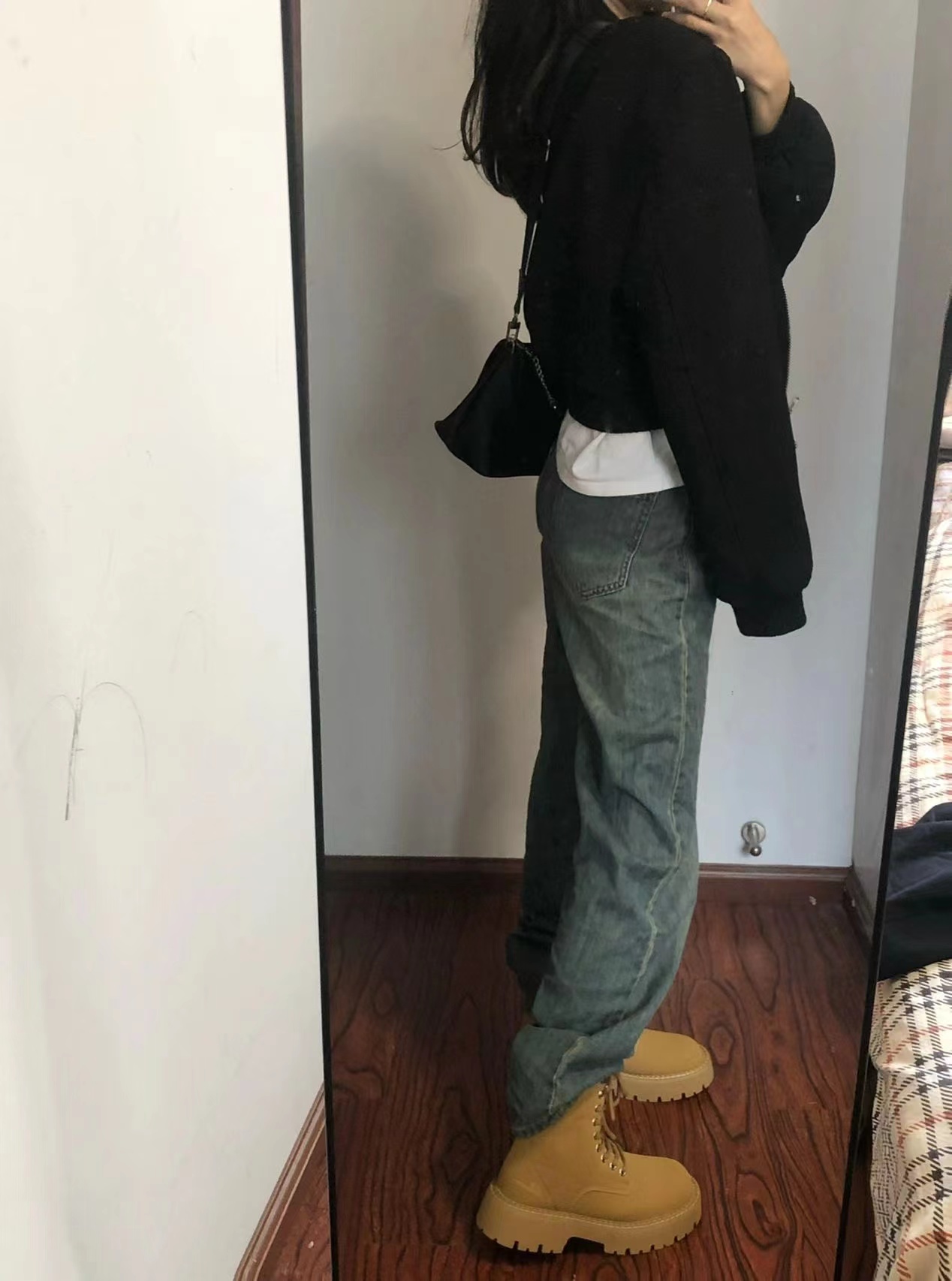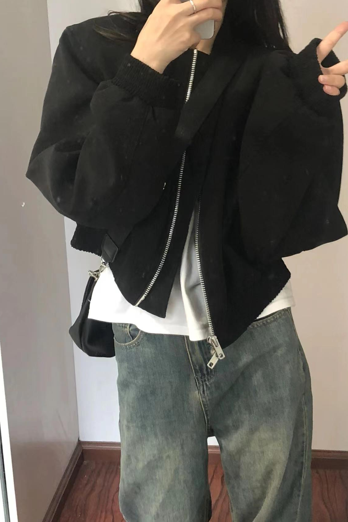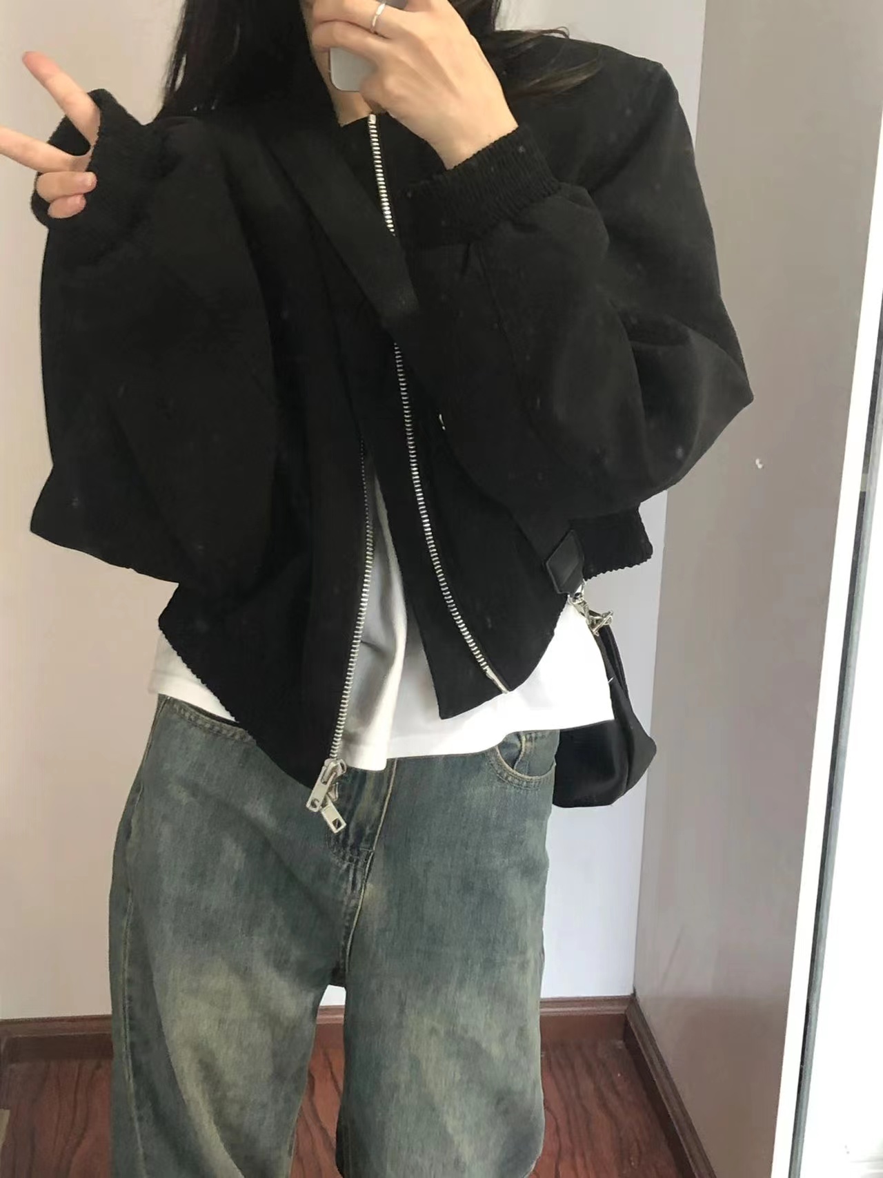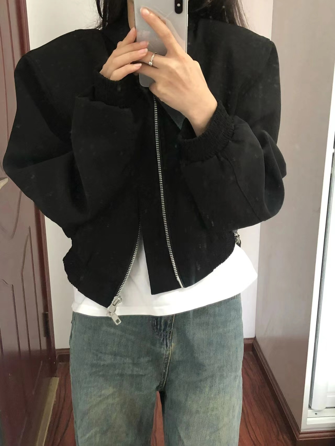 法式設計感小眾黑色短款夾克上衣2023秋裝美式復古休閒棒球服外套