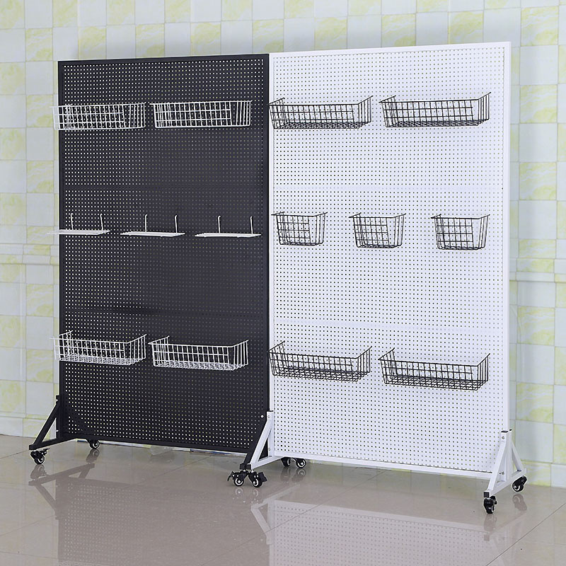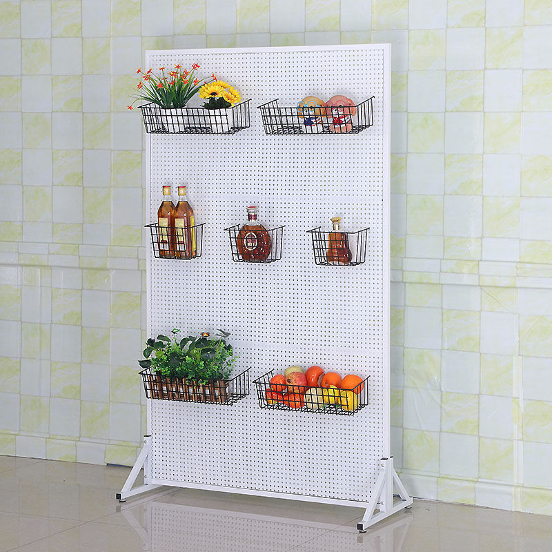 立式铁艺洞洞板落地圆孔铁板货架饰品展示厨房配件置物架超市货架